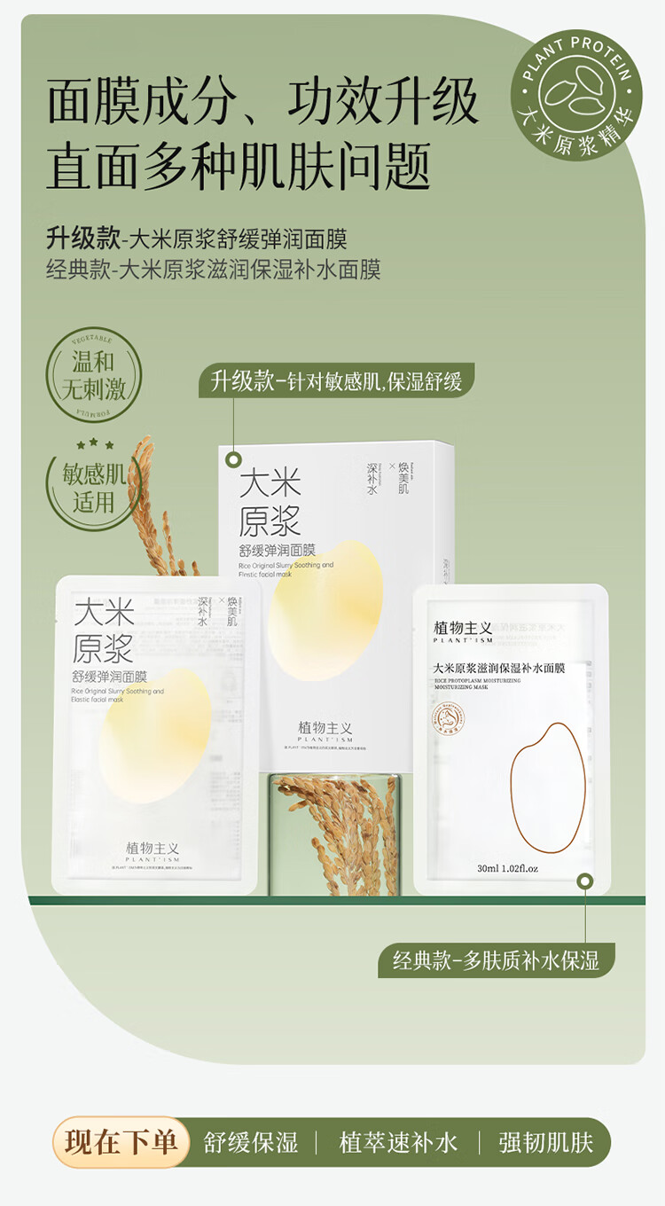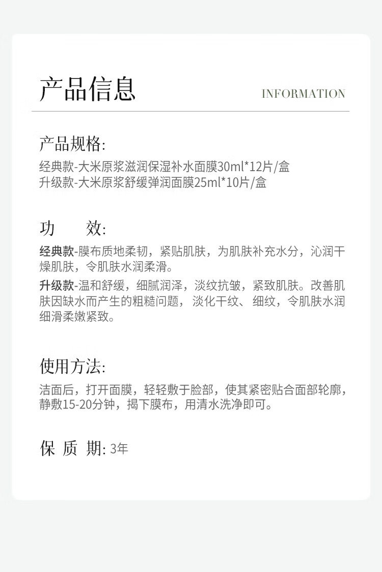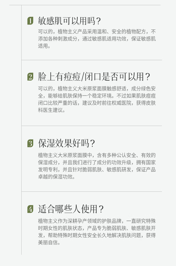 植物主义准孕妇面膜清润补水深层保湿护肤品准孕妇适用 大米补水面膜24片