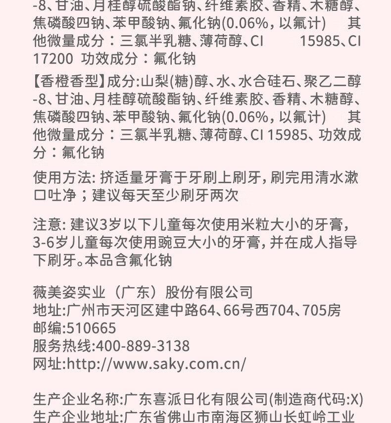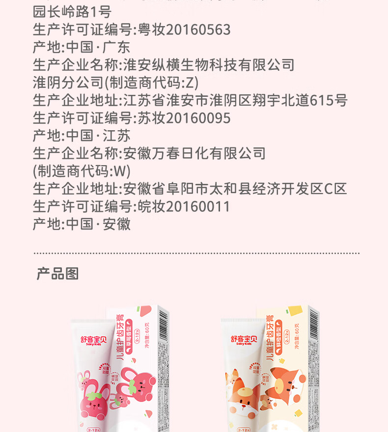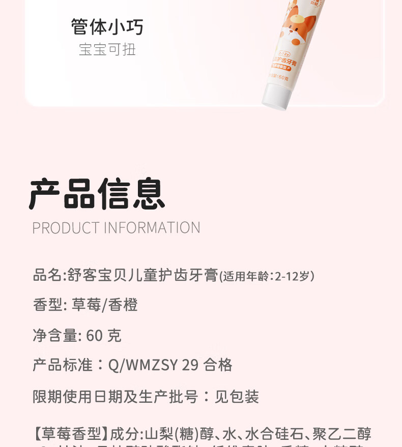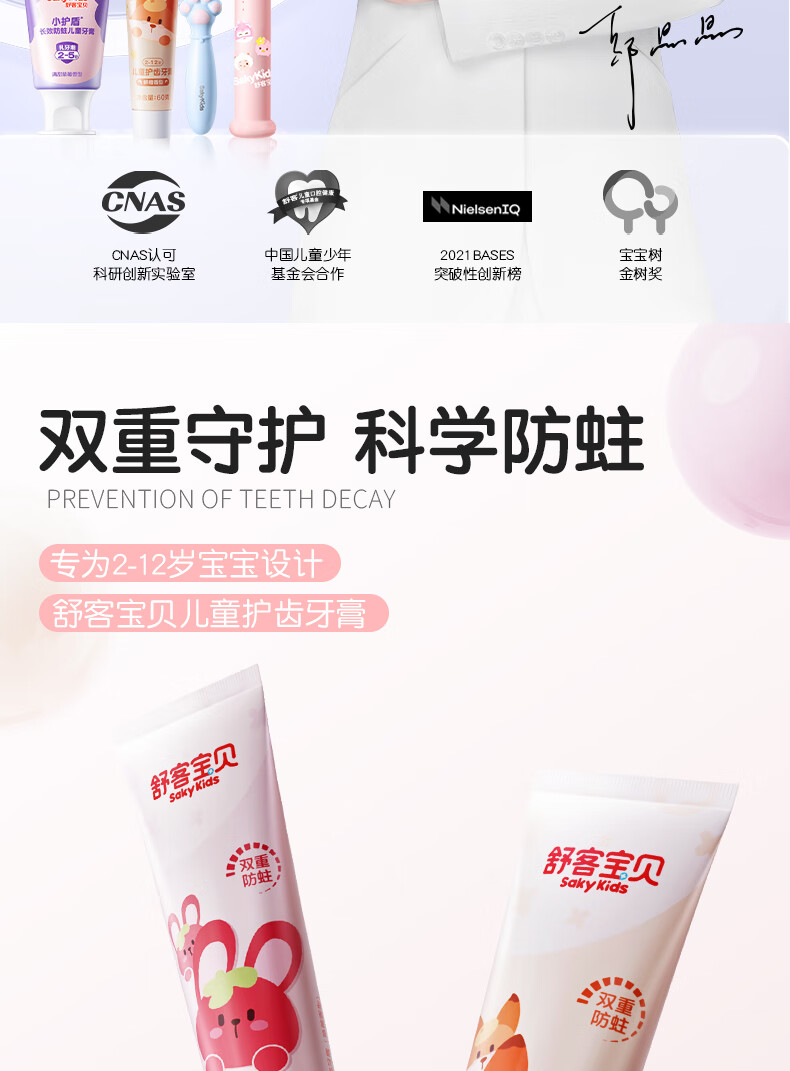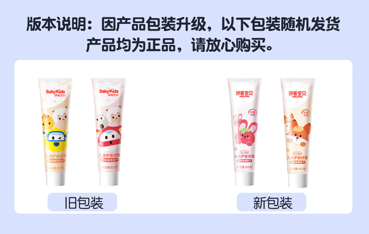 舒客宝贝(sakykids)儿童牙膏牙刷套装含氟防蛀牙膏60g*4支+护齿牙刷*2支2-12岁