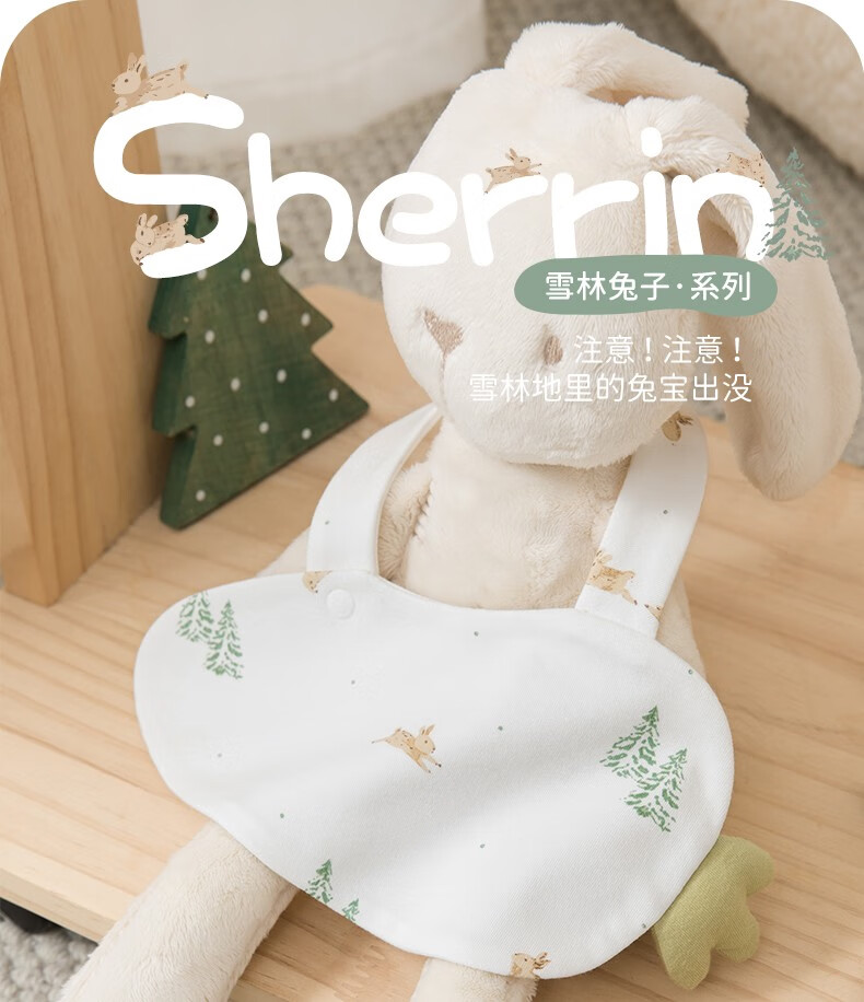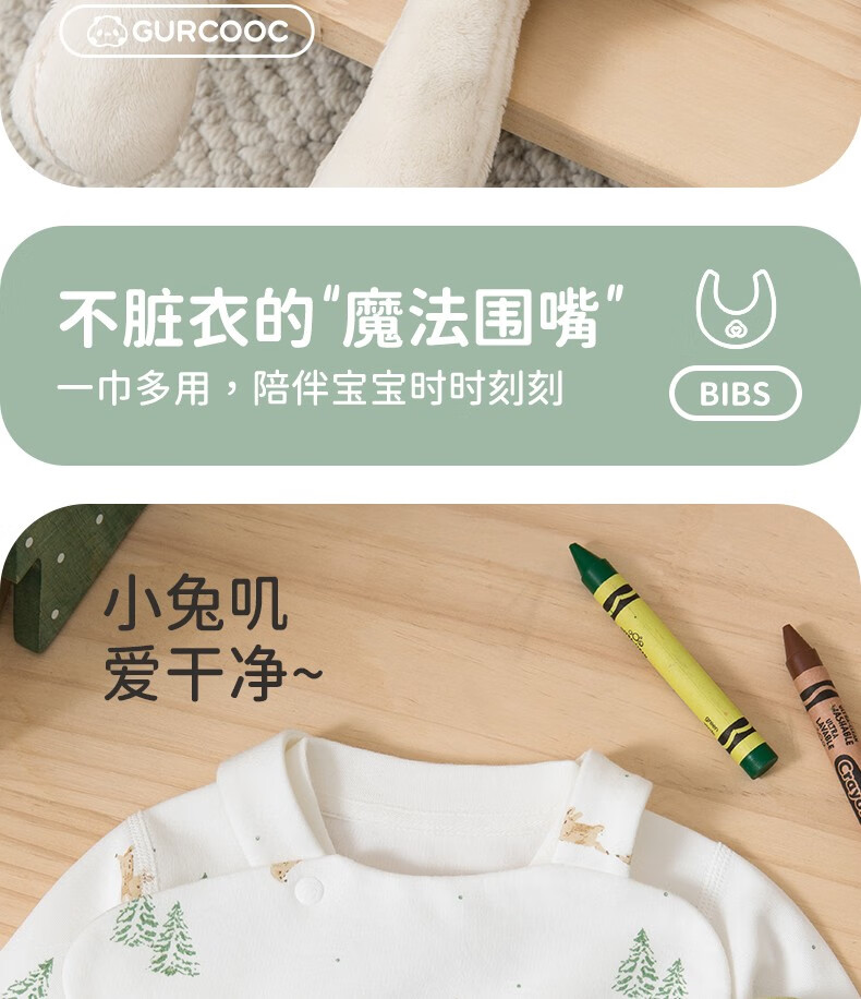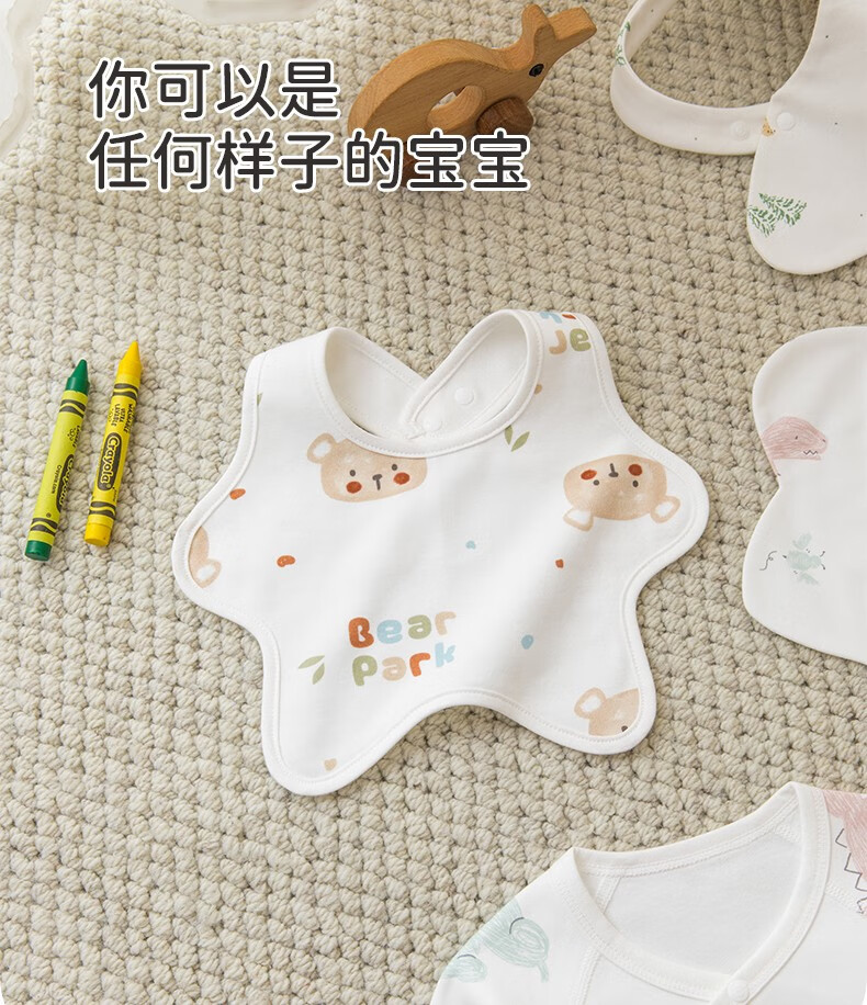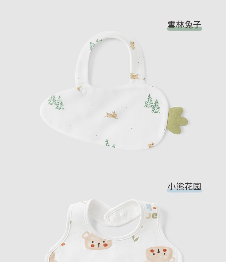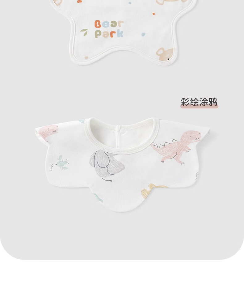 乖奇熊新生儿宝宝纯棉造型口水巾秋冬季防水防脏婴儿防吐奶围嘴辅食围兜 白色/小熊花园