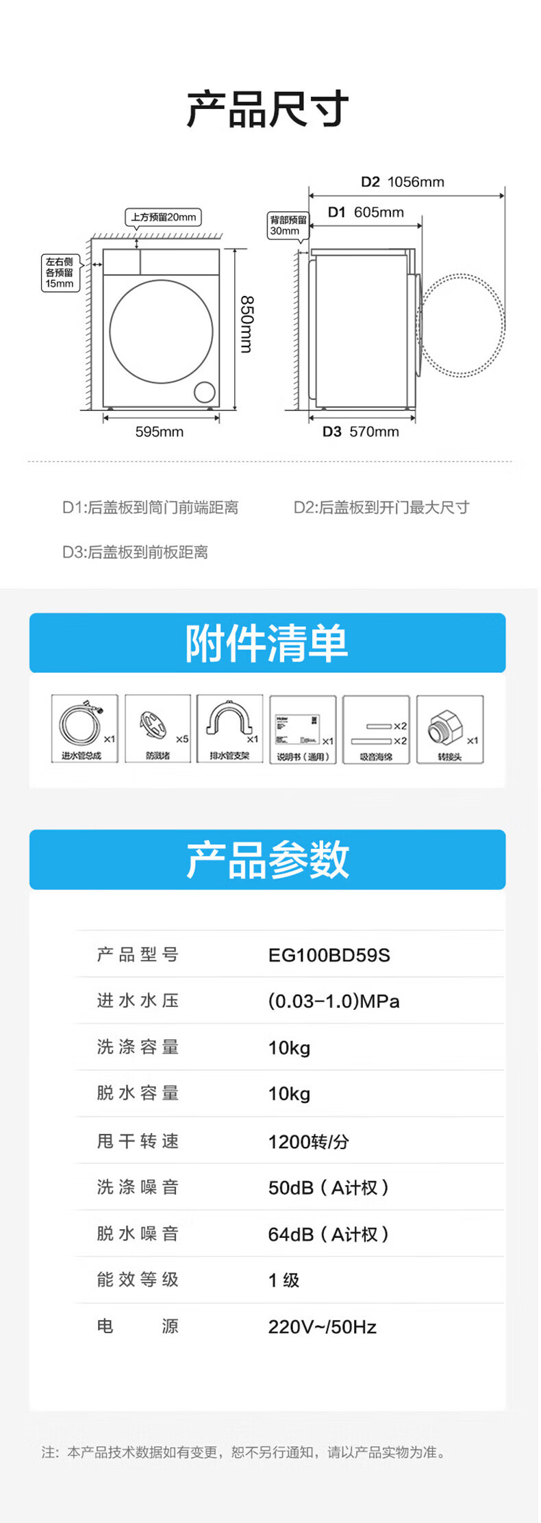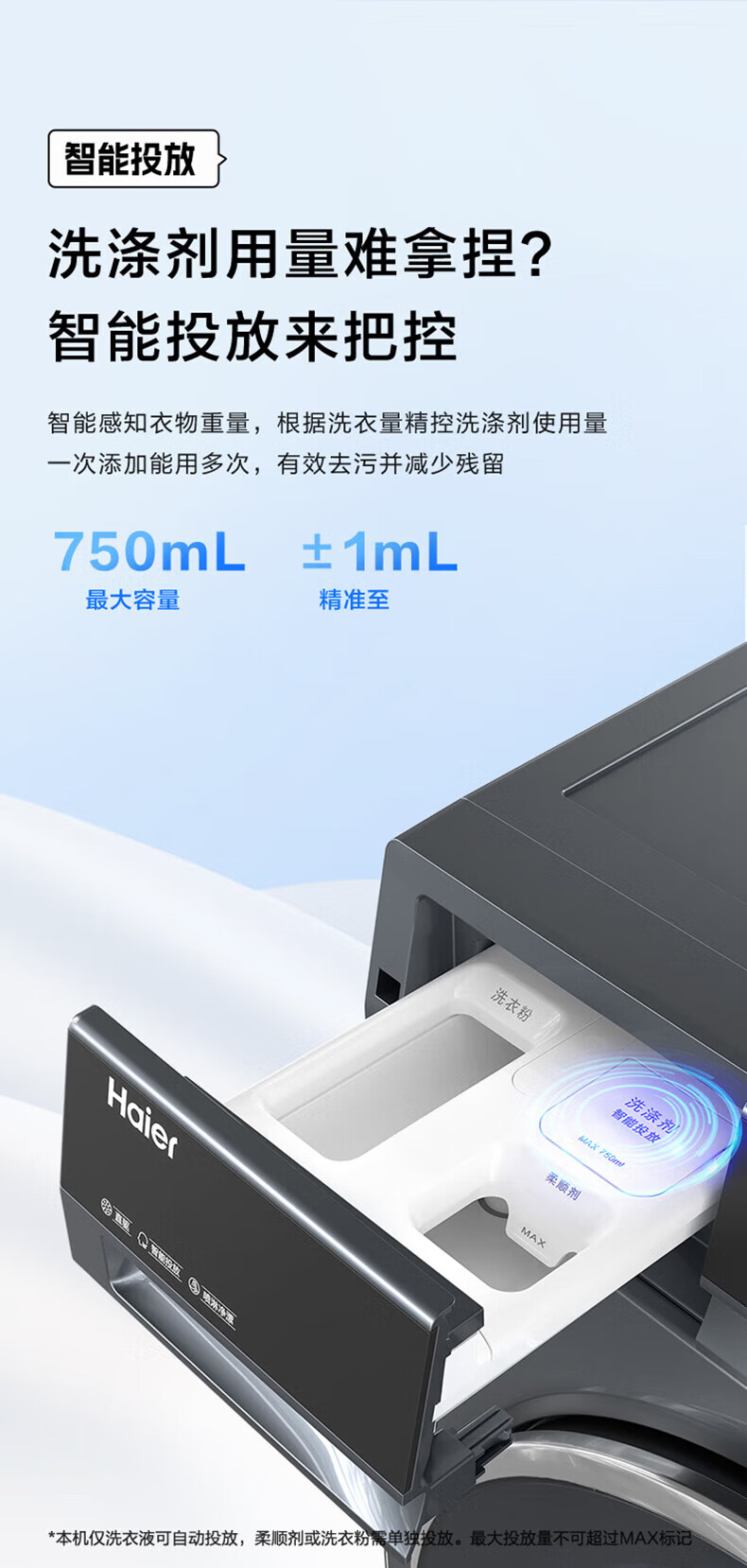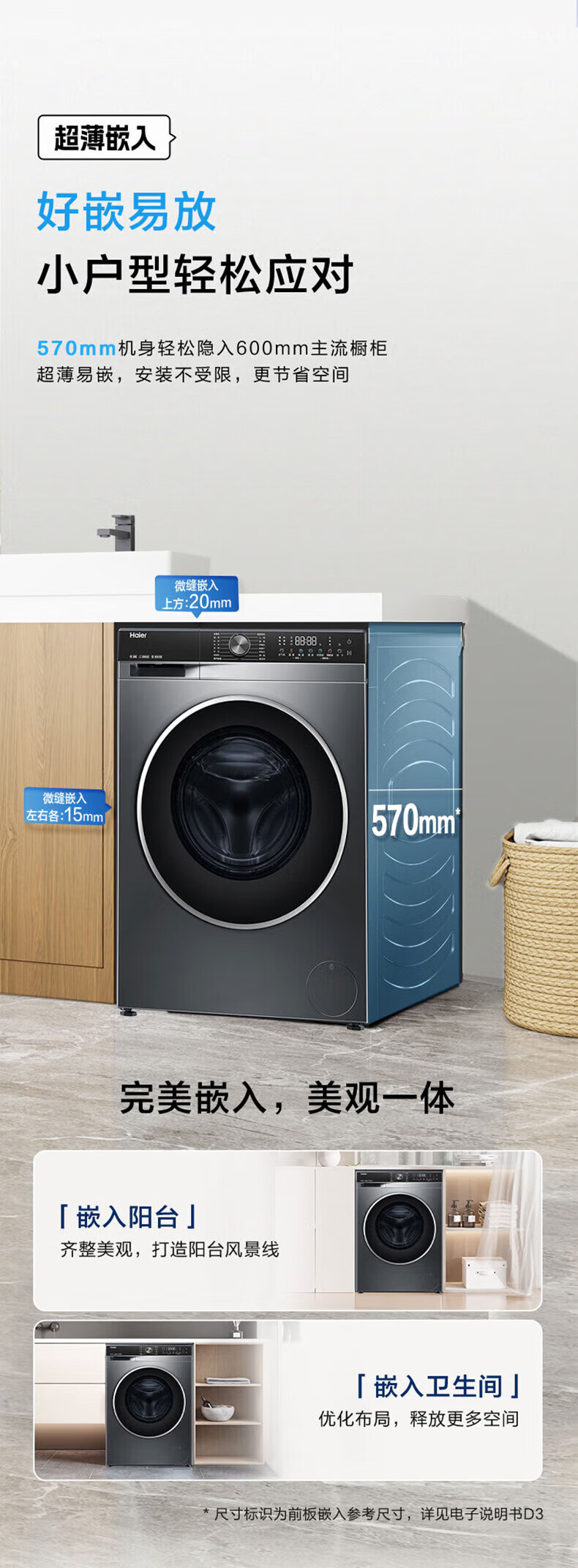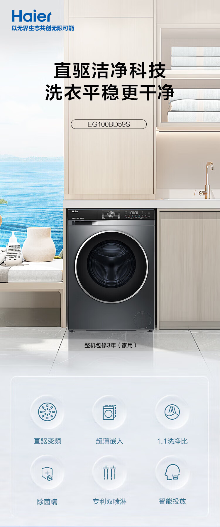 海尔(Haier)超薄直驱滚筒洗衣机全自动 BD59S单洗 10公斤大容量智能投放 家电补贴 以旧换新 【59S单洗】直驱电机+570mm超薄+智投智慧洗