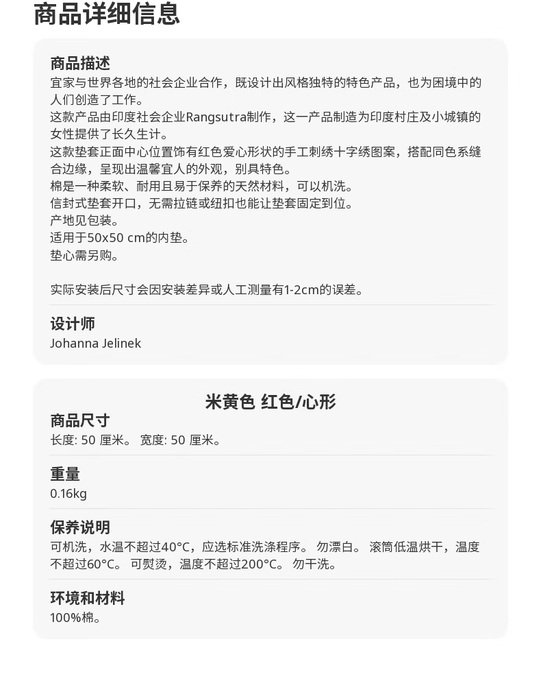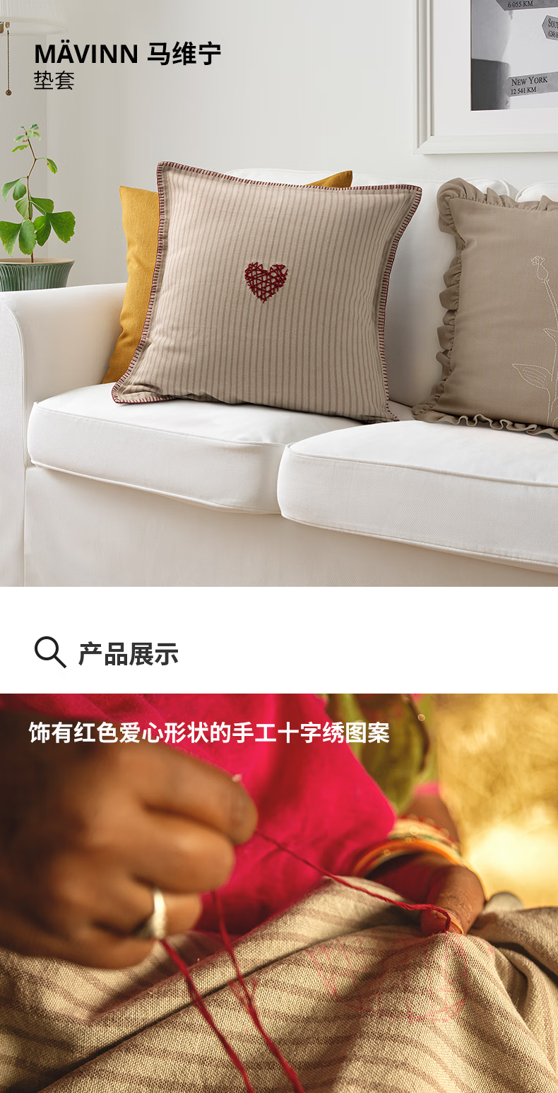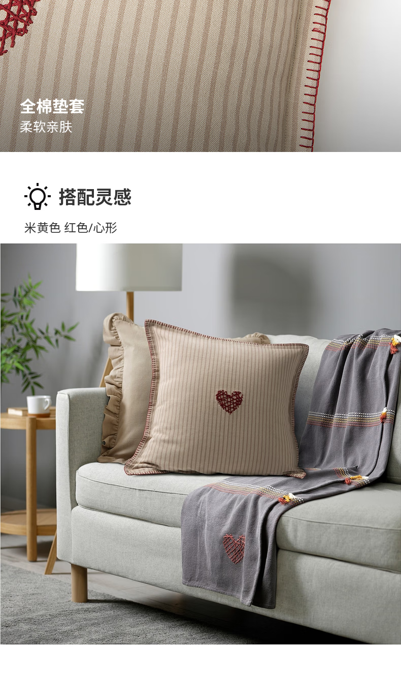 宜家(IKEA)MAVINN 马维宁抱枕靠垫套 50x50 米黄色 红色/心形 米黄色 红色/心形垫套 50cm*50cm