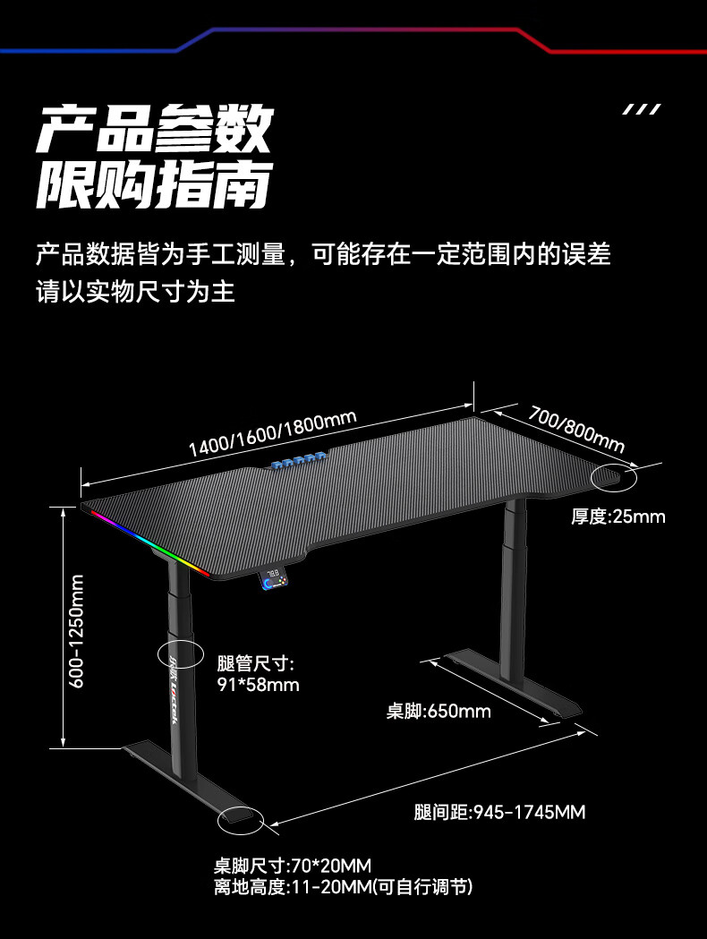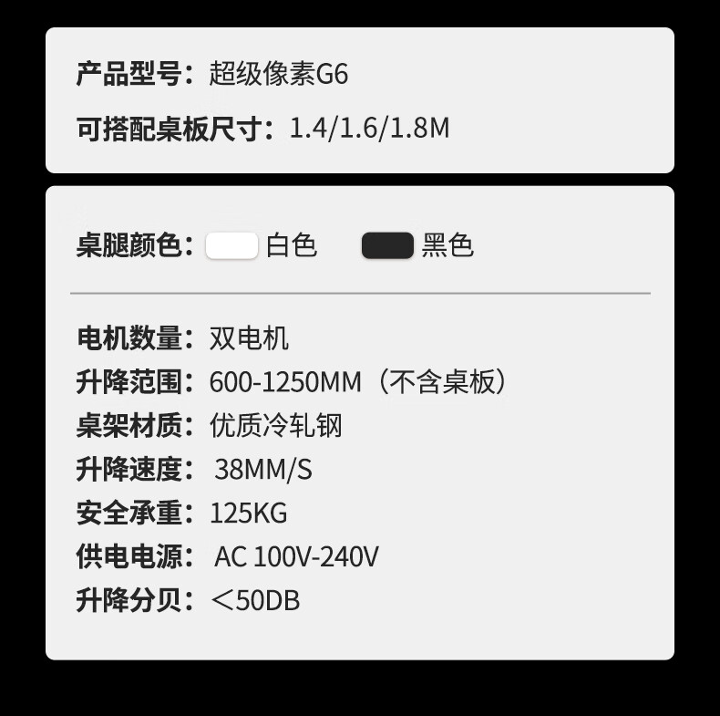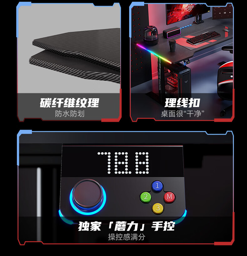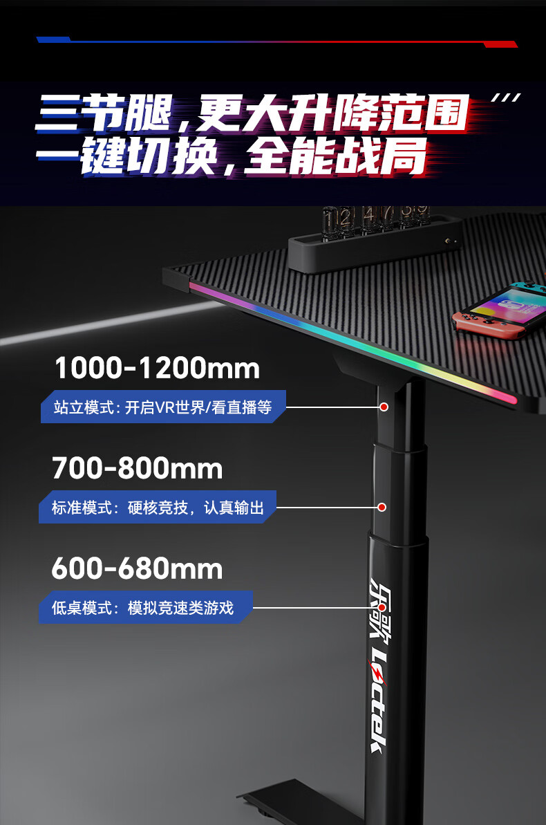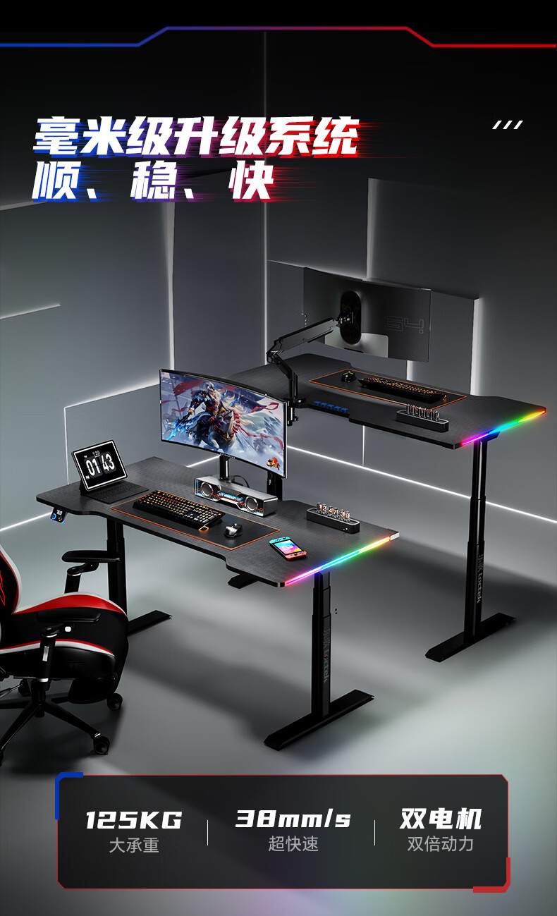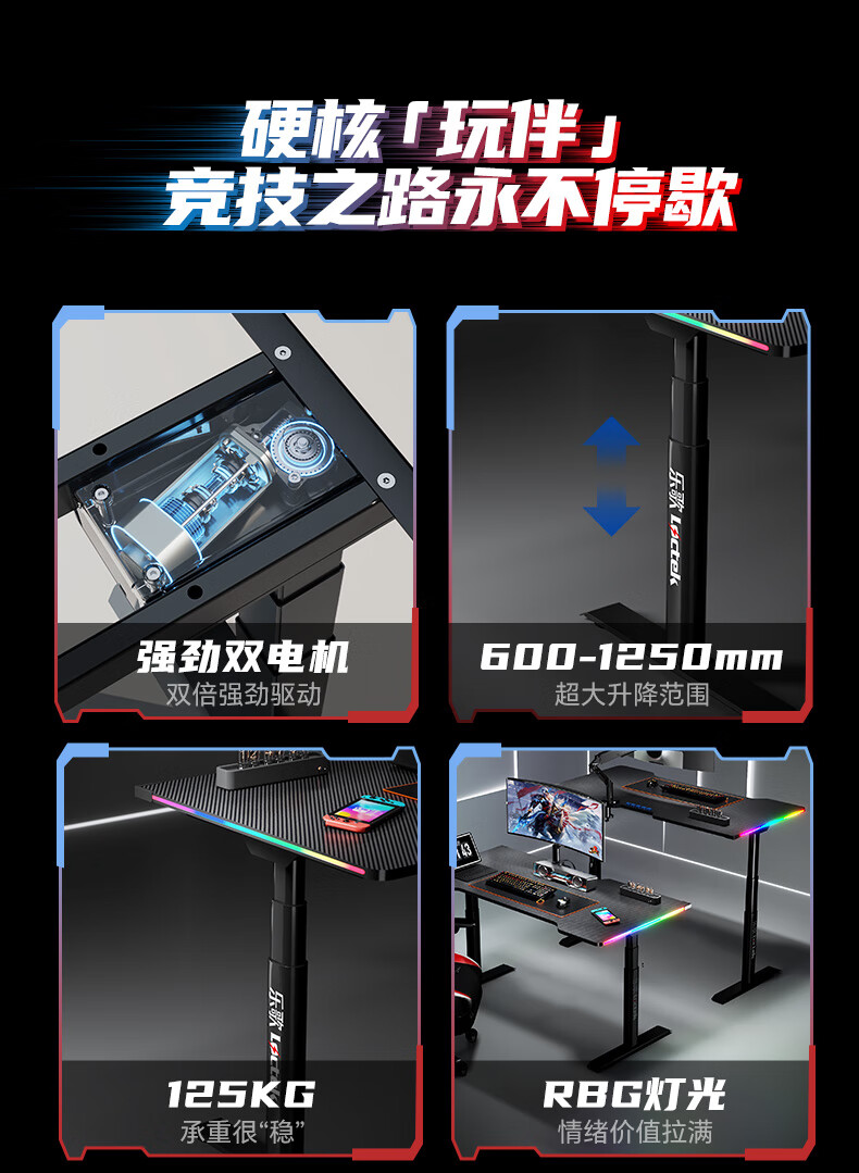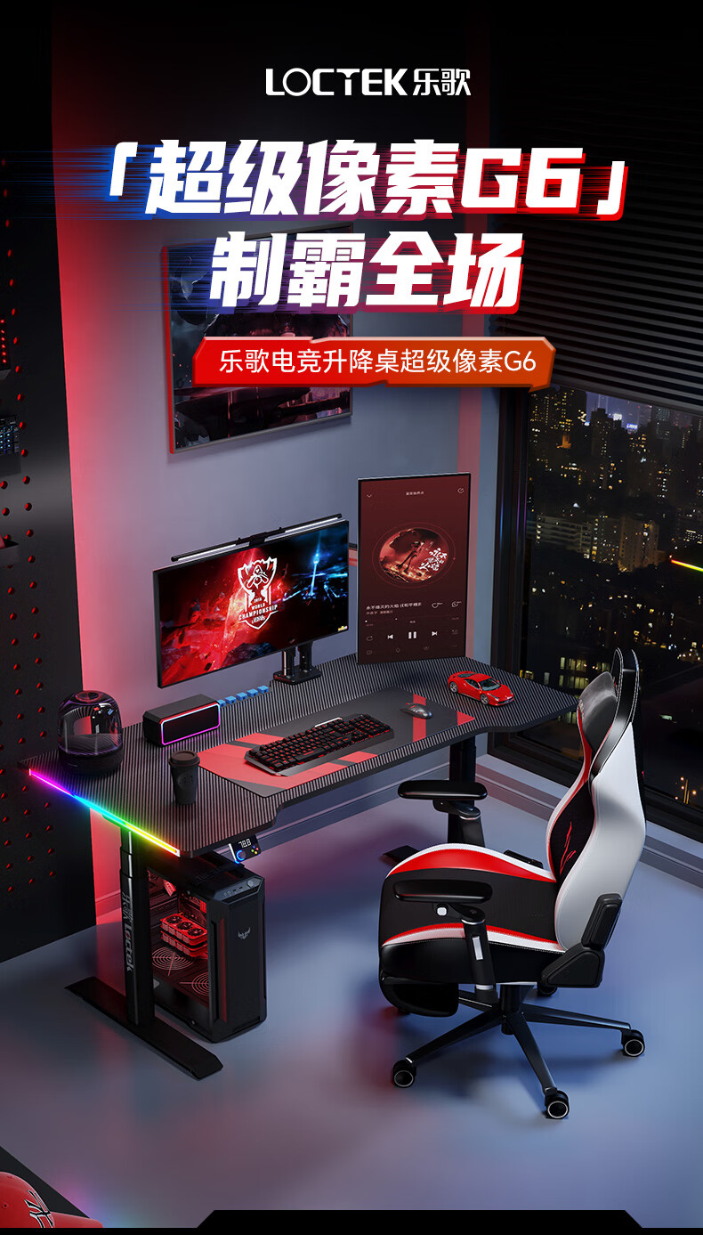 Loctek超级像素G6电竞桌智能电动升降桌实木电脑桌书房游戏桌椅支架套装 超级像素G6黑-18mm电竞灯带桌板 桌板尺寸:1.4*0.7m