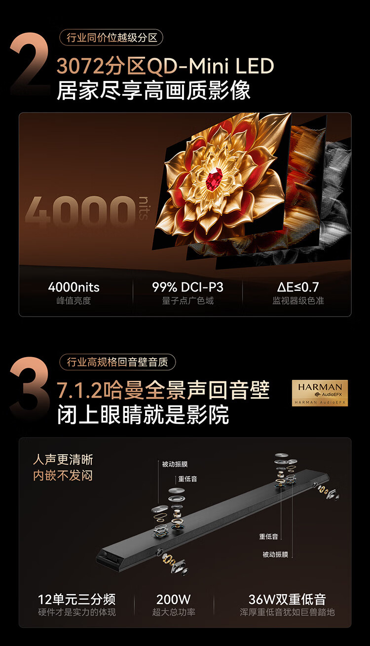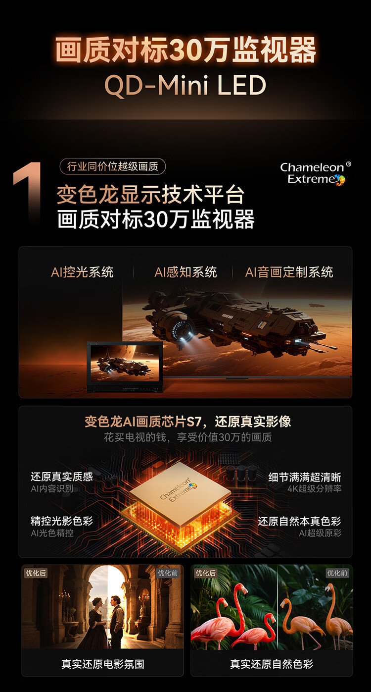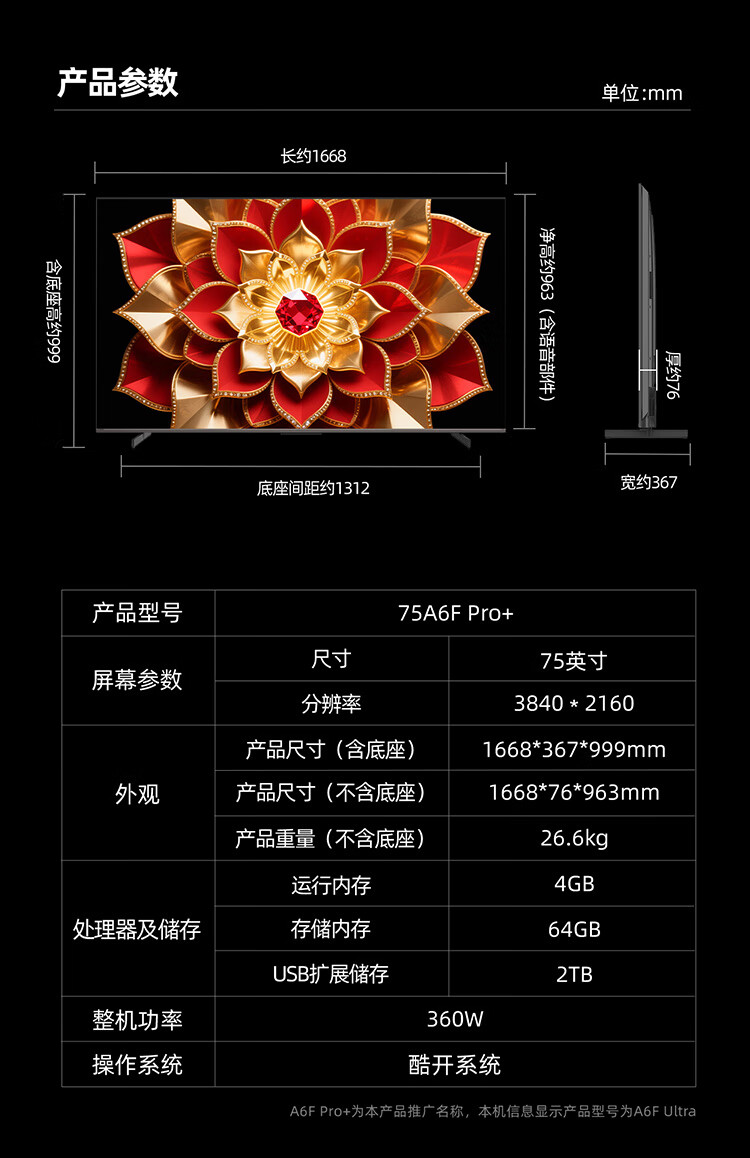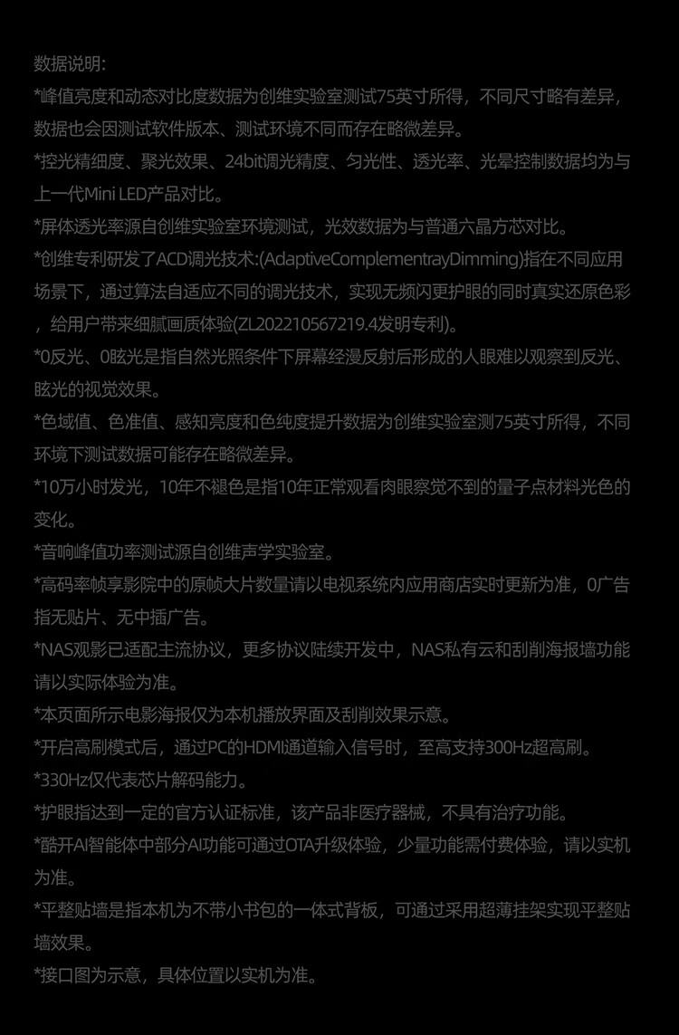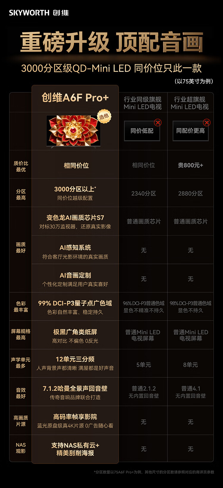 创维电视A6F Pro+ 75英寸智能平板电视机3072分区QD-Mini LED 液晶游戏 75吋国家补贴 A6F Ultra
