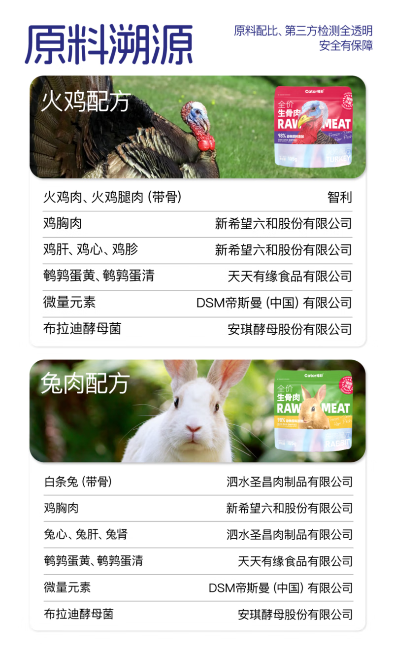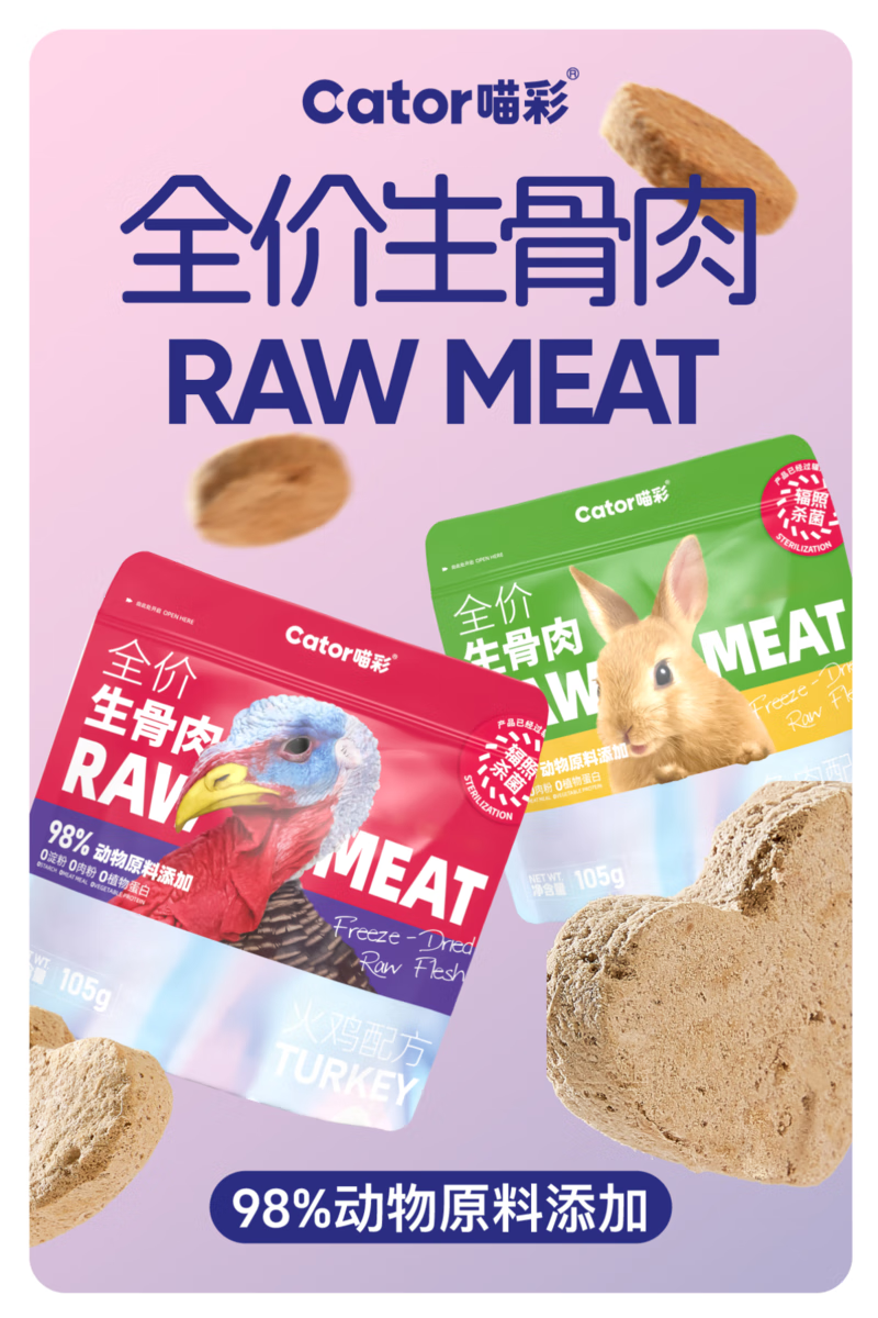 喵彩(cator)全价冻干生骨肉兔肉火鸡成幼猫猫咪主食猫粮105g 兔肉(三角形) 口味