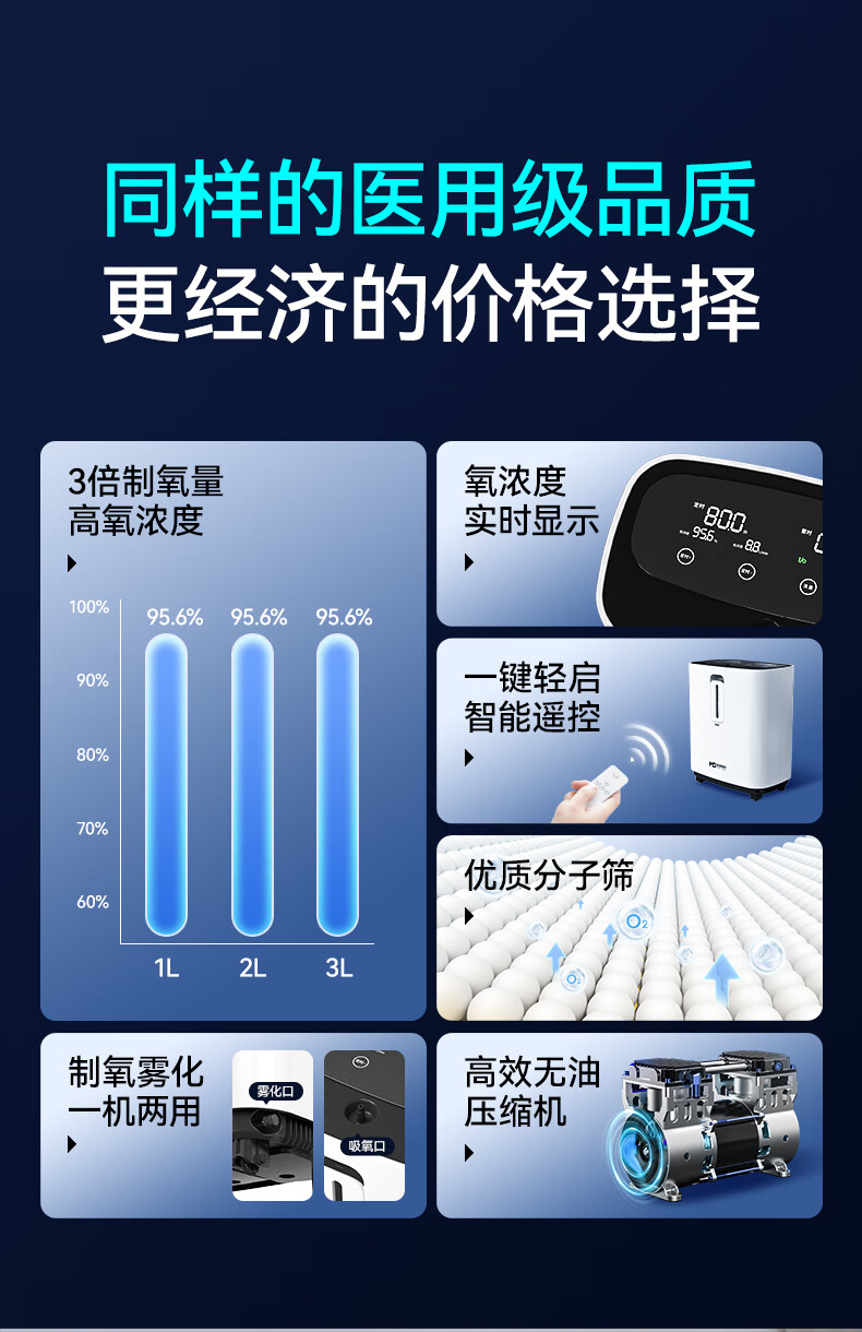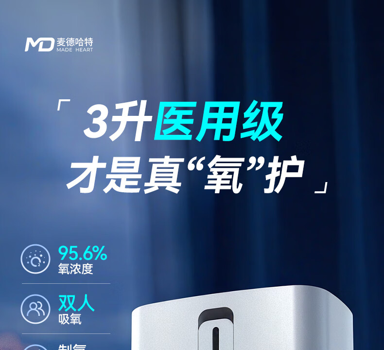 麦德哈特医用制氧机3升吸氧机家用老人氧气机制氧雾化一体机高原制氧机
