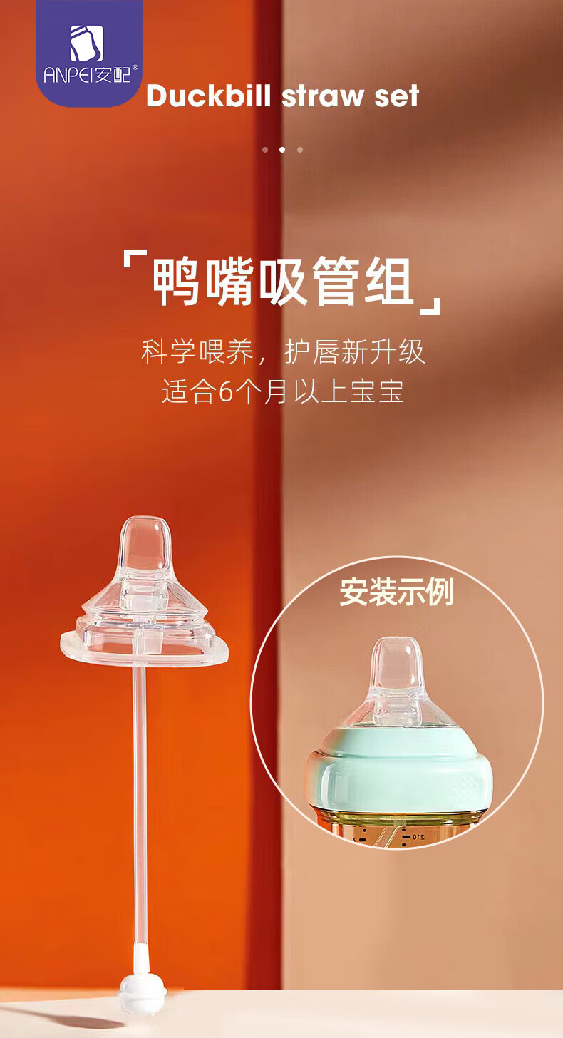 安配方形奶瓶鸭嘴吸管11字孔 6个月以上(适用于赫根多种方形奶瓶)