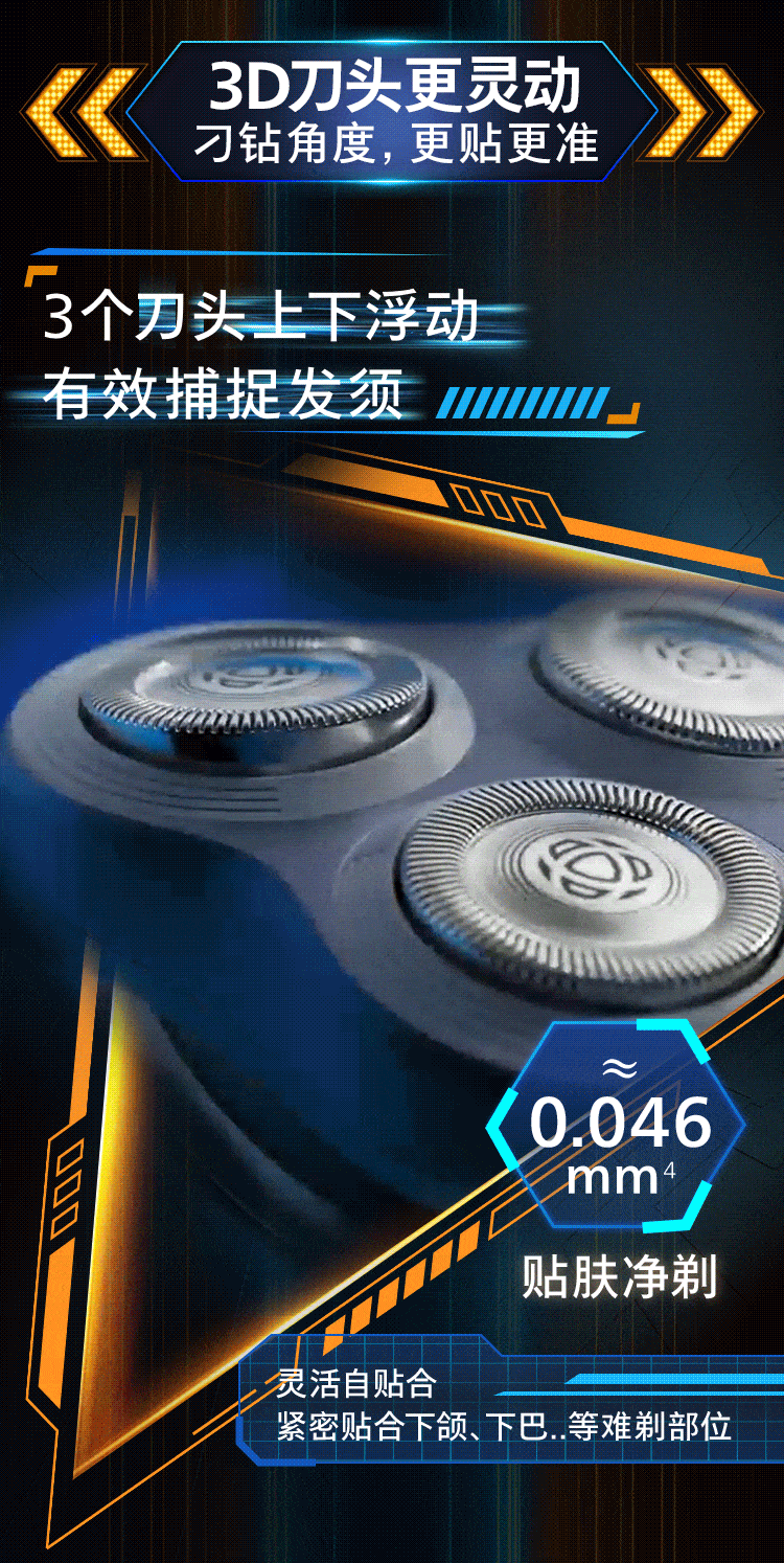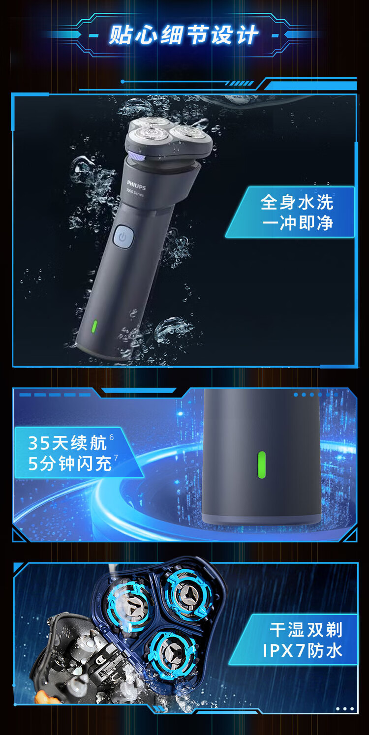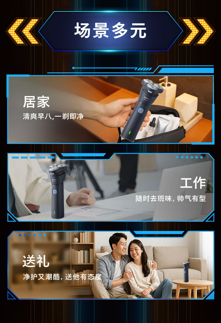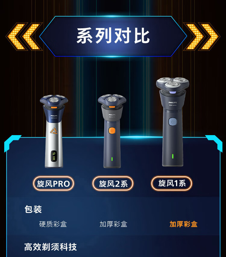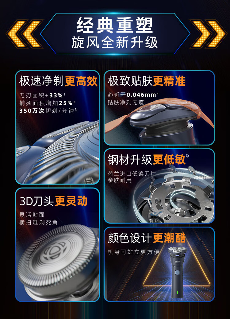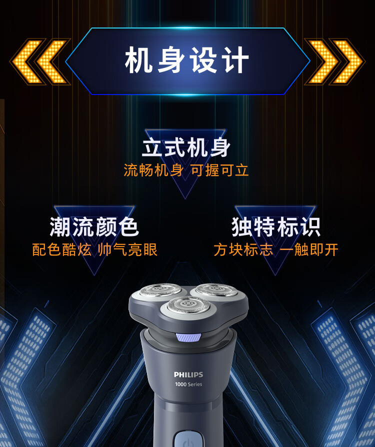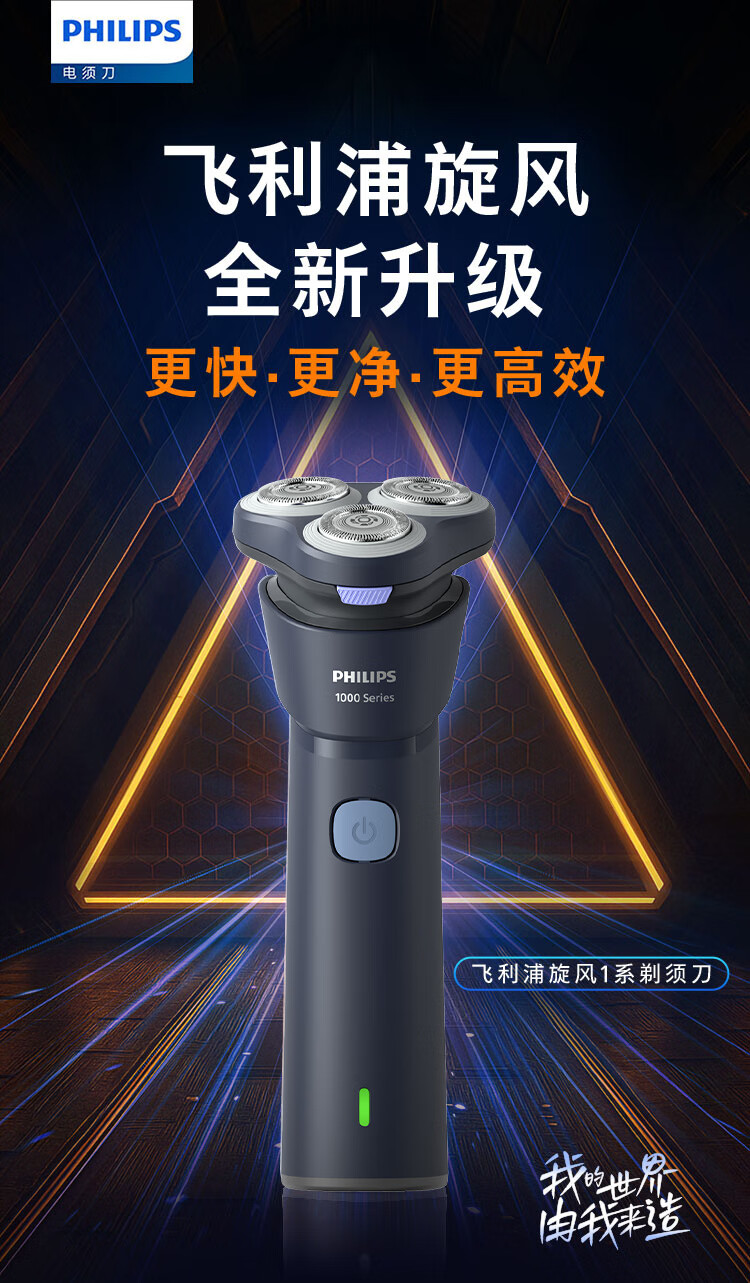 飞利浦(PHILIPS)电动剃须刀新一代旋风1系刮胡刀 风驰切剃3D浮动刀头 送老公 送男友 父亲生日礼物 国家补贴