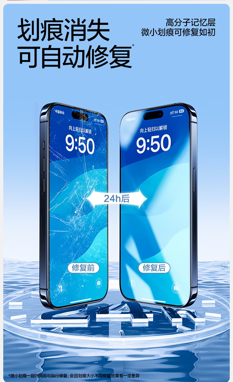 闪魔 苹果15pro/15promax水凝膜iphone15手机膜plus高清防指纹防摔保 苹果15pro【水凝软膜|高清全屏】2片装 贴坏包赔