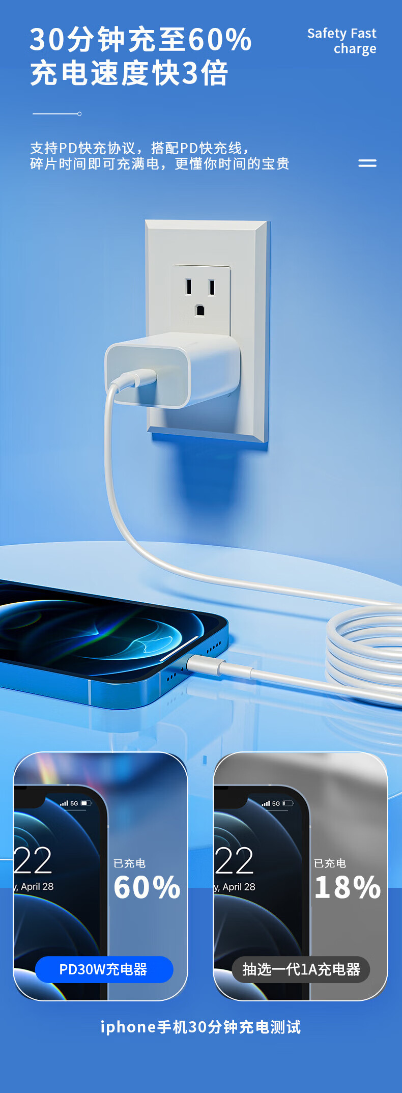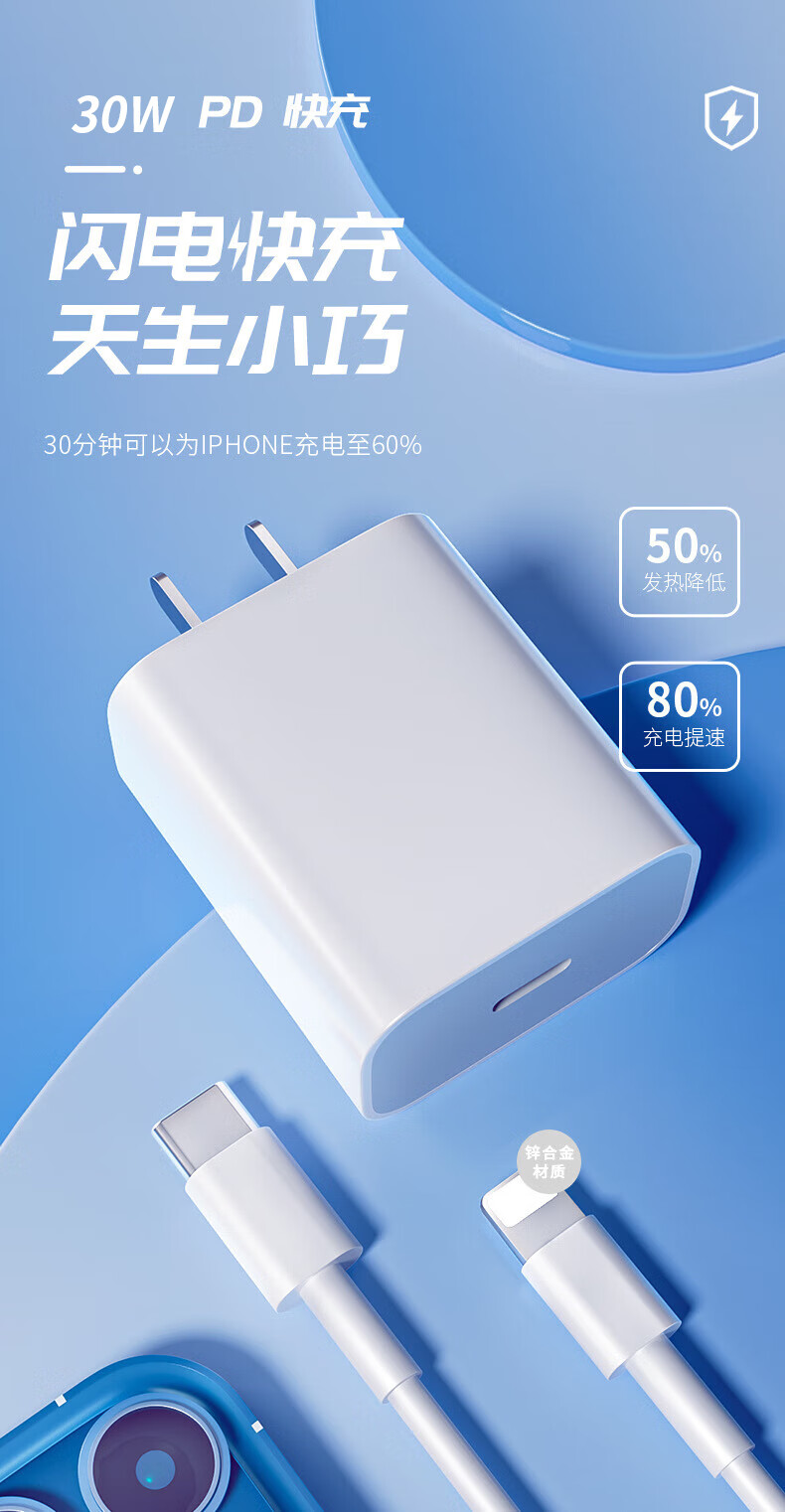 其他品牌苹果15/16/17充电器PD快充type-c充电器插头充电线 30W快充线套装适配iPhone16ProMax 6-14系列 适用苹果6-14系列PD快充头30W+1米快充线