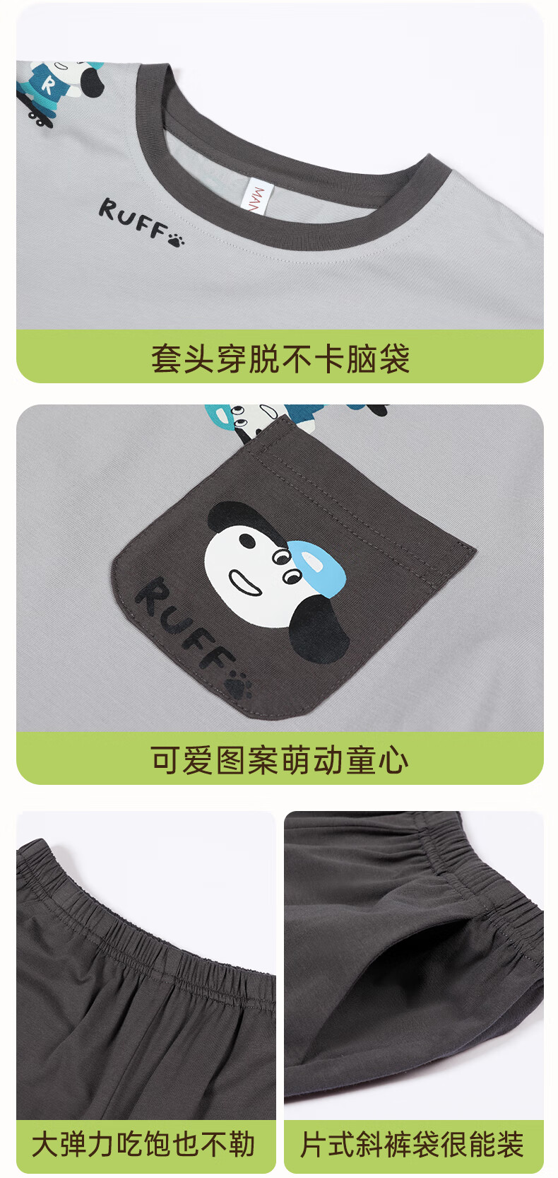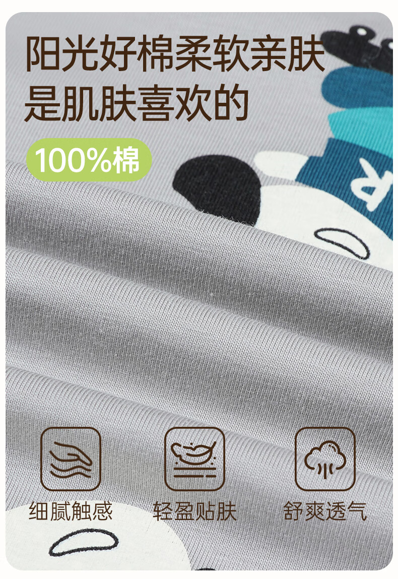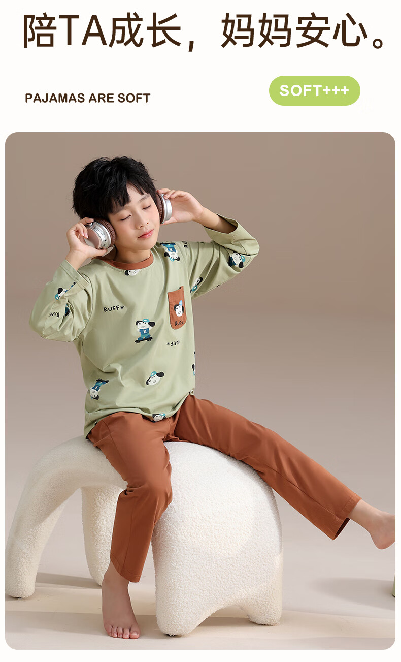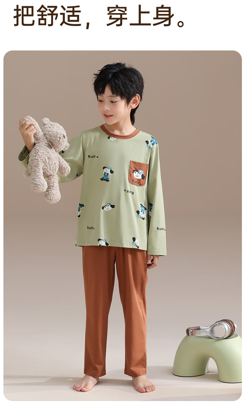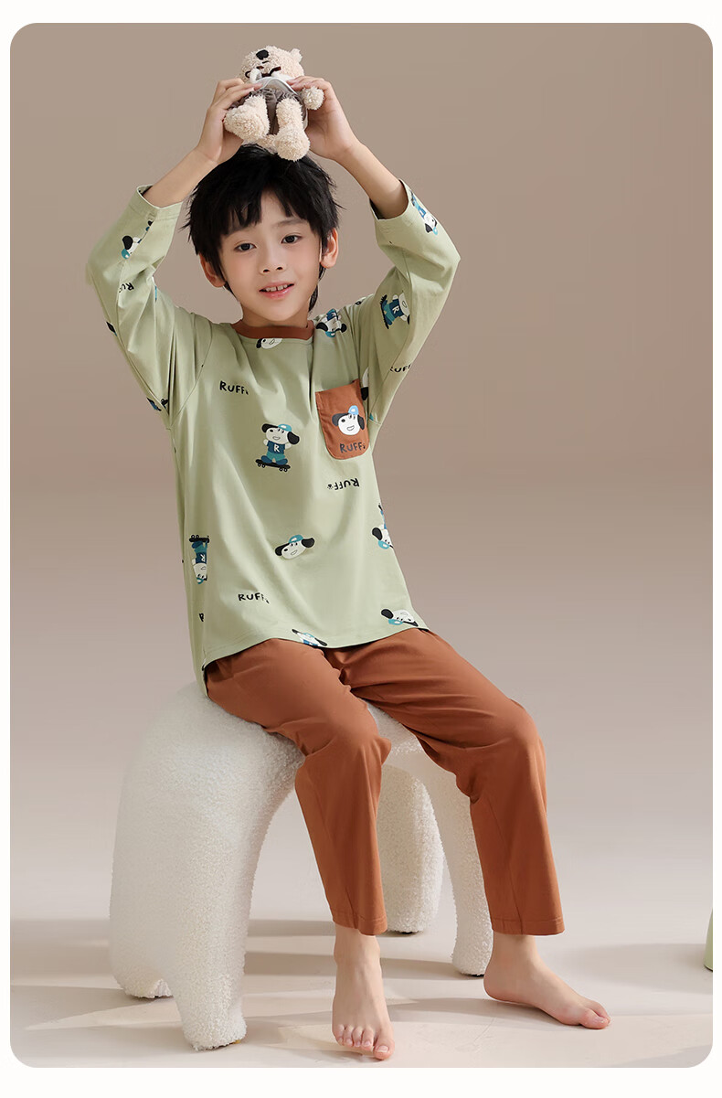 玛伦萨纯棉睡衣男童春秋季2025新款可外穿青少年学生长袖长裤家居服套装 灰色 S 120cm
