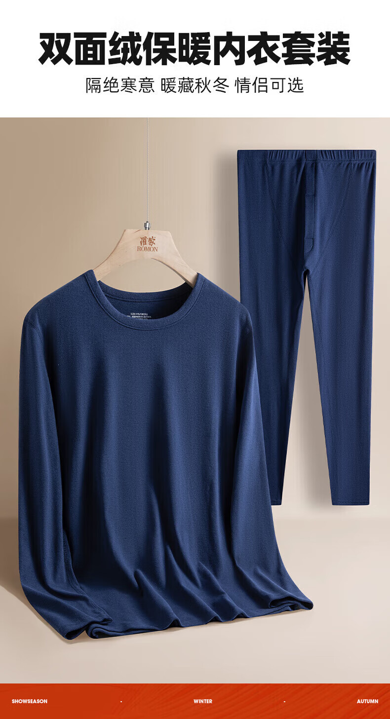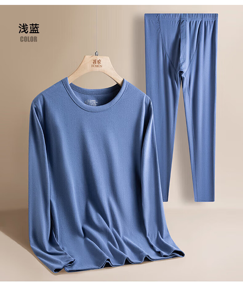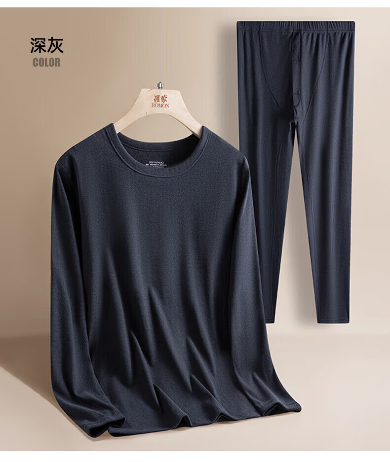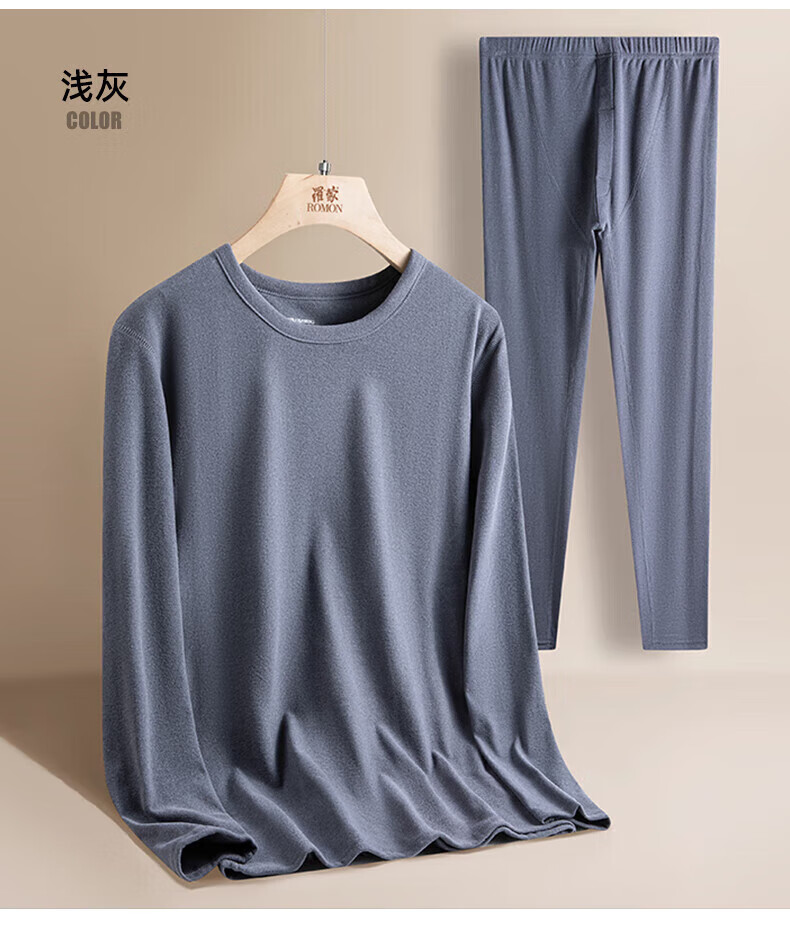 罗蒙(ROMON)【10A级抗菌双面绒】情侣款保暖套装秋冬新款休闲舒适加绒内衣男 5N280055A浅灰【男款】 2XL (建议男135-155斤/女120-140斤)