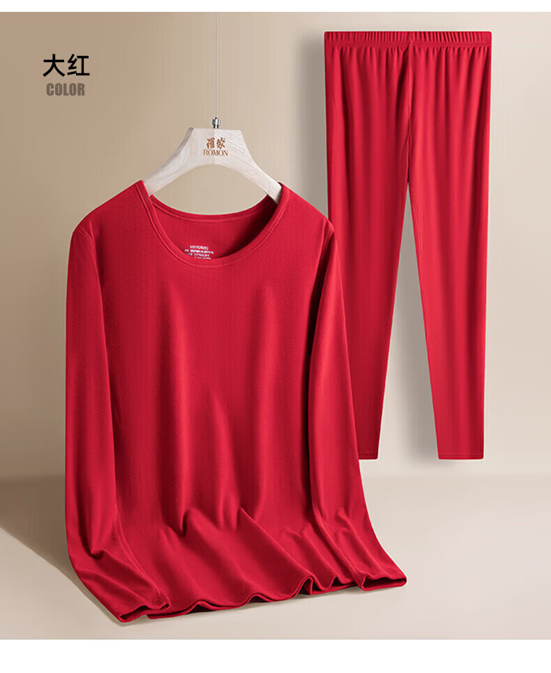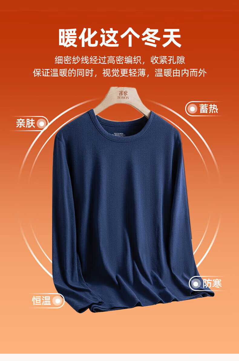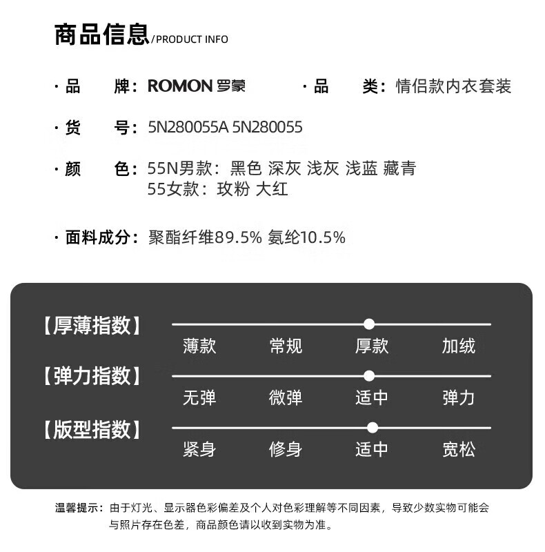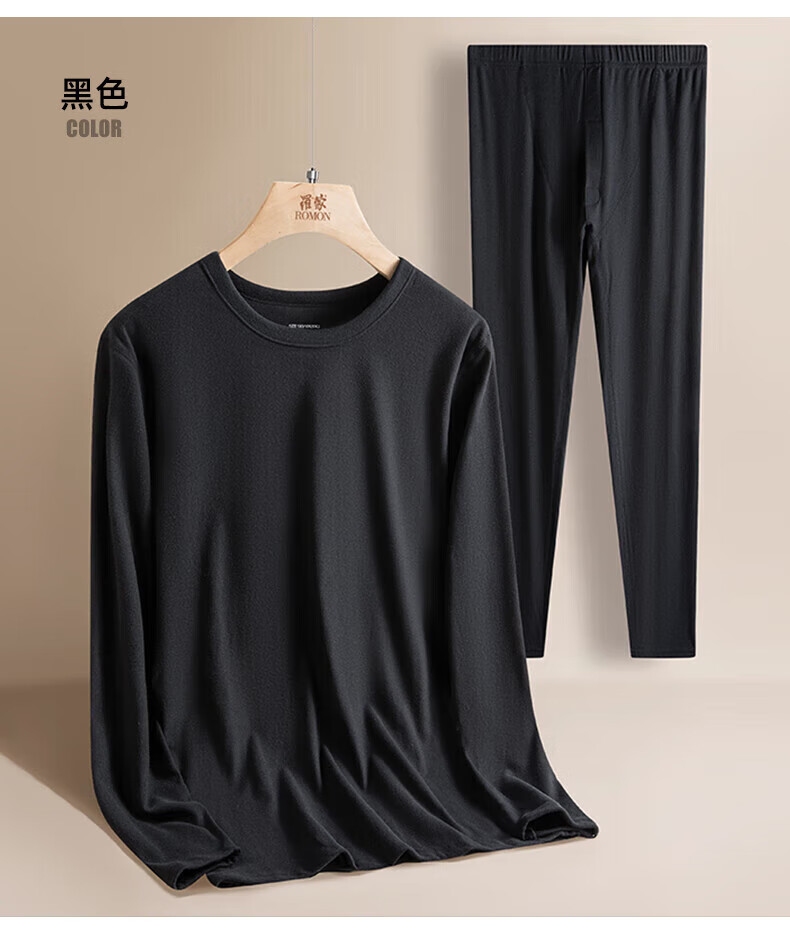 罗蒙(ROMON)【10A级抗菌双面绒】情侣款保暖套装秋冬新款休闲舒适加绒内衣男 5N280055A浅灰【男款】 2XL (建议男135-155斤/女120-140斤)