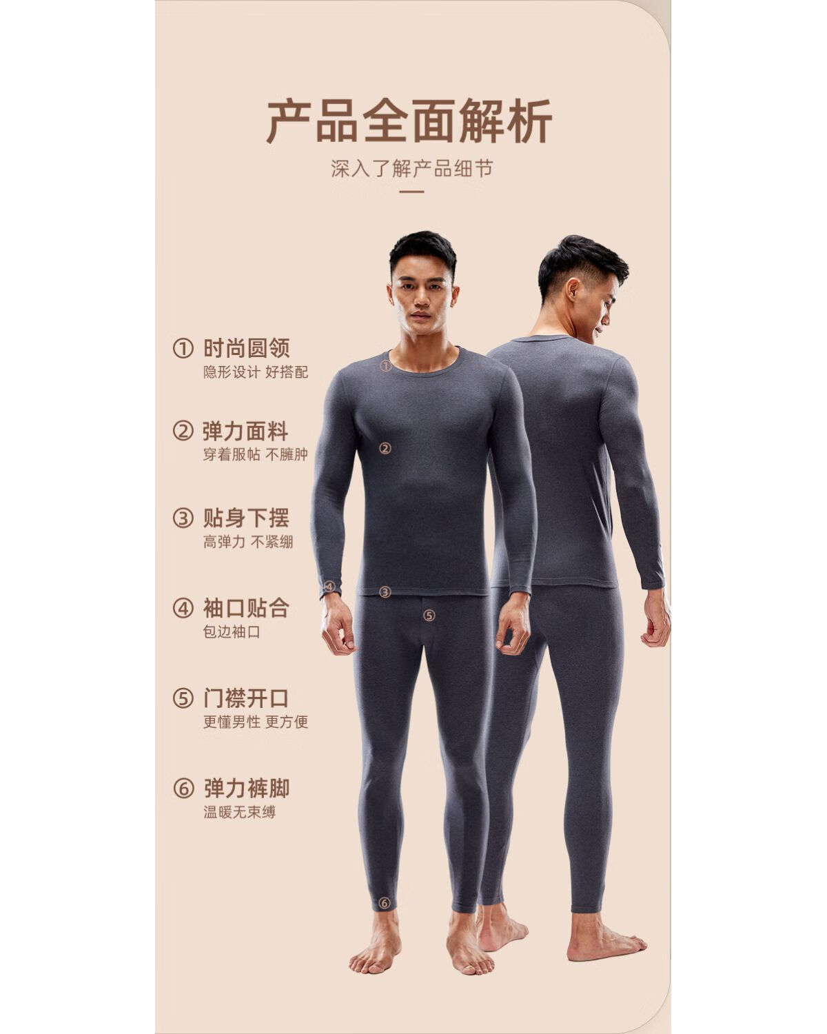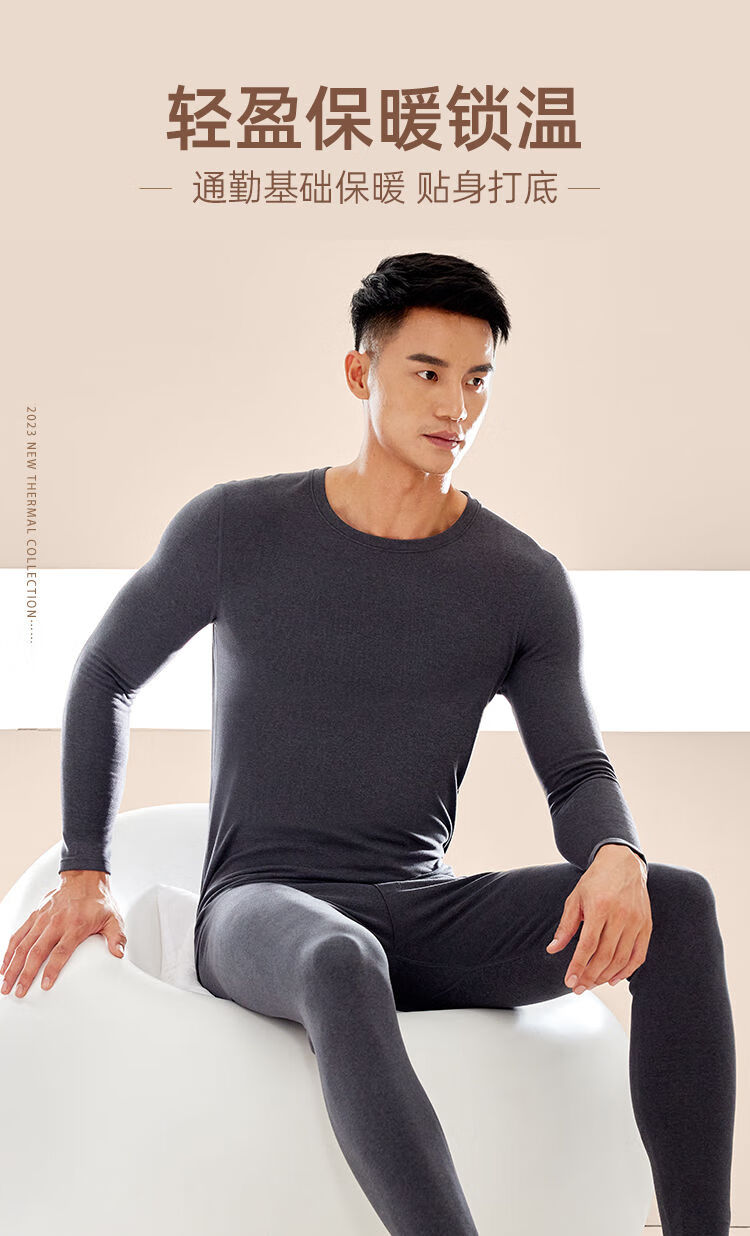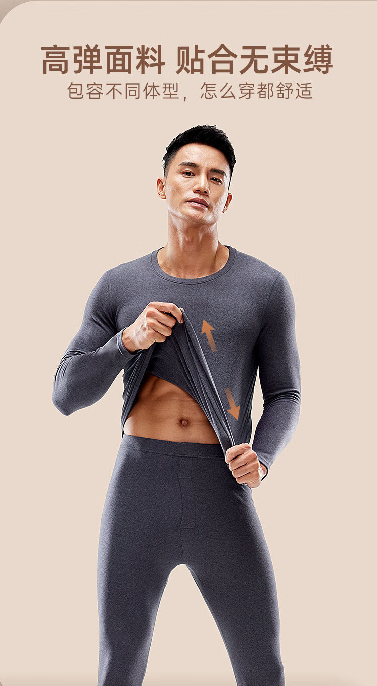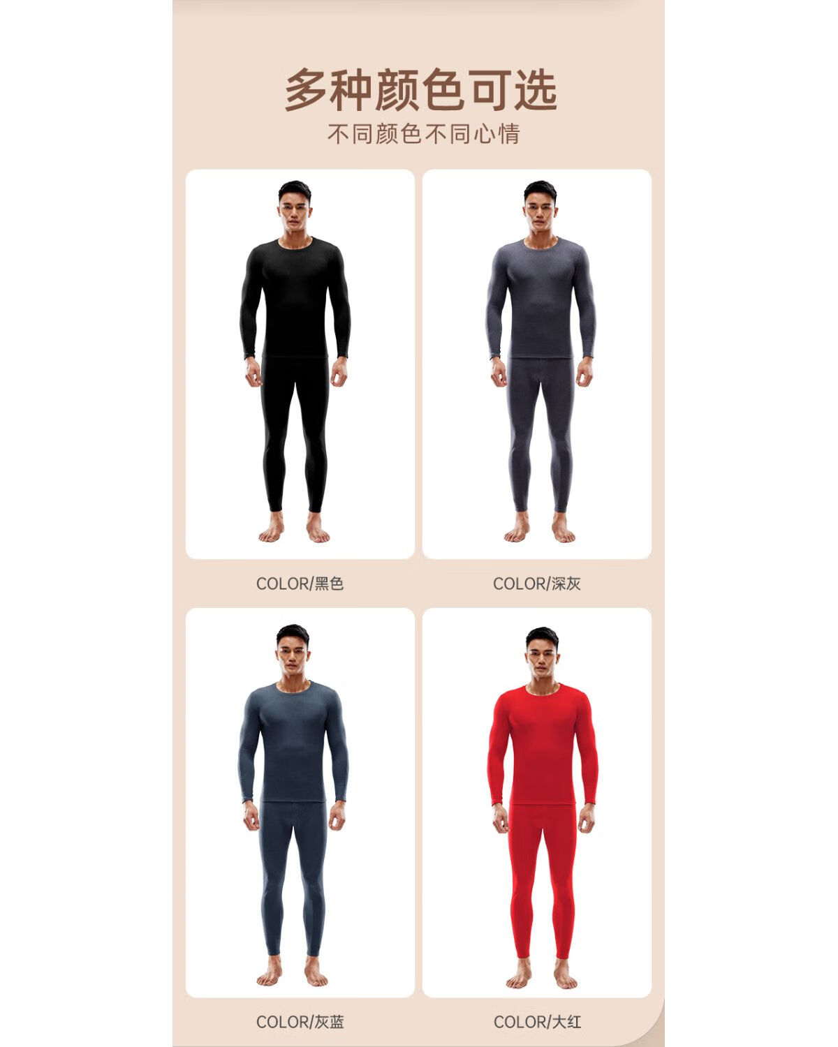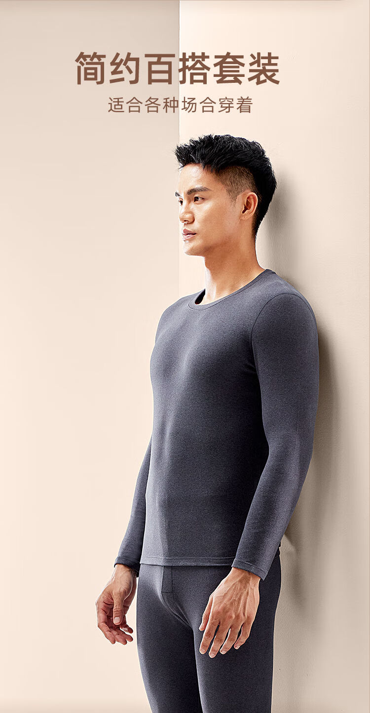 健将保暖内衣男士套装圆领百搭打底上衣防寒双面磨毛秋冬款打底裤 【双面磨毛】灰蓝 3XL