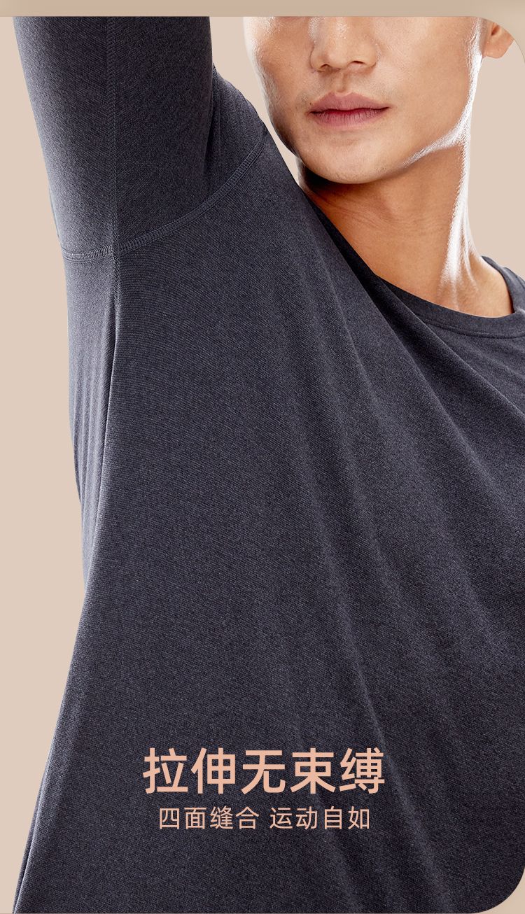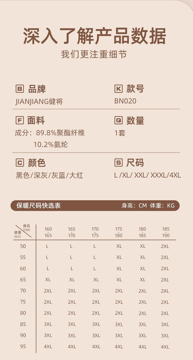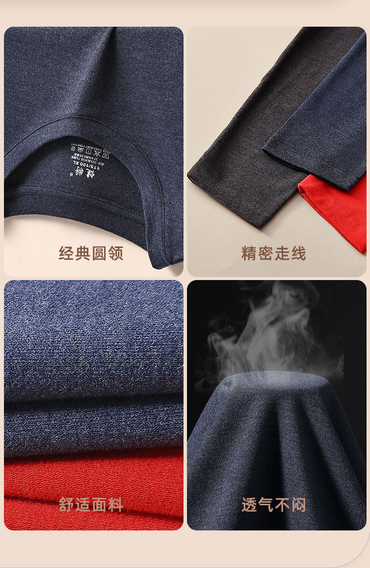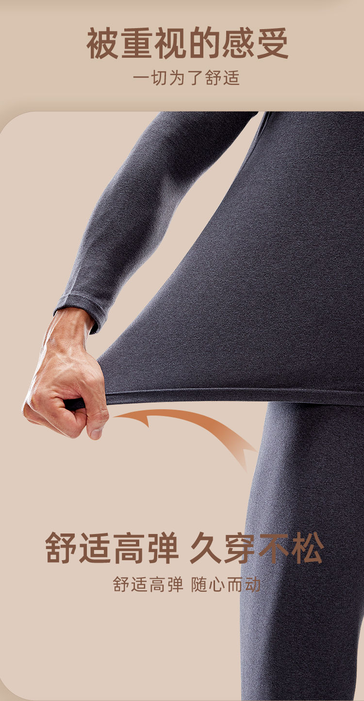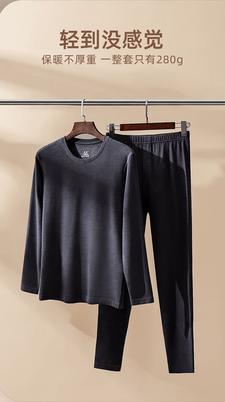 健将保暖内衣男士套装圆领百搭打底上衣防寒双面磨毛秋冬款打底裤 【双面磨毛】灰蓝 3XL