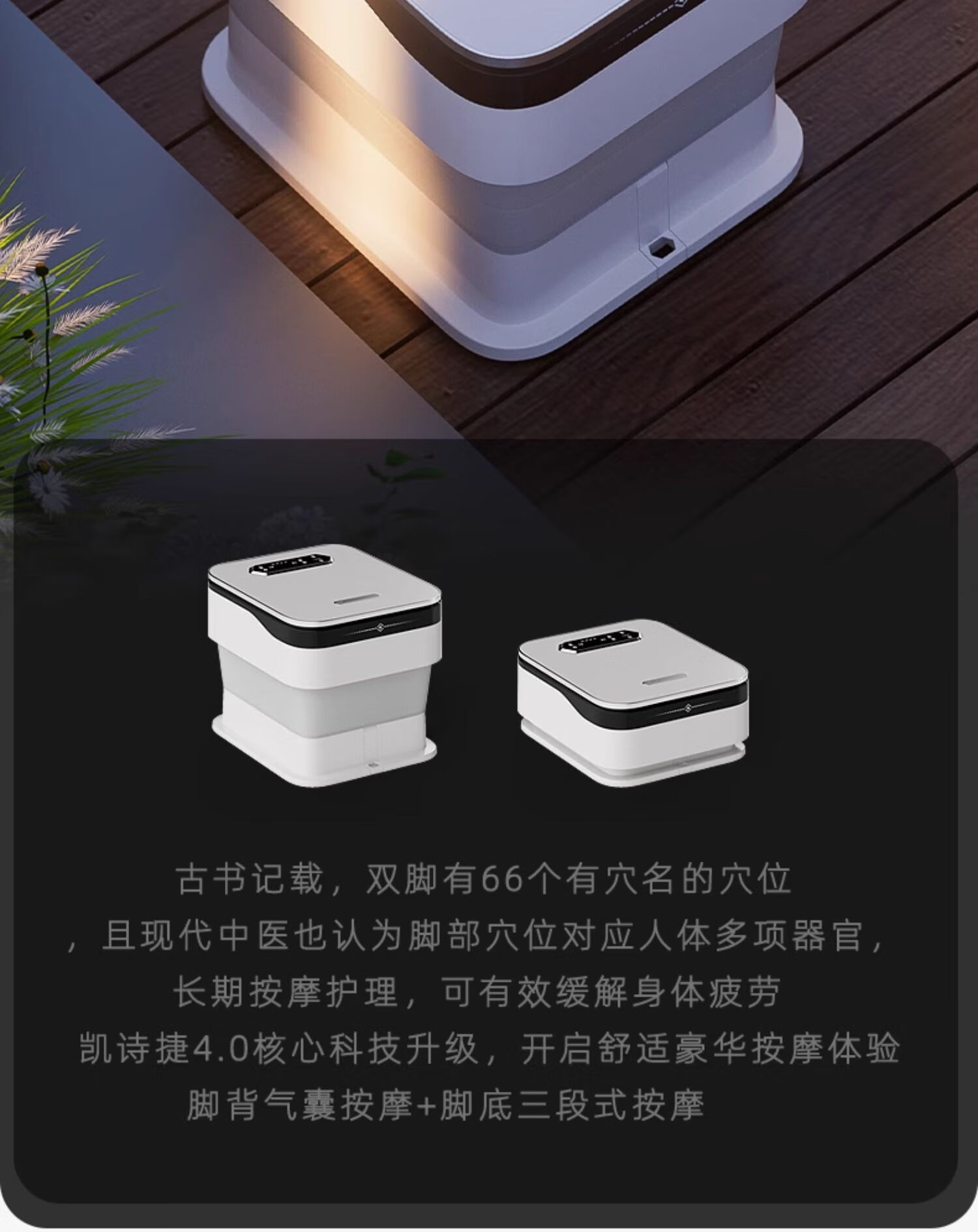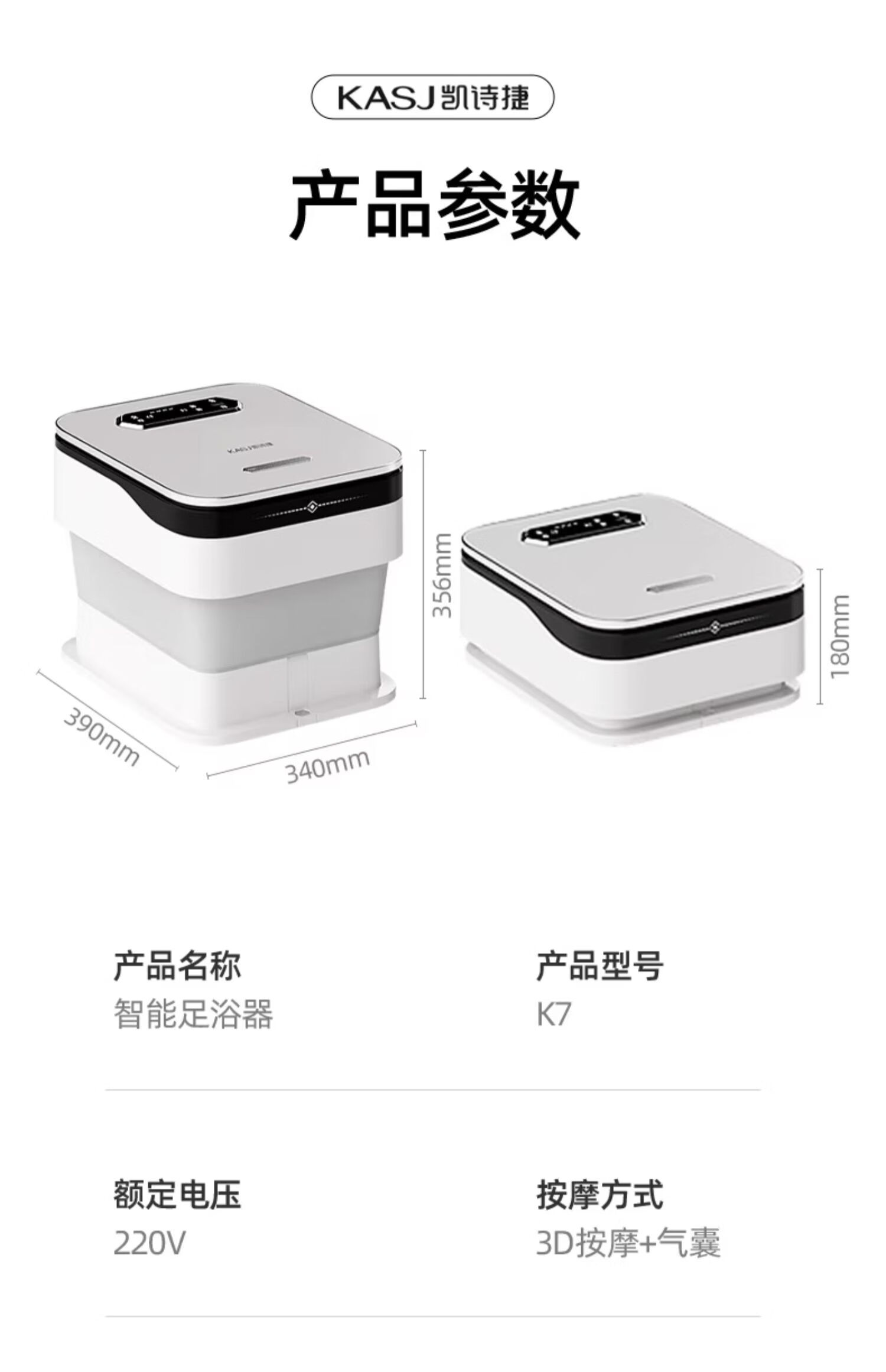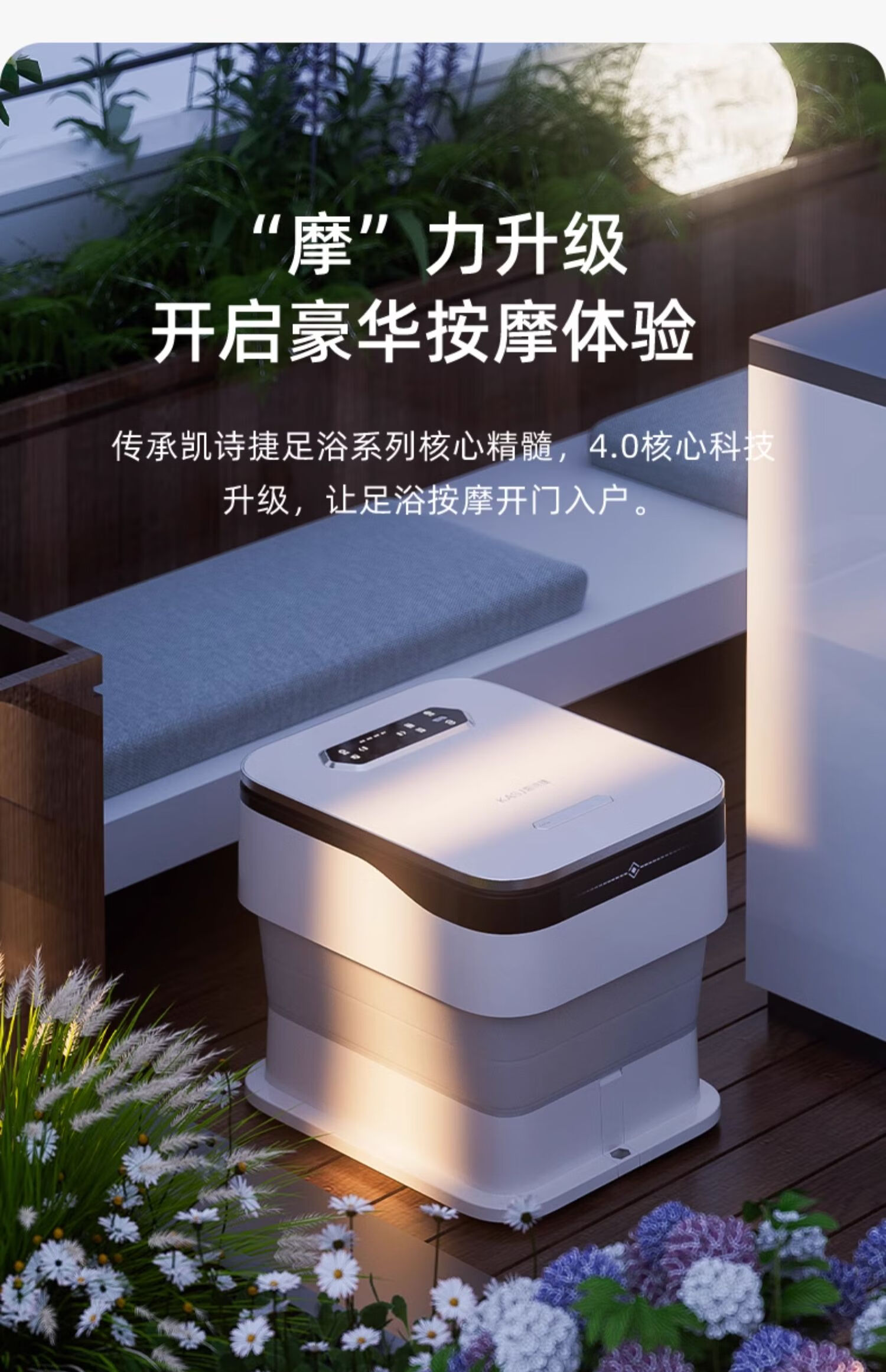 凯诗捷(KASJ)泡脚桶折叠足浴盆泡脚盆恒温加热洗脚盆全自动按摩洗脚桶送爸妈老年人生日七夕情人节礼物K7 皓月白