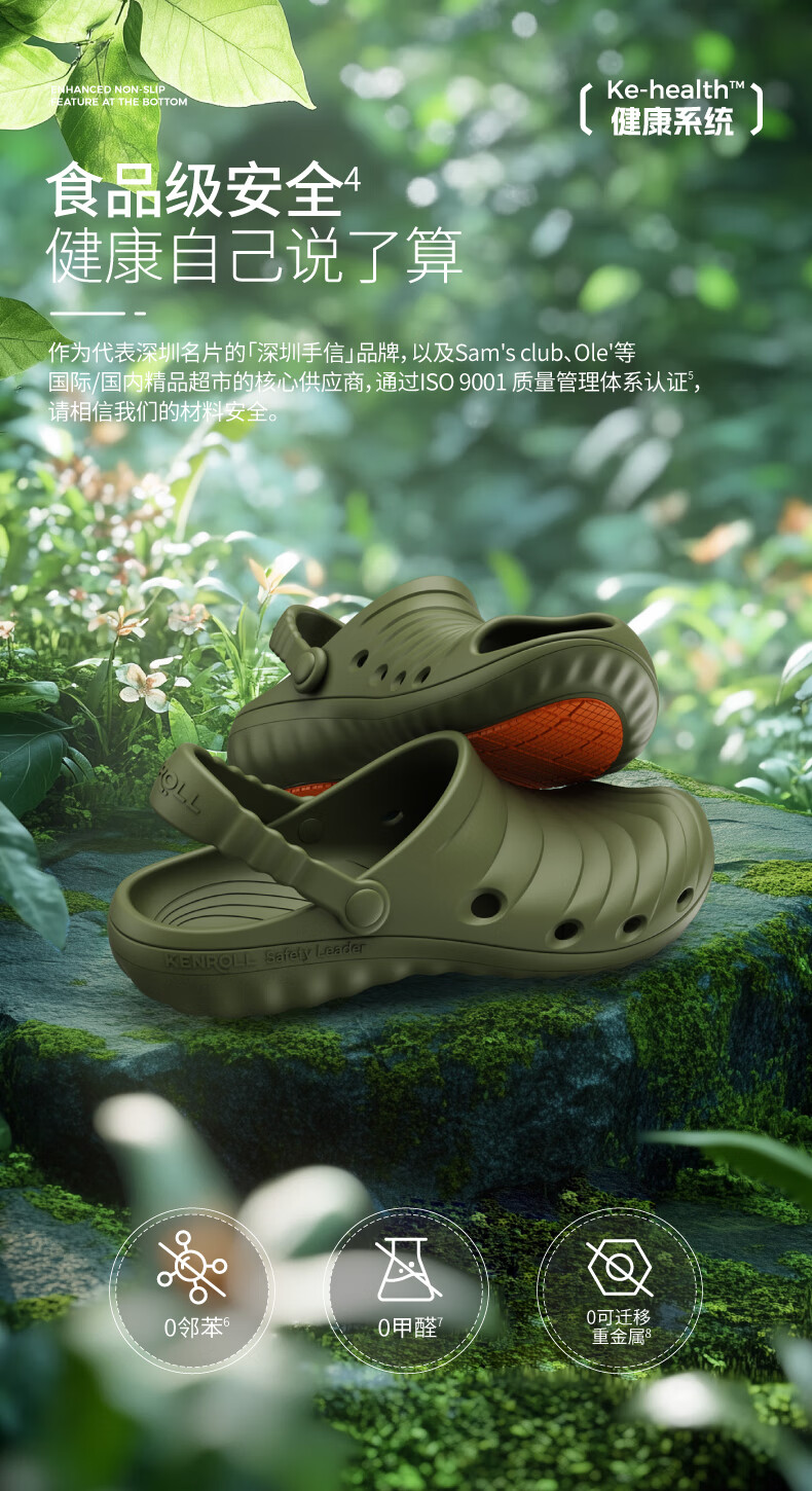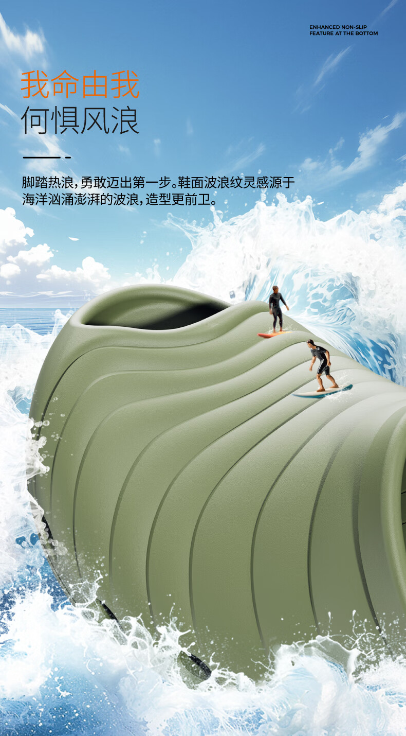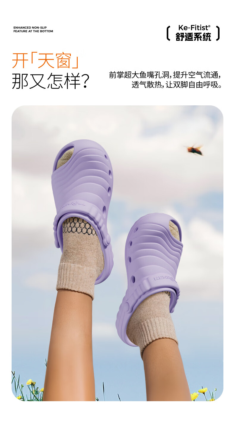 科柔KENROLL男女洞洞鞋户外波浪休闲花园鞋两用沙滩透气软底凉鞋 卡其色 42 (260mm)