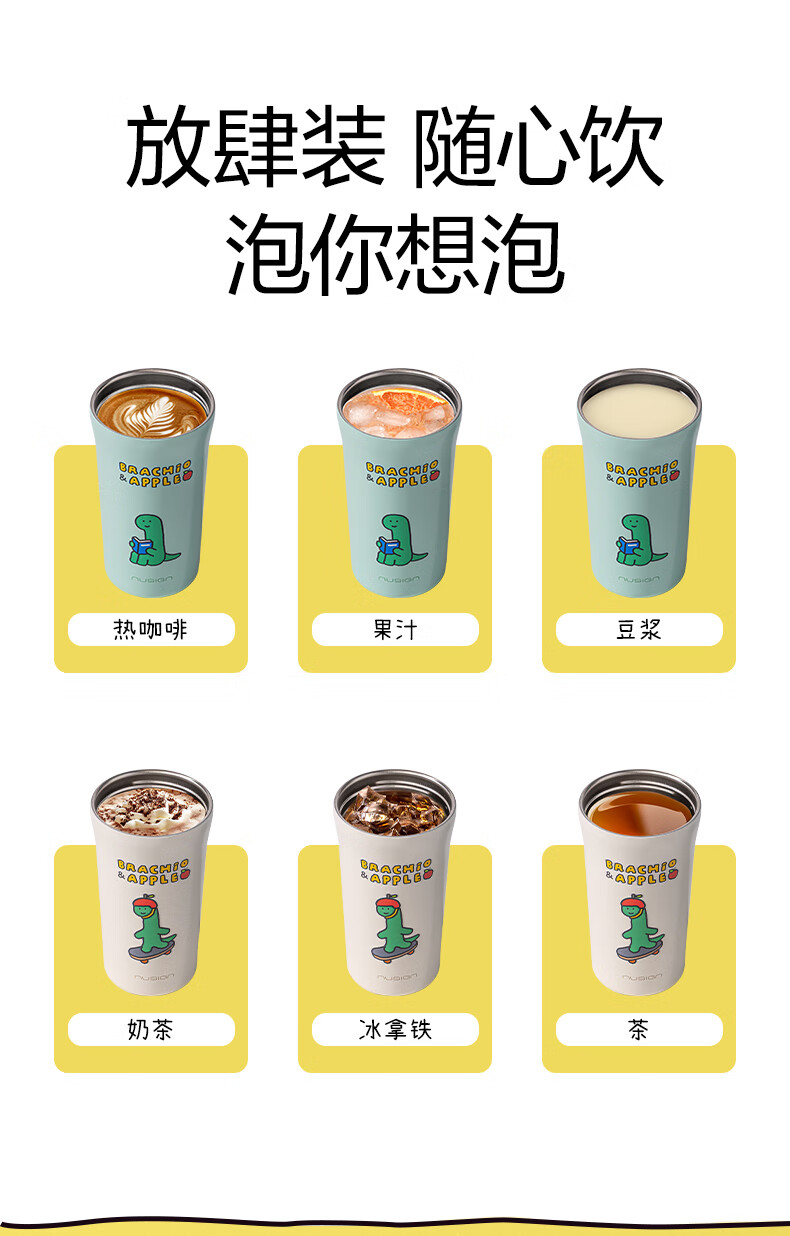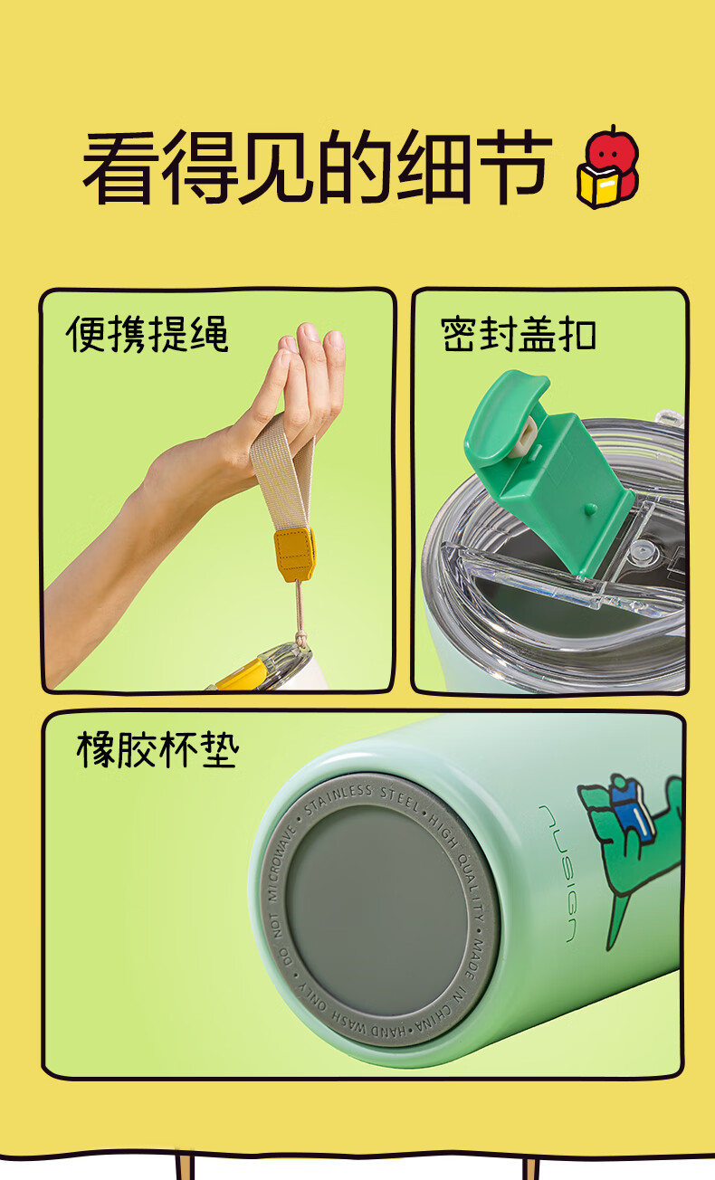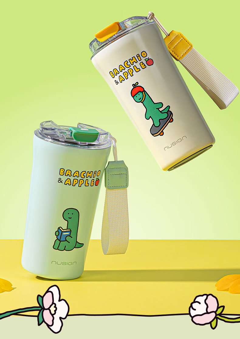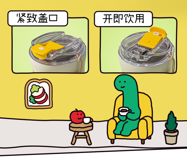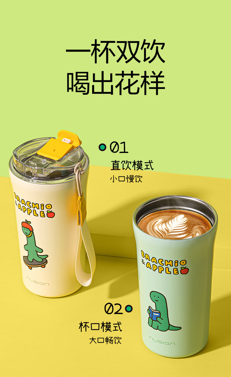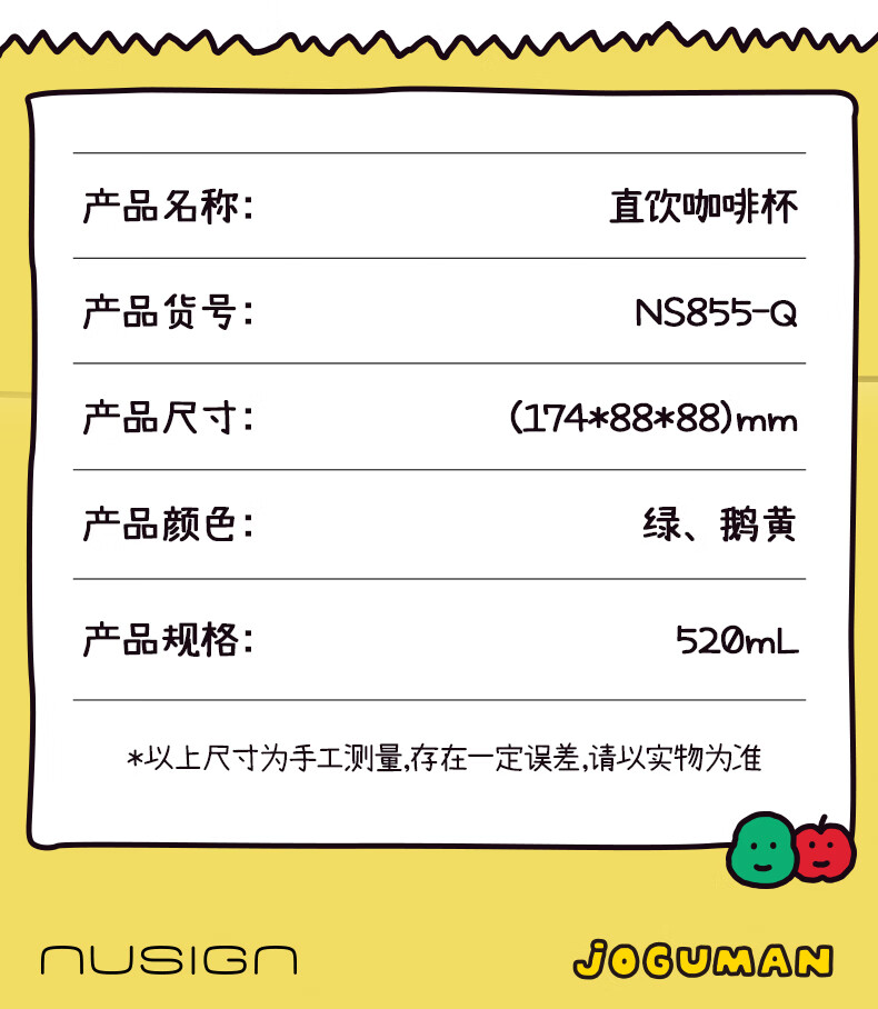 纽赛(NUSIGN)【乔古漫联名】nusign纽赛乔古曼得力直饮咖啡杯保温杯水杯杯子 鹅黄520ml