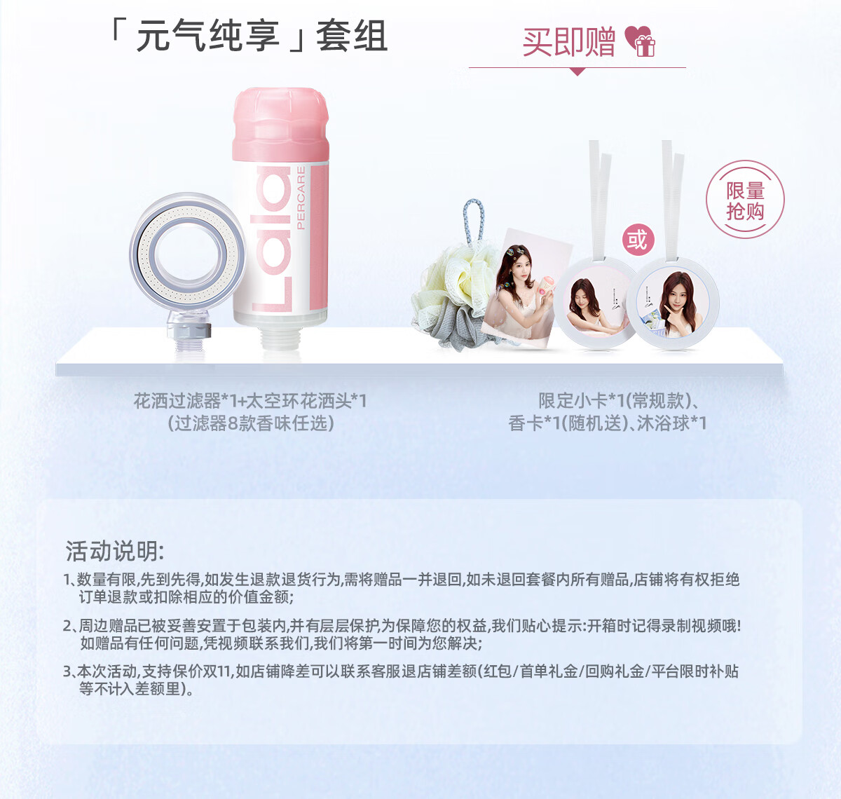 娜拉之夏(LALAPERCARE)袁一琦同款专属「元气纯享」净水养肤花洒过滤除氯香氛套组 「元气纯享」玫瑰滤芯+太空环花洒头