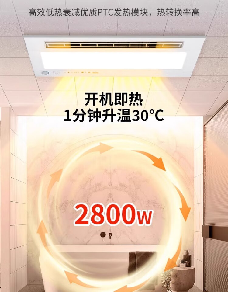 拉伯塔包安装风暖浴霸灯300x600集成吊顶厕所卫生间浴室专用照明扣板灯 【2800W双核款】琴键开关 【包安装】全光谱照明