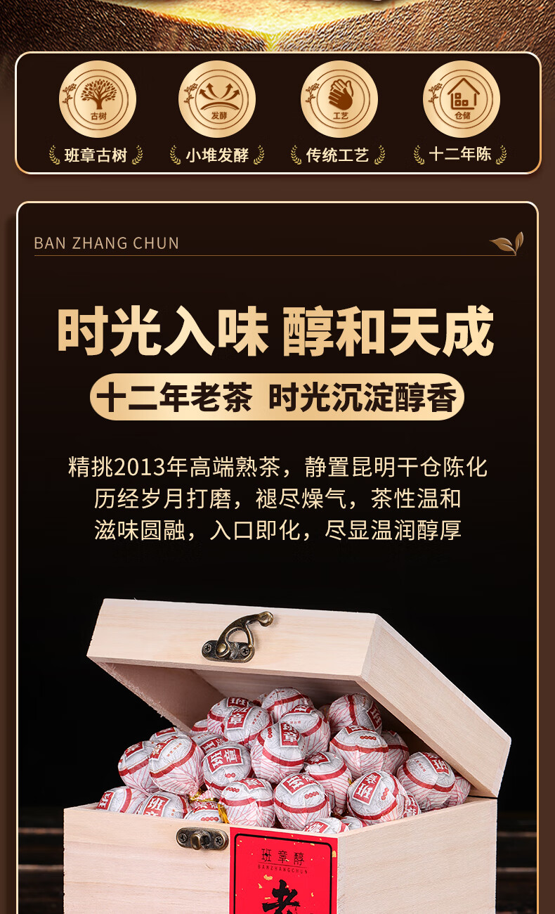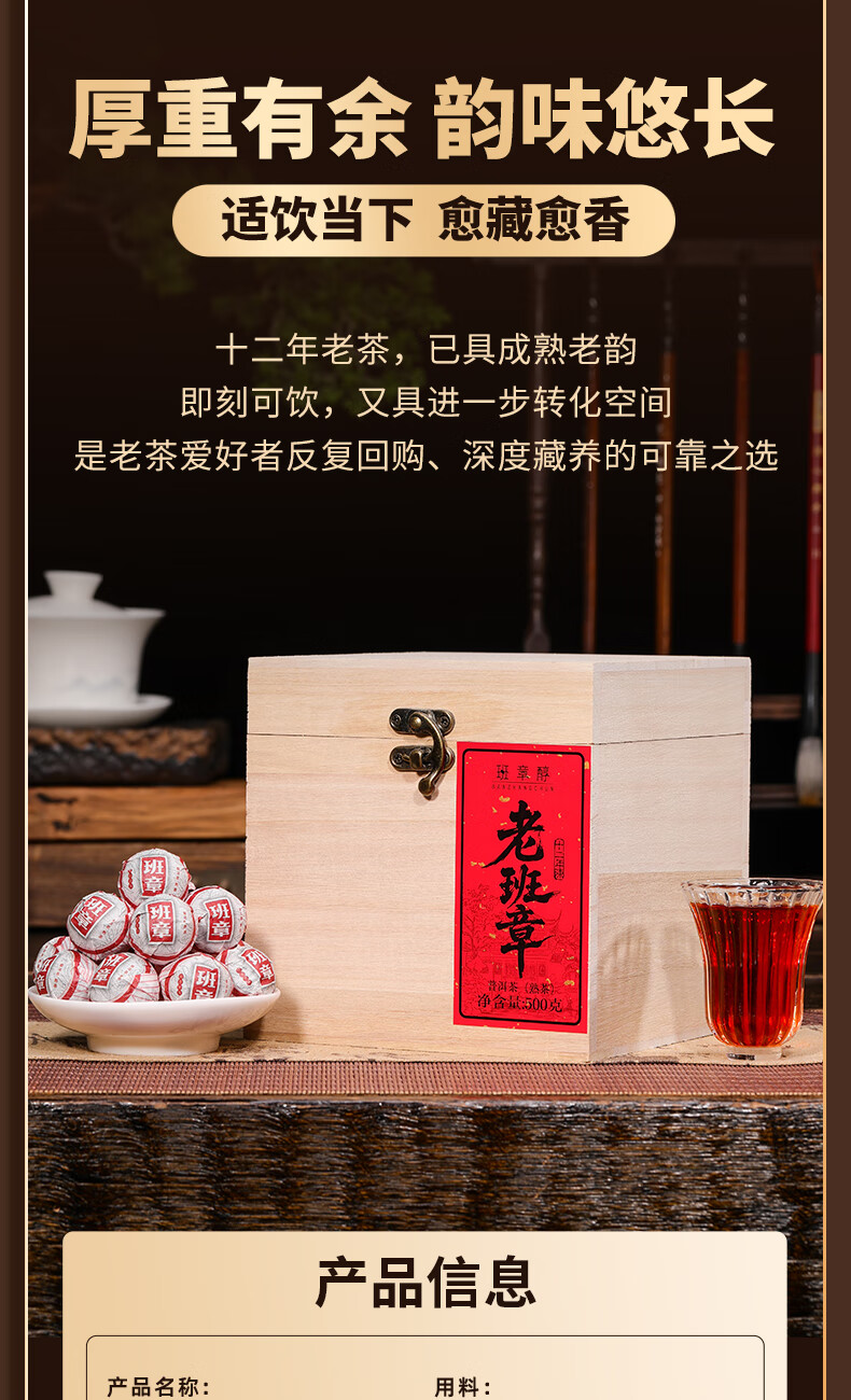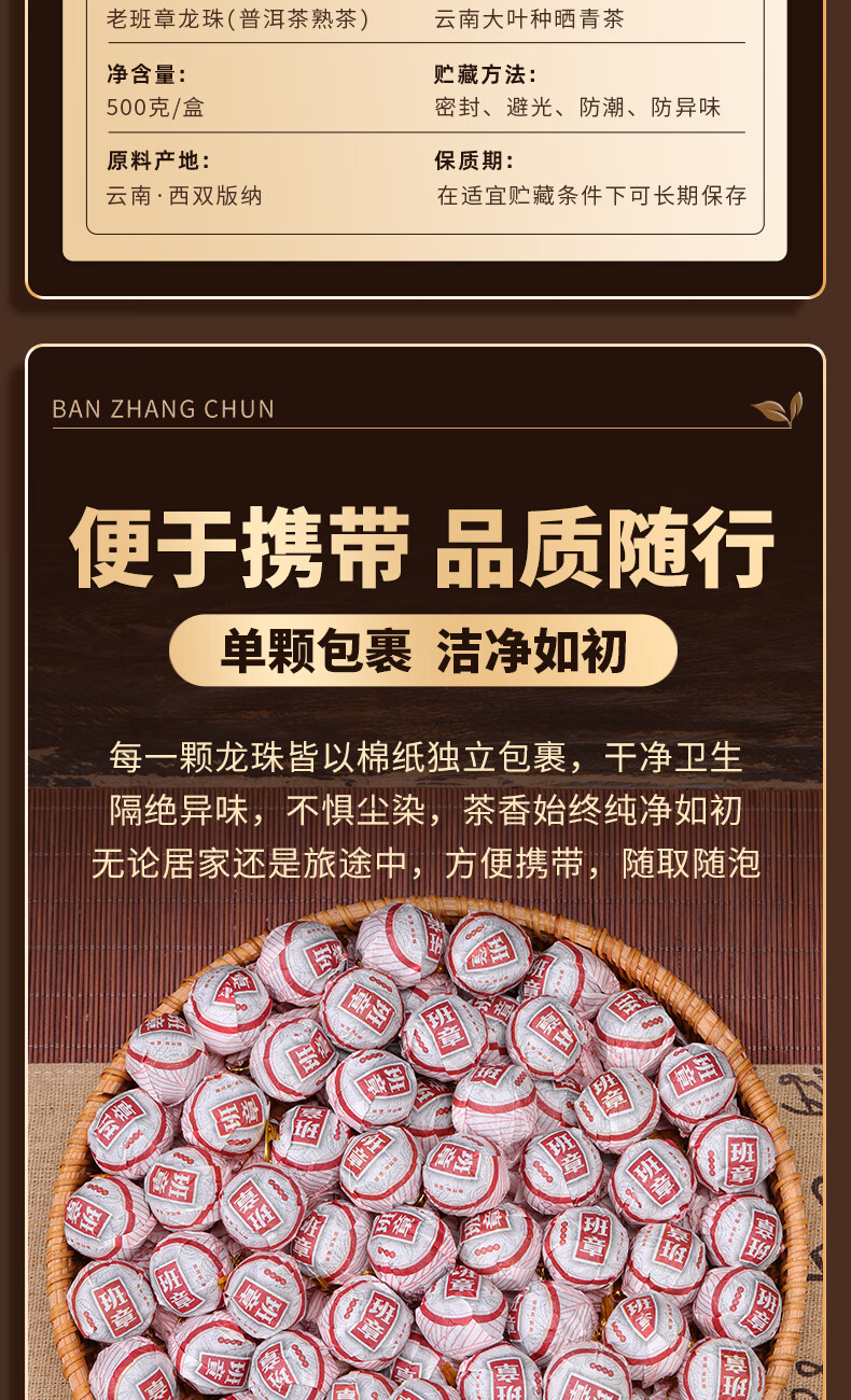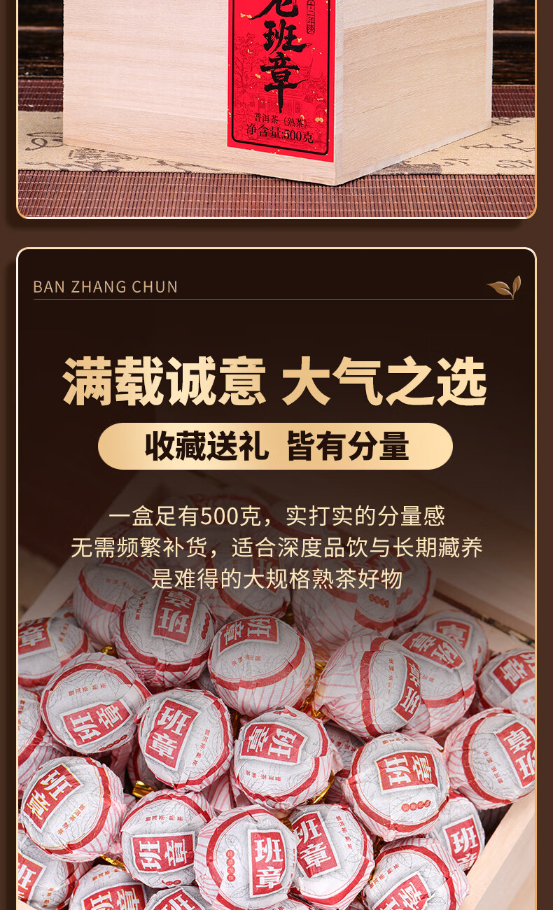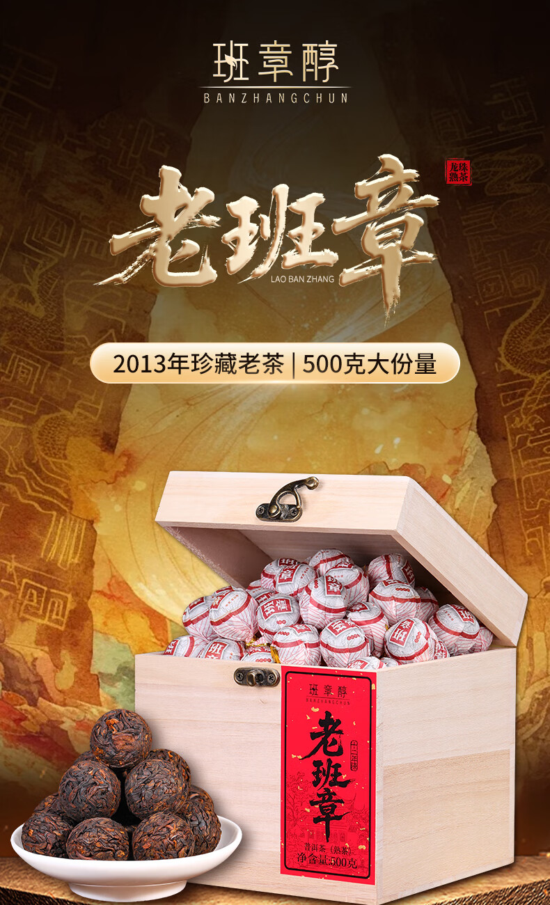 班章醇茶叶普洱茶熟茶陈年老班章云南古树茶龙珠小沱茶500g源头直发