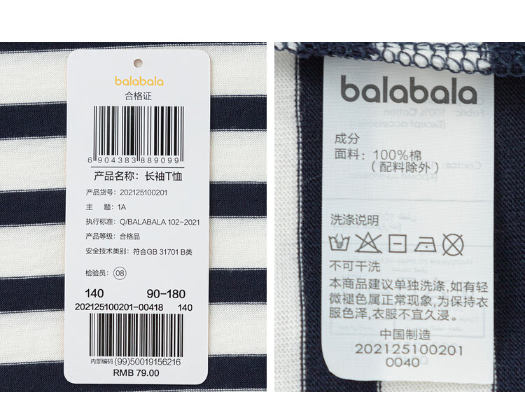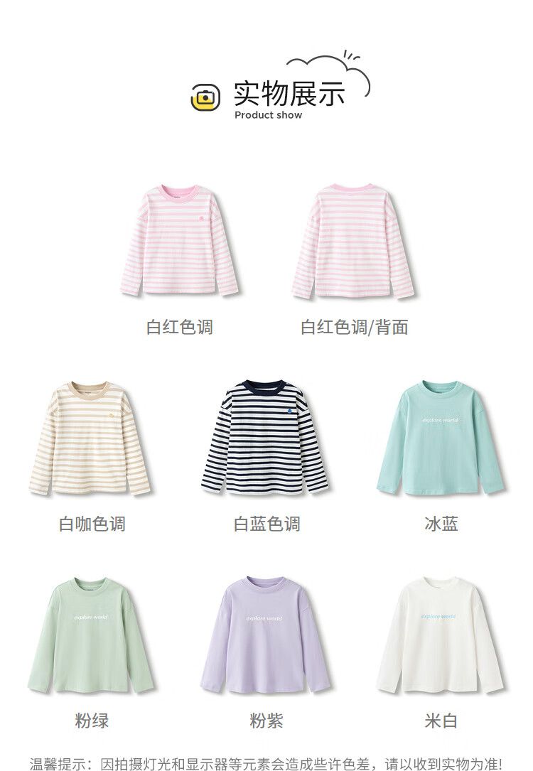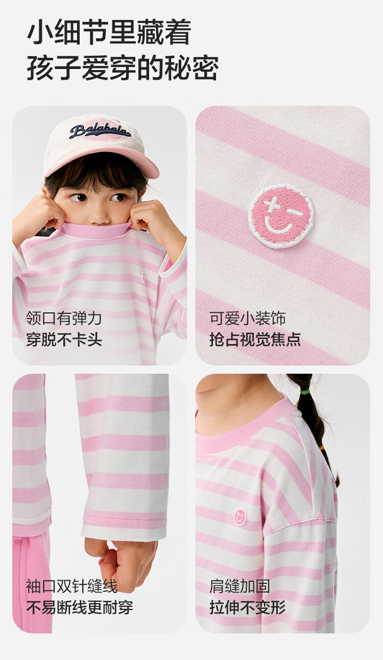 巴拉巴拉长袖t恤男女童2025款春儿童打底衫条纹T【商场同款】202125100201