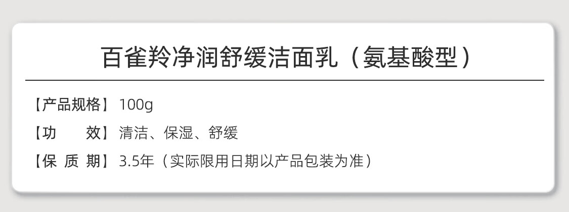 百雀羚(PECHOIN)净润舒缓洁面乳(氨基酸型)100G清洁敏肌买一送一品质国货