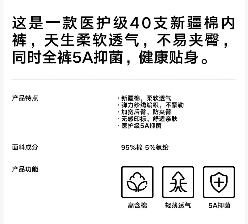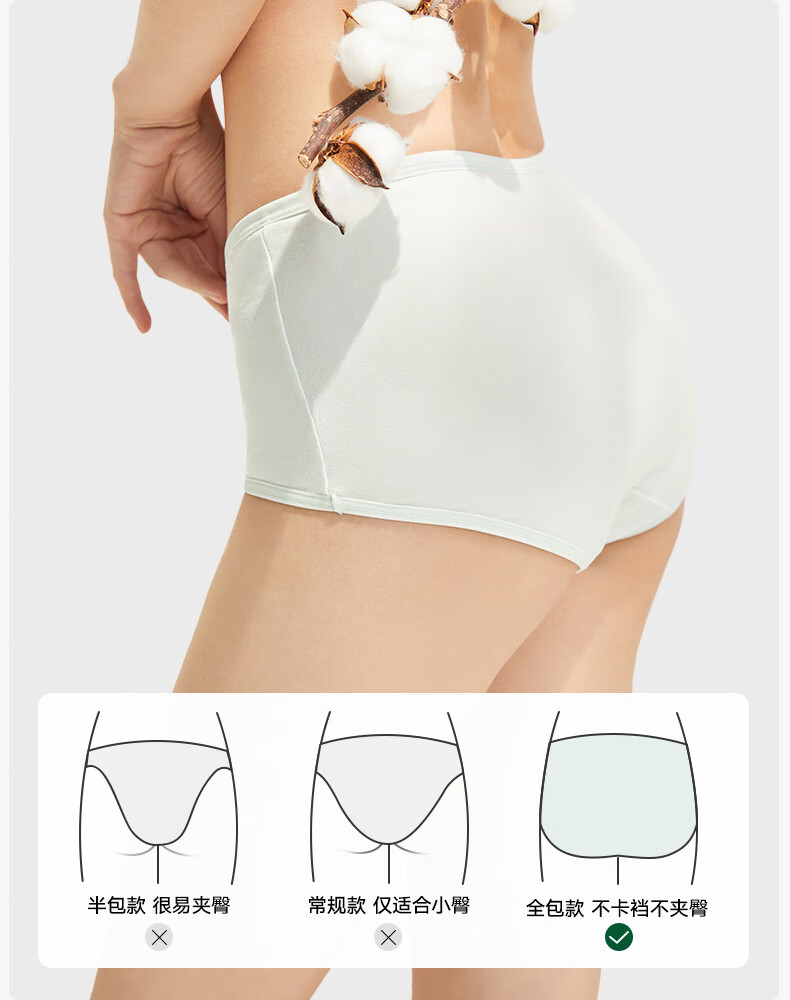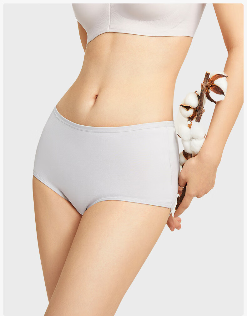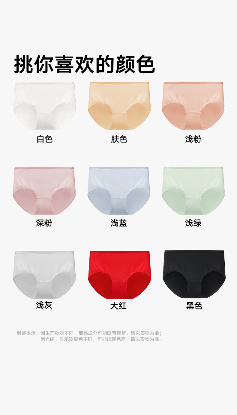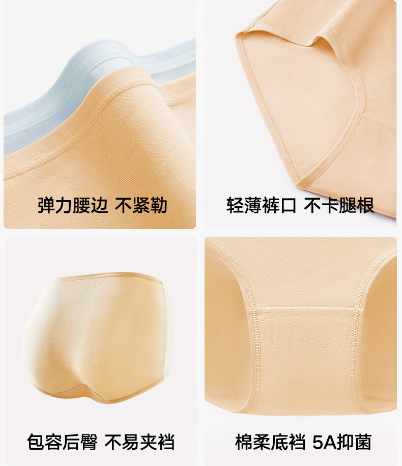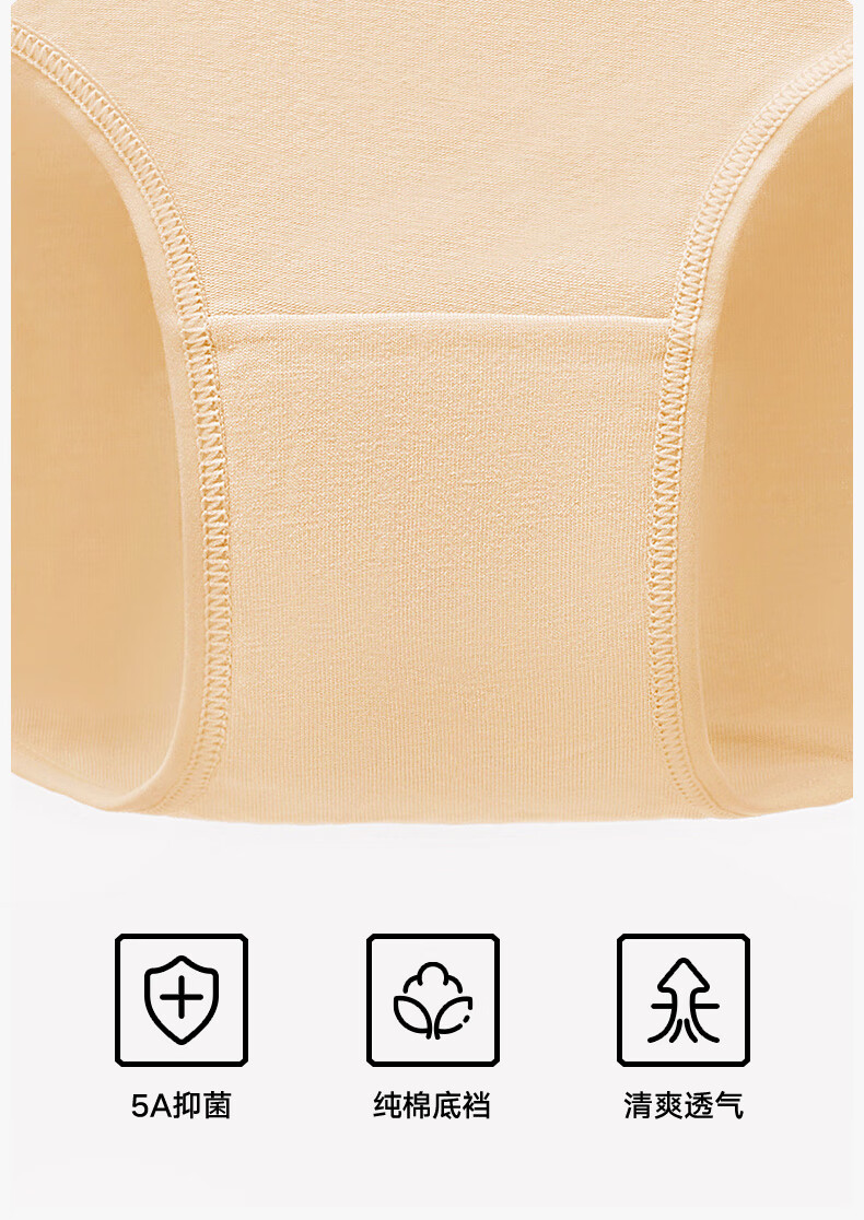 松山棉店商场同款新疆棉中腰女士三角内裤3条装肤色+浅粉+深粉L