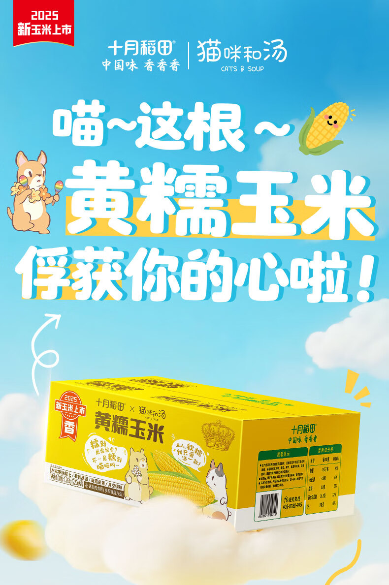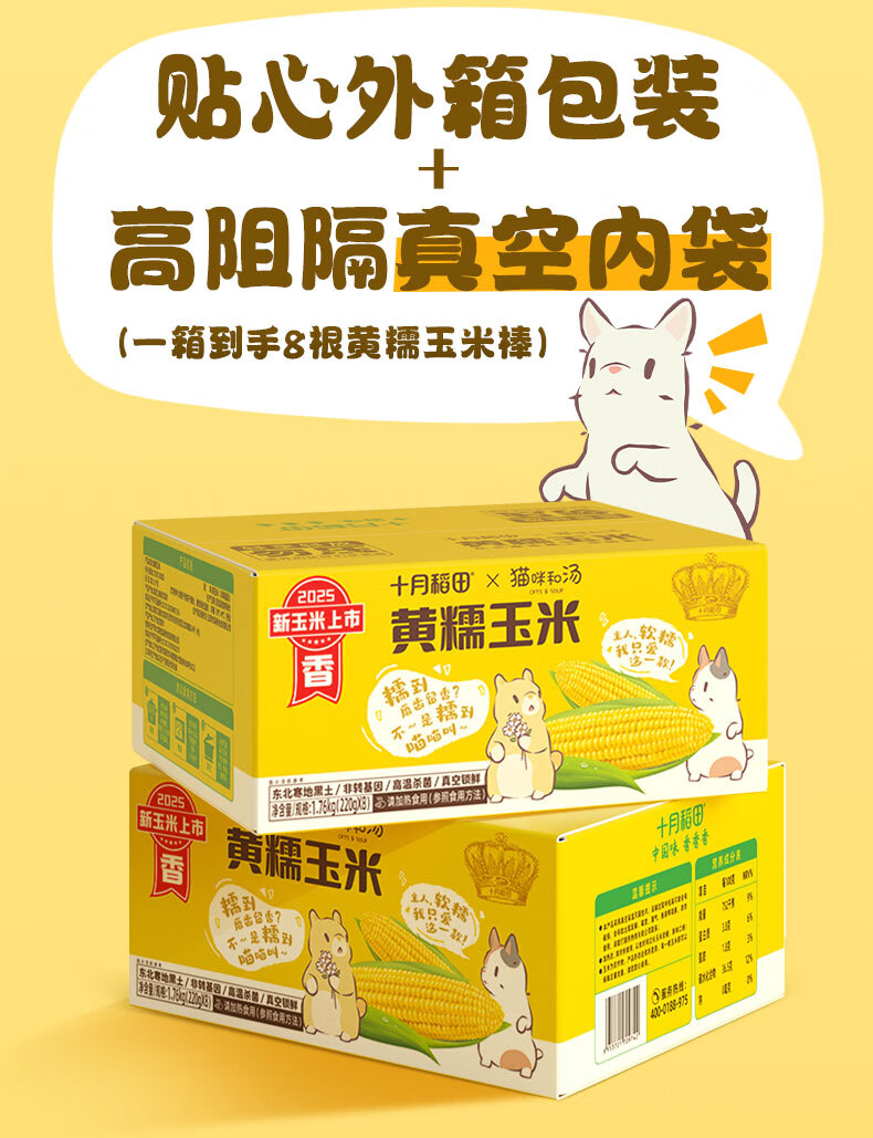 十月稻田【2025年新玉米】黄糯玉米 限定联名装 香甜软糯 东北黏苞米 黄糯玉米1.76kg