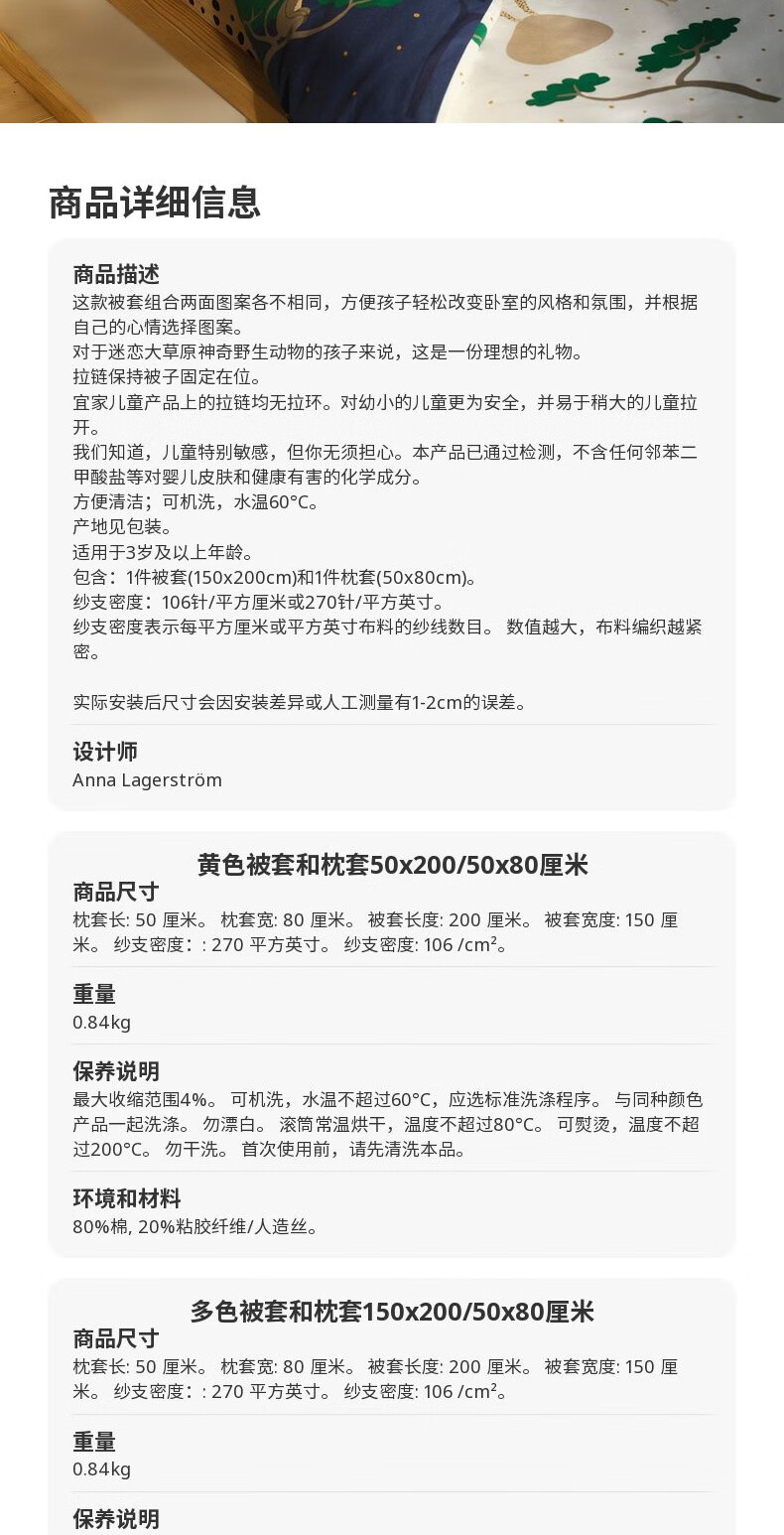 宜家(IKEA)【新品】SANDLOPARE桑罗帕瑞被套枕套婴儿被子家用可机洗 被套和枕套黄色150x200cm