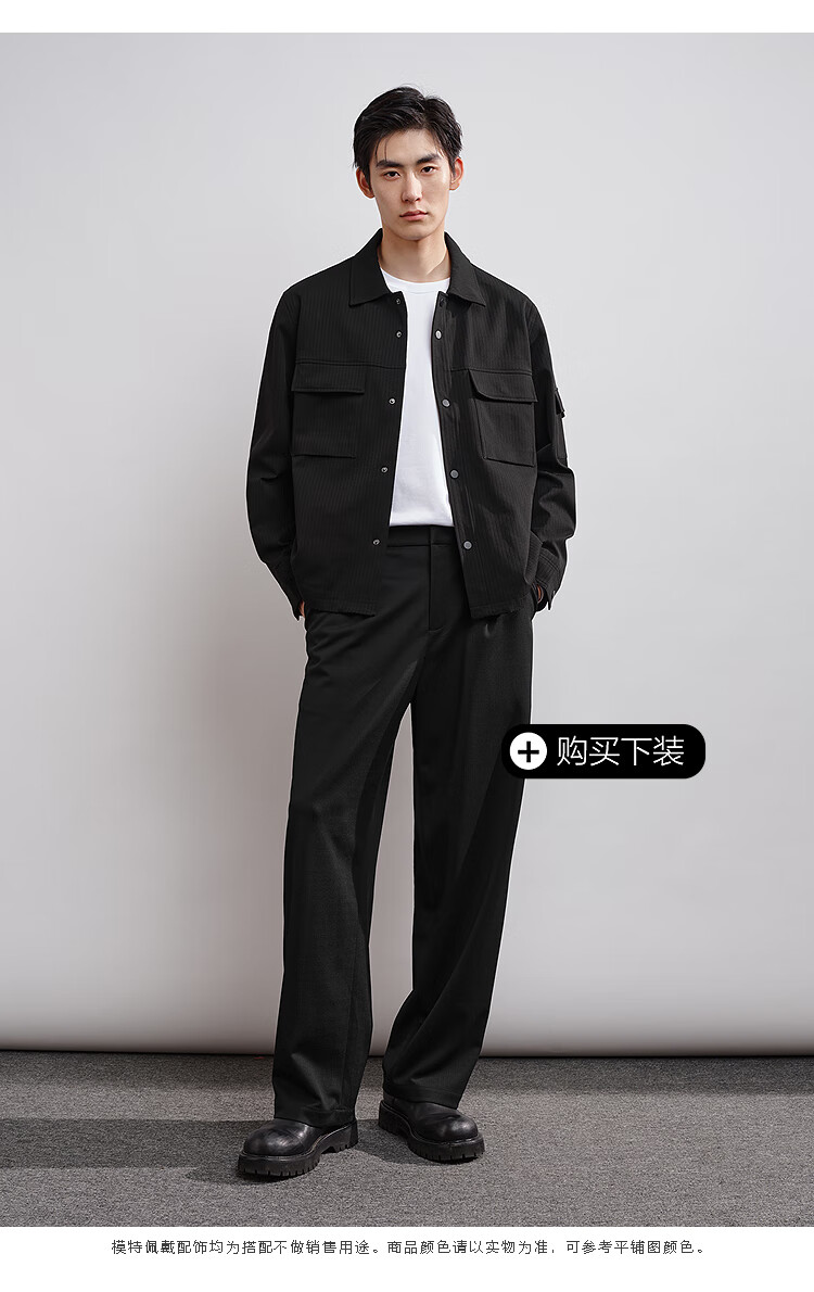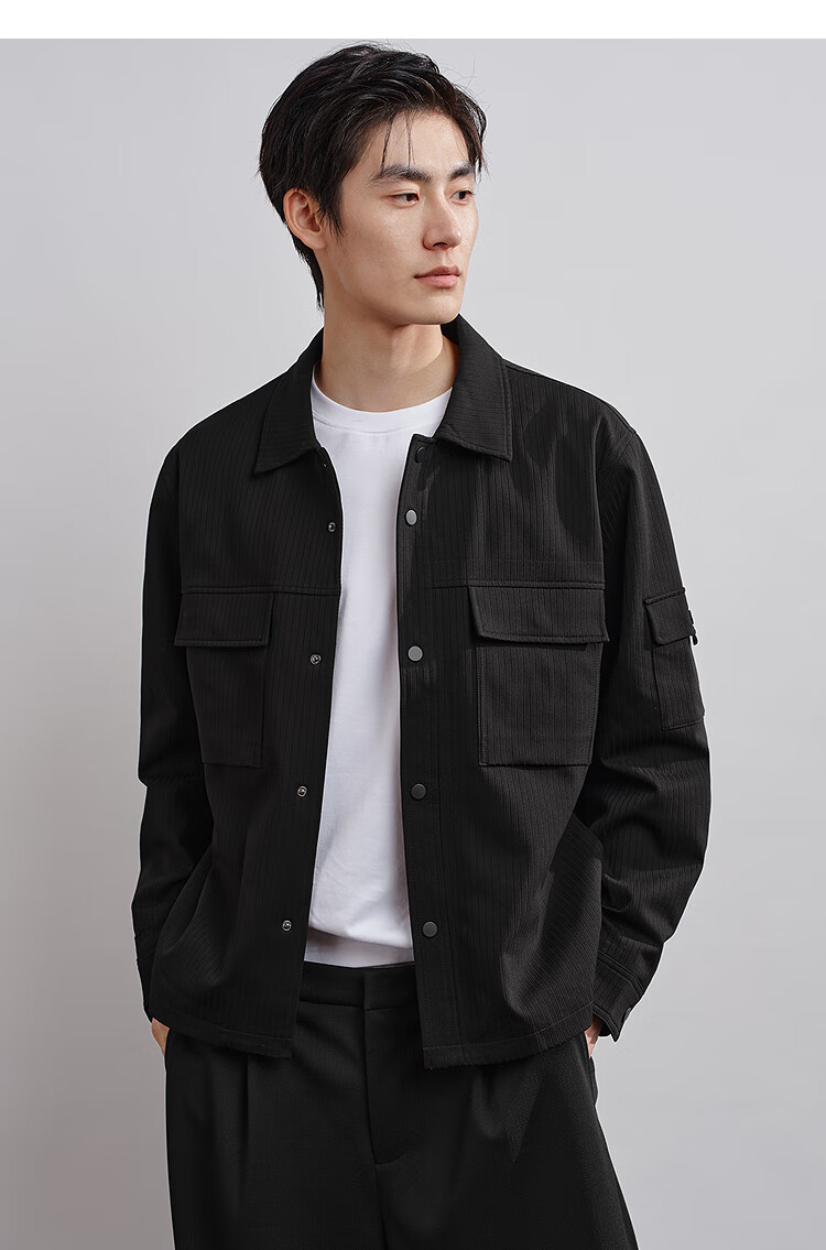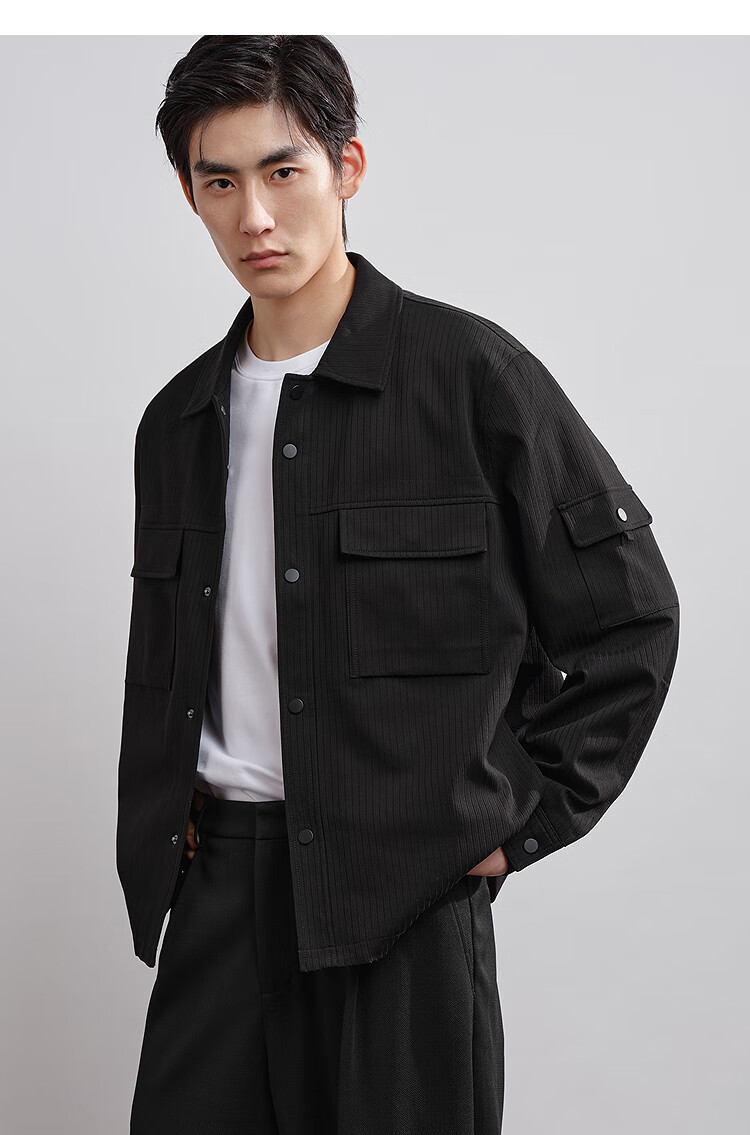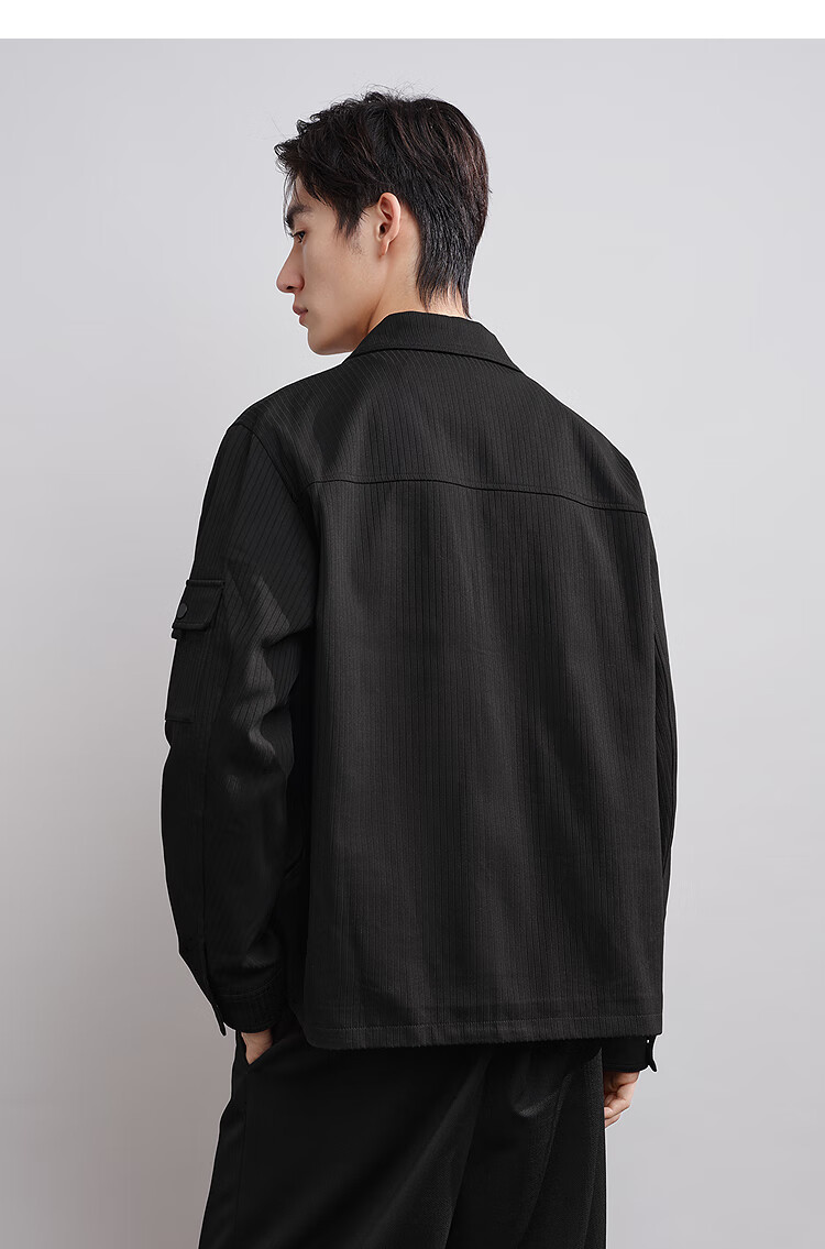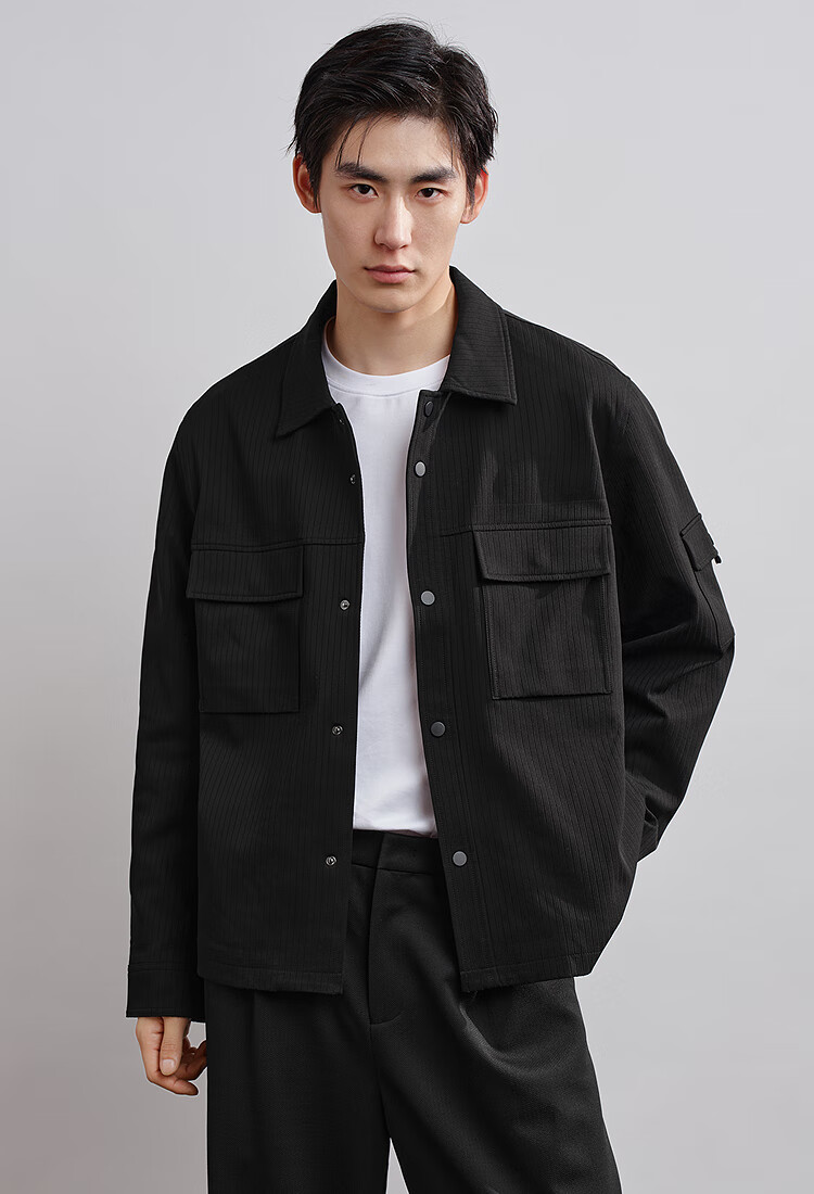 太平鸟男装夹克立体肌理感秋宽松翻领茄克时尚行政外套 黑色1 XL