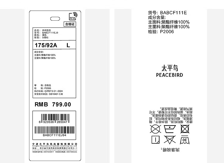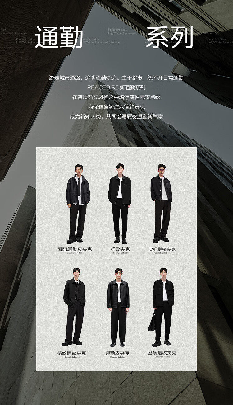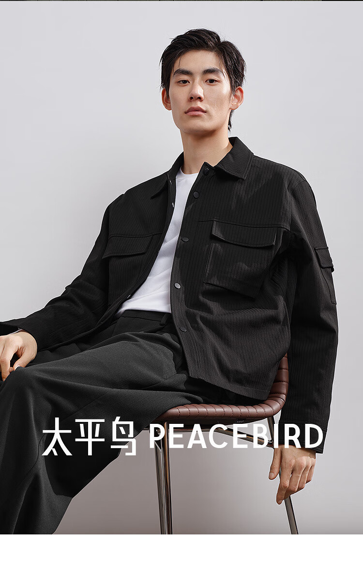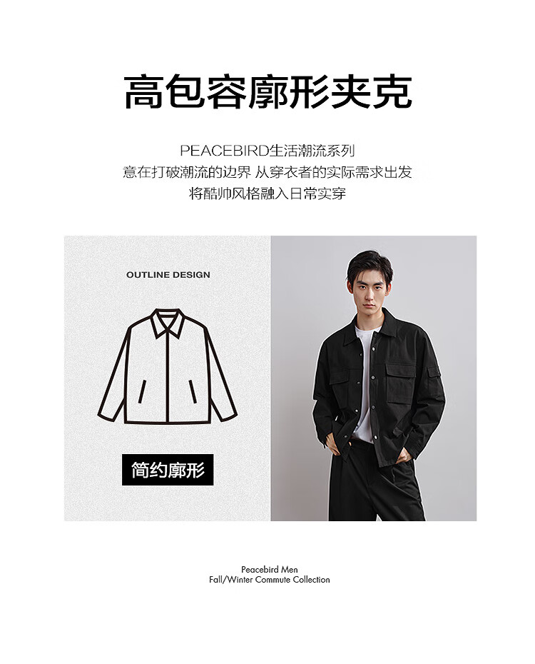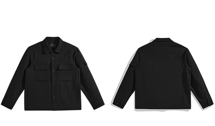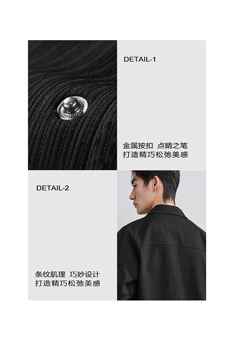 太平鸟男装夹克立体肌理感秋宽松翻领茄克时尚行政外套 黑色1 XL