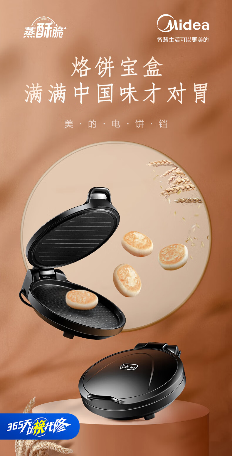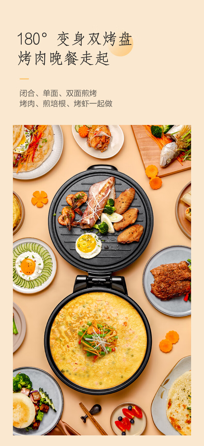 美的(Midea)电饼铛电饼档家庭用双面加热加大加深烤盘大尺寸上下盘电煎烤烙饼专用锅薄饼早餐机电饼铛子烙饼锅 【1200W 上下独立加热】JHN30F