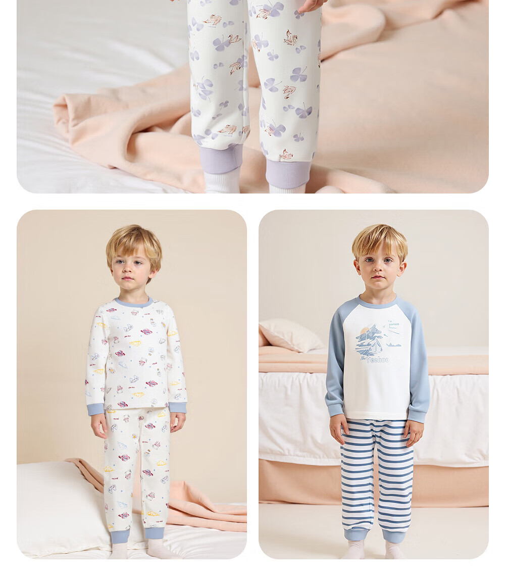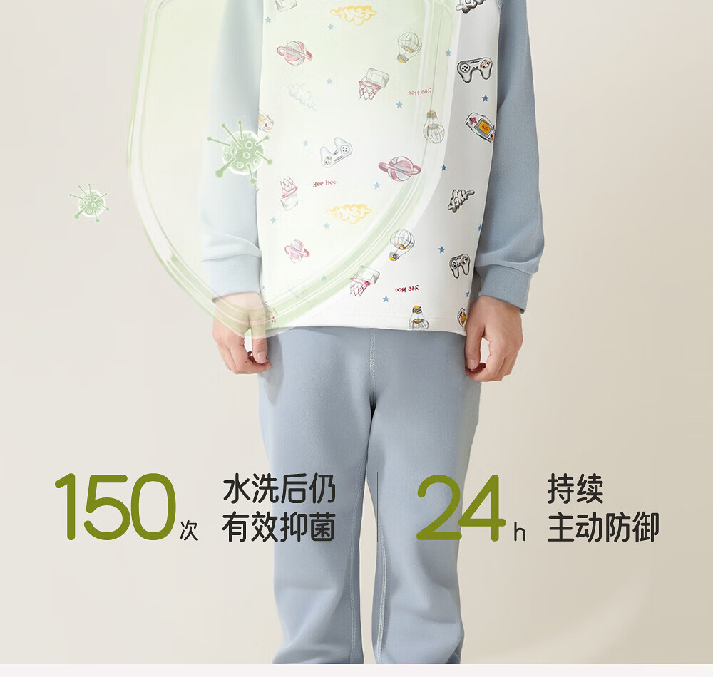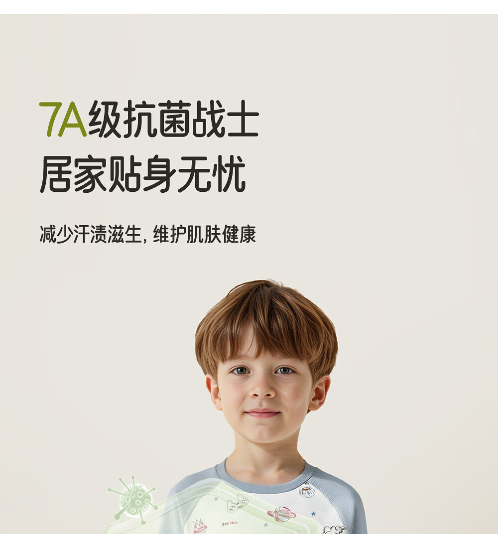 英氏(YEEHOO)居家服儿童套装7A级全身抑菌40S精梳棉A类睡衣秋衣秋裤家居服