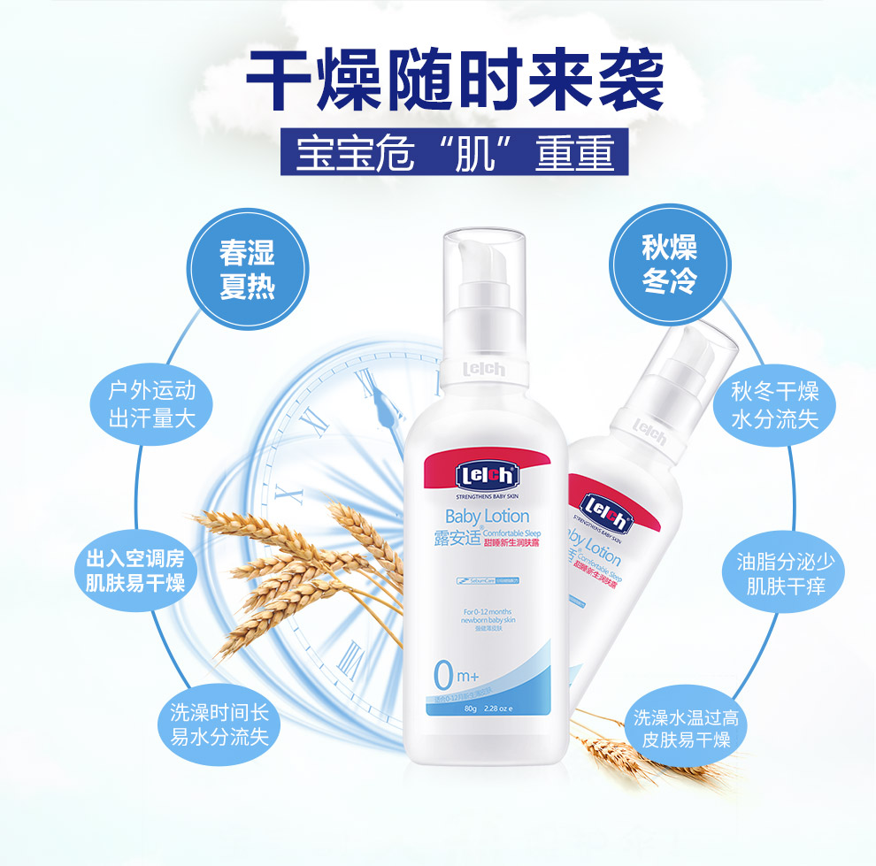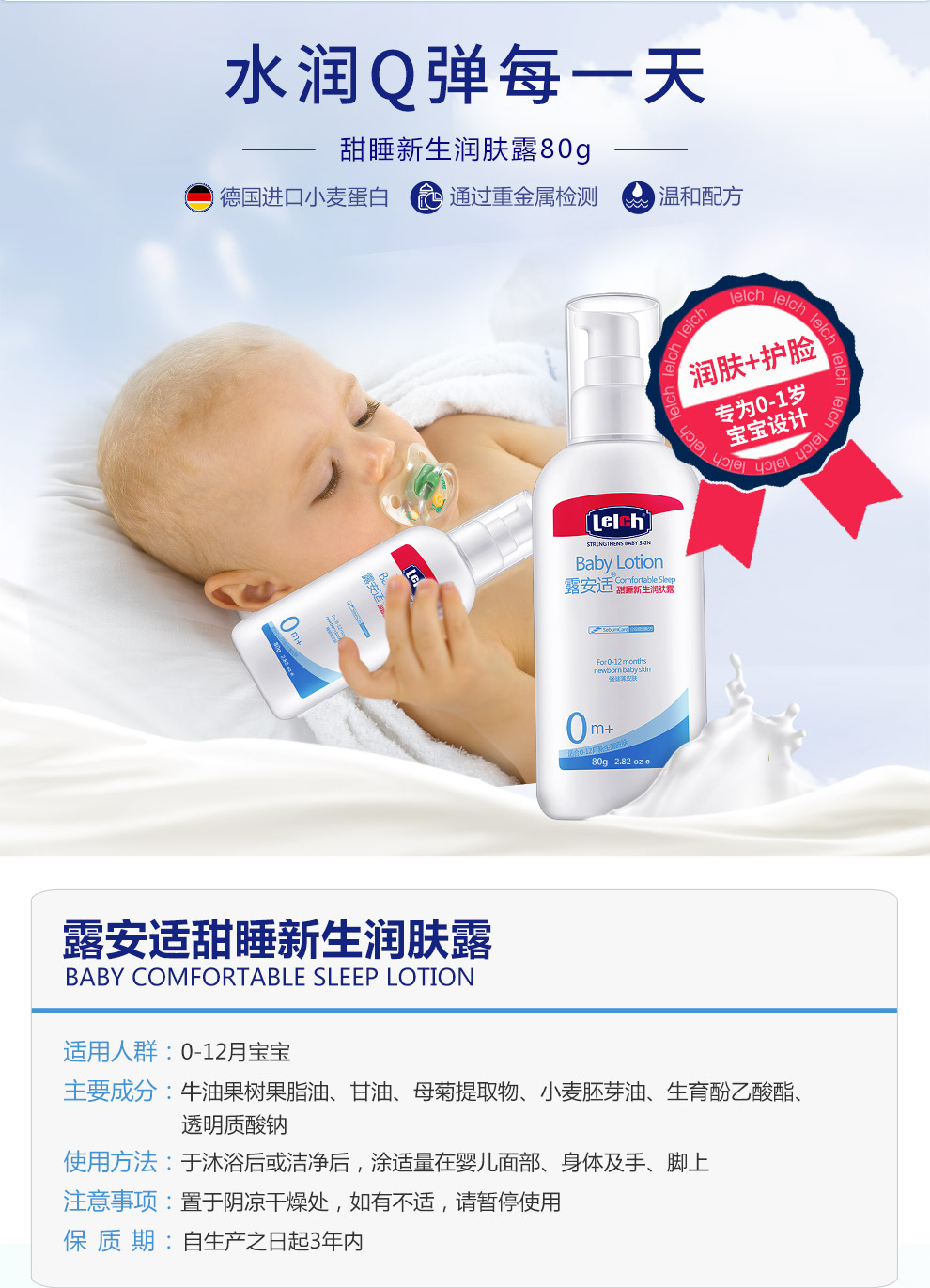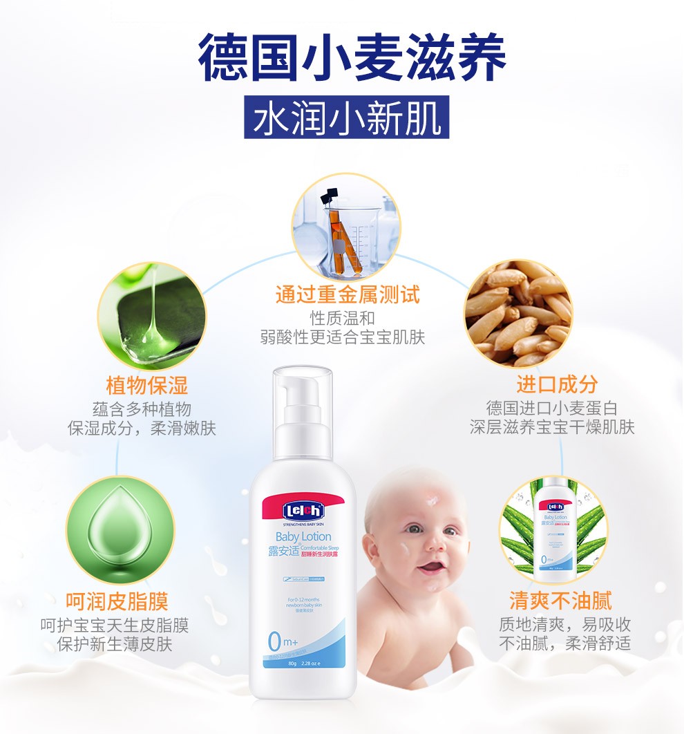 露安适(Lelch)润肤乳 儿童润肤乳 身体乳 保湿滋润 身体乳 初生安护润肤乳 0岁以上 80g