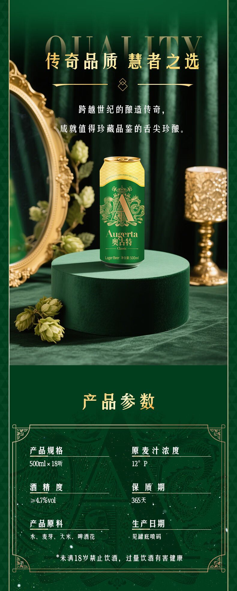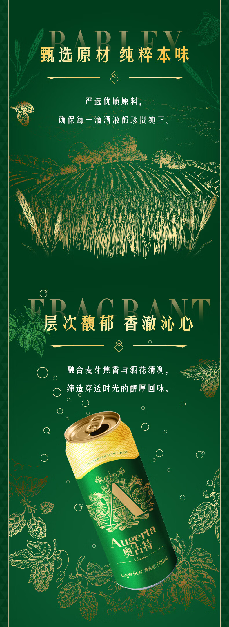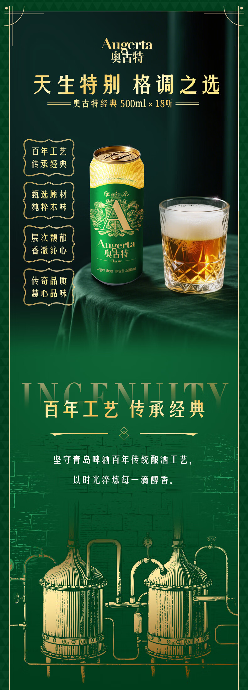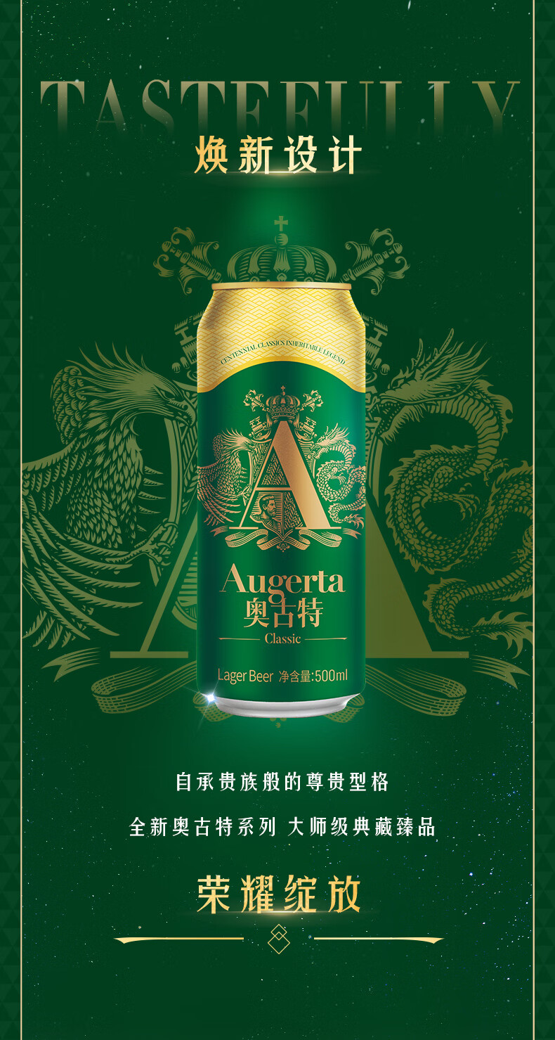 奥古特(Augerta)高端酿造 奥古特经典啤酒原麦汁浓度12°P 大罐整箱 500mL 18罐
