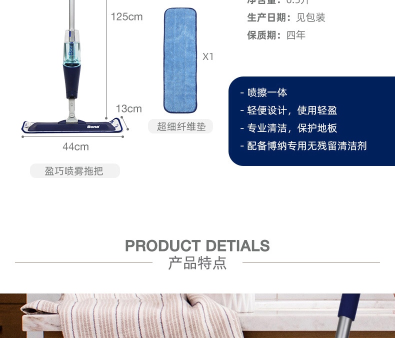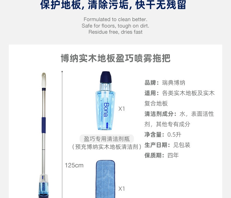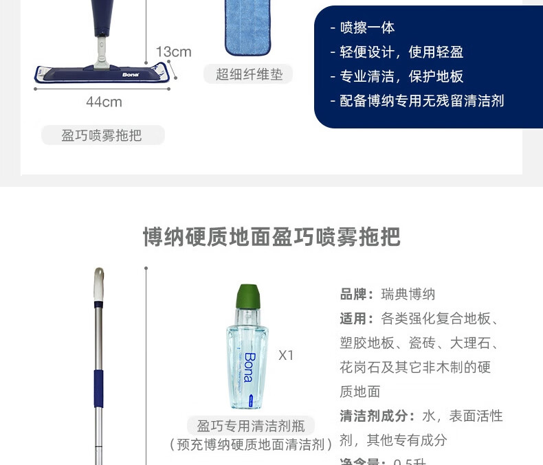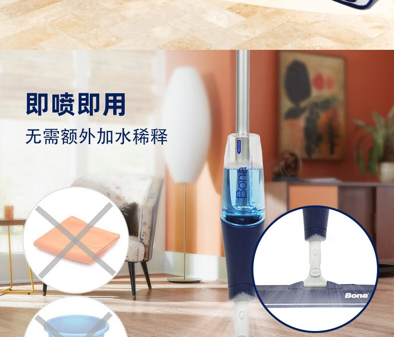 博纳(BONA)盈巧喷雾拖把实木地板拖布瓷砖大理石家用一拖净吸水平板喷水拖把 盈巧喷雾拖把(实木地板)
