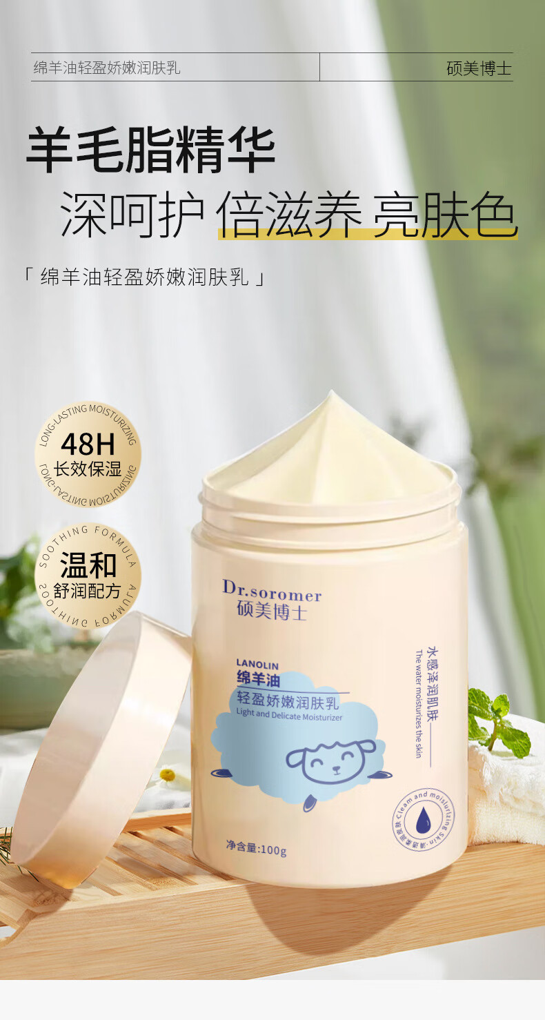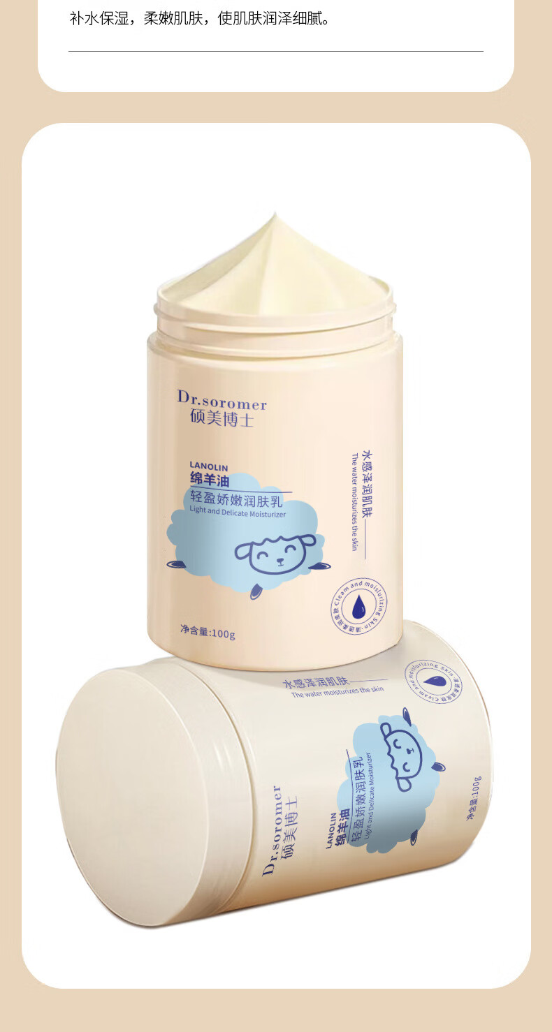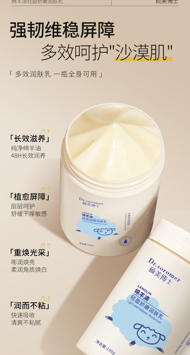 DR.SOROMER绵羊油保湿霜润肤乳身体乳保湿滋润秋冬皮肤干燥止痒清爽不油腻 绵羊油润肤乳100gx4瓶