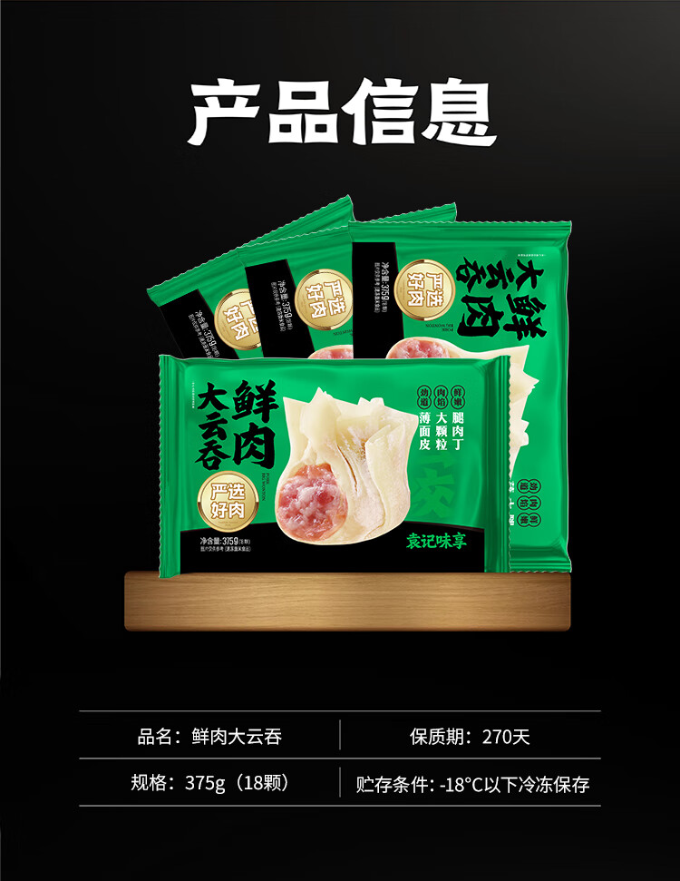 袁记味享【全家福大云吞】马蹄冬菇375g*1+马蹄鲜肉*1+鲜肉*1+玉米鲜肉*1