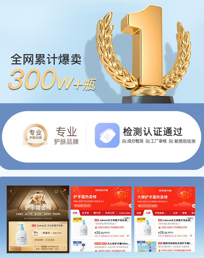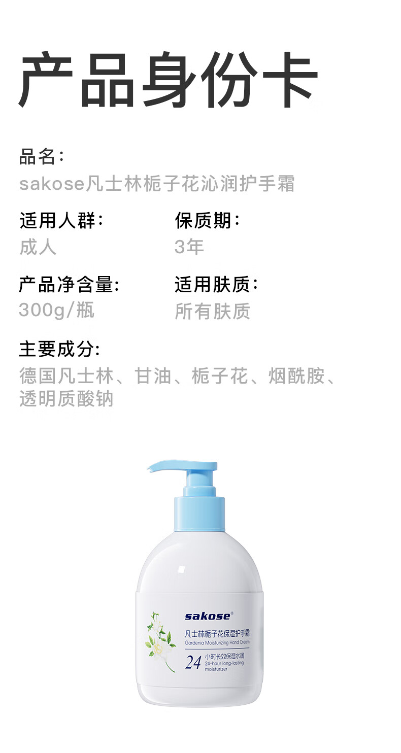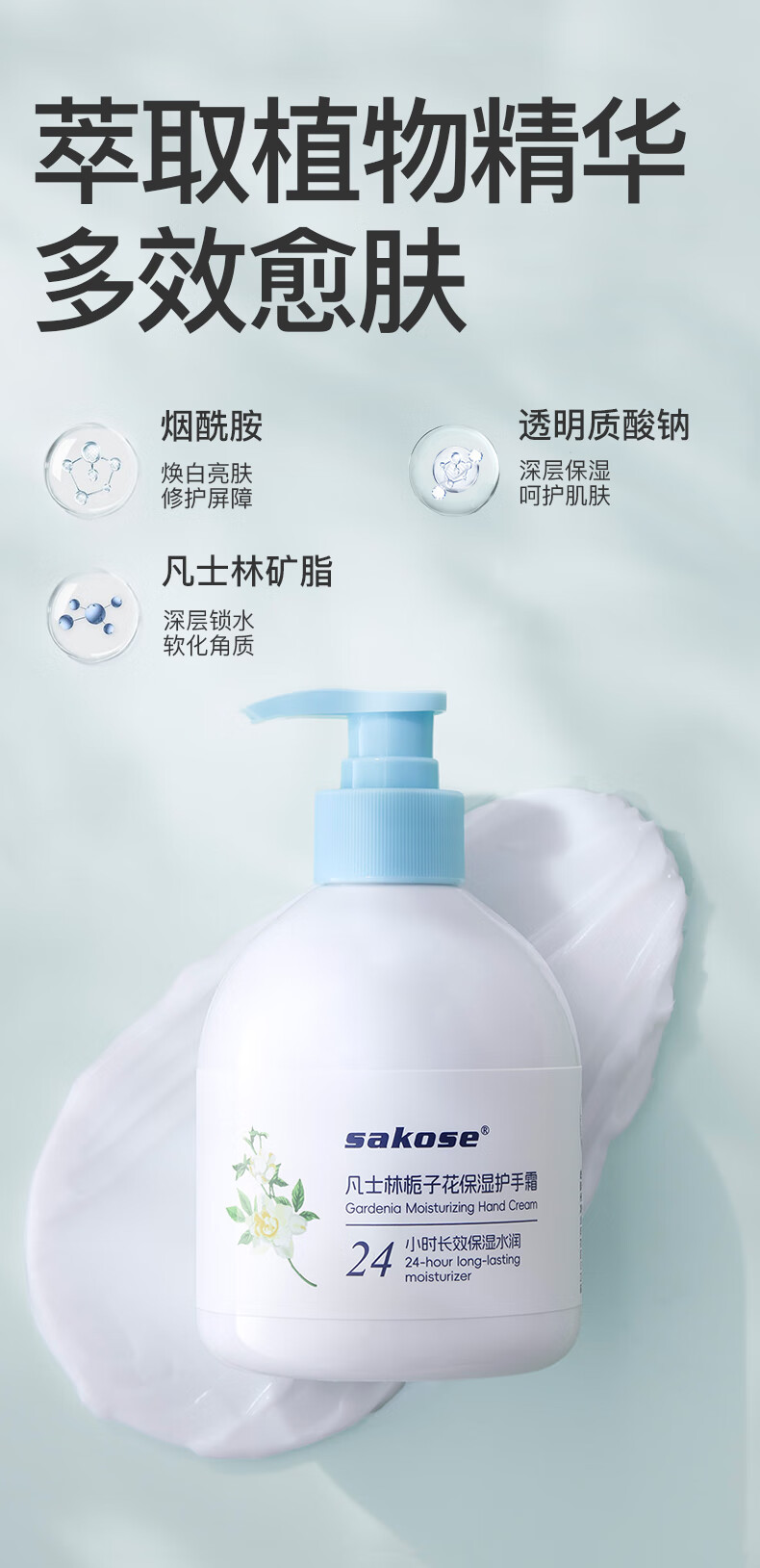 sakose凡士林栀子花沁润护手霜300g秋冬专用保湿滋润不油防干裂改善粗糙
