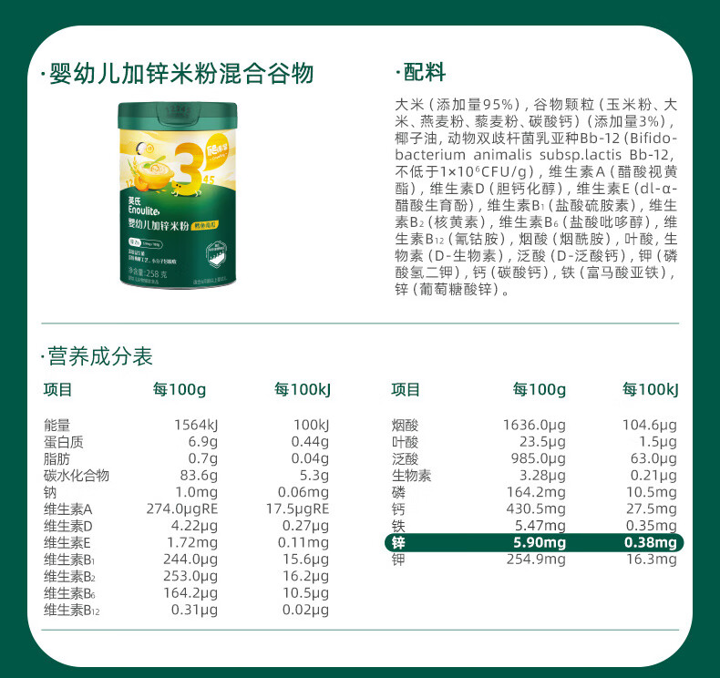 英氏婴幼儿米粉混合谷物加锌营养米粉258g宝宝辅食营养米糊3阶10月龄+