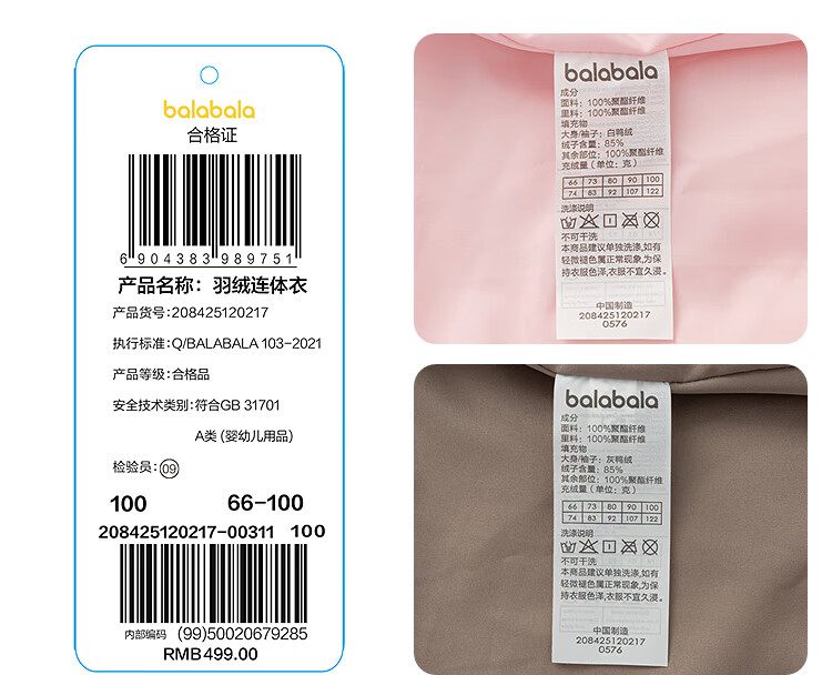 巴拉巴拉童装婴儿羽绒服连体衣2025宝宝冬装加厚保暖哈衣爬服208425120217