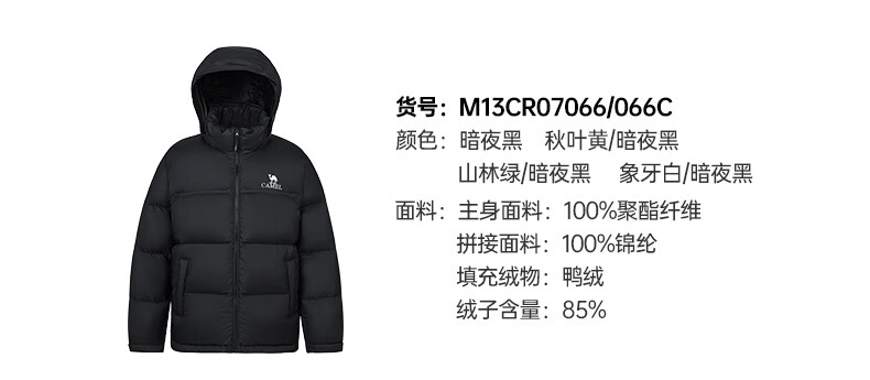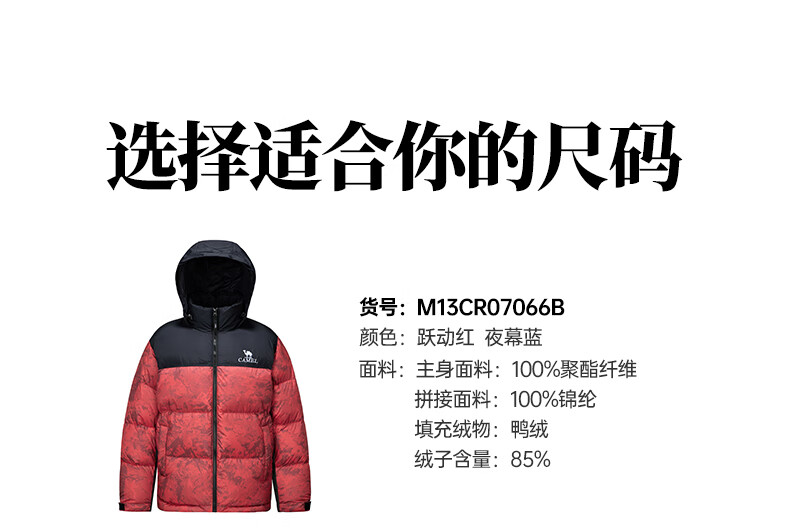 骆驼火山羽绒服2.0王俊凯同款城市轻户外加厚保暖外套冬季M13CR07066B