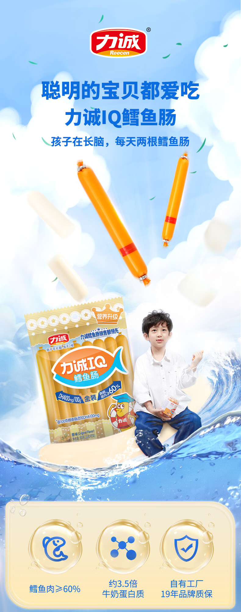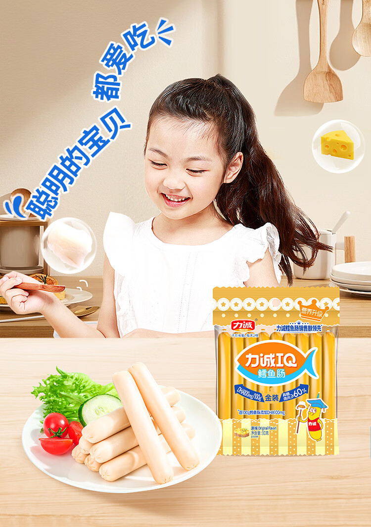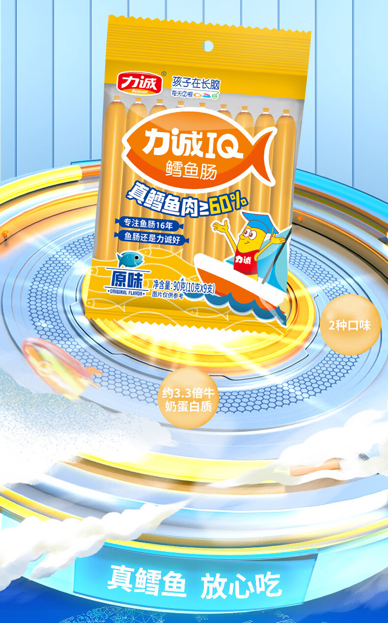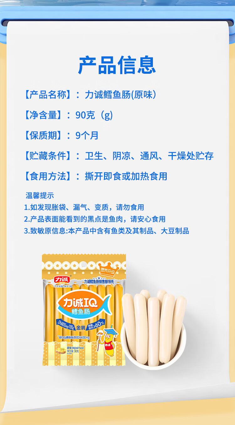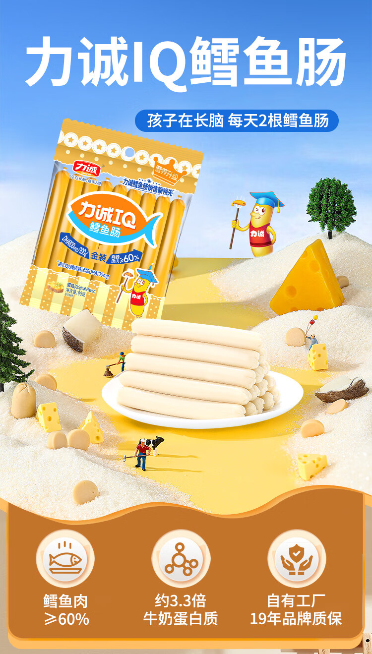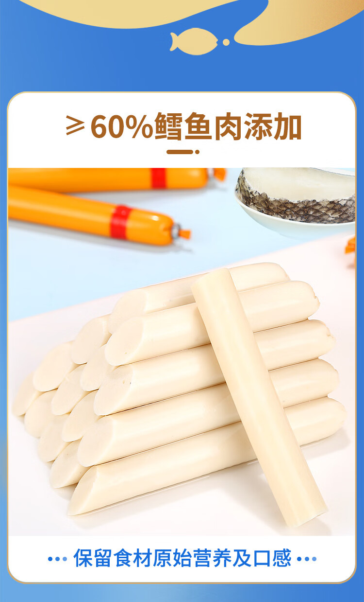力诚 休闲零食鳕鱼肠鱼肉肠营养宝宝儿童海鲜即食海味小香肠火腿肠 【钜划算】金装鳕鱼肠原味80g*4袋