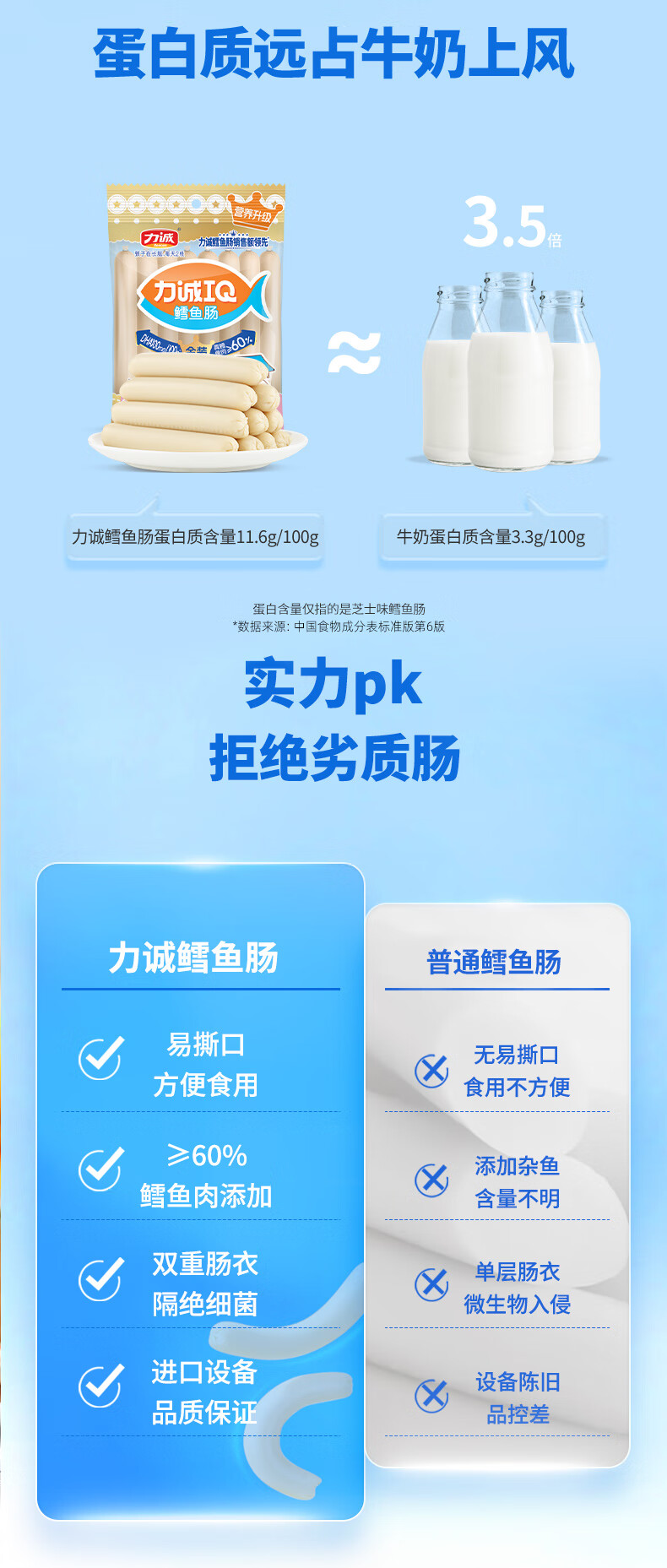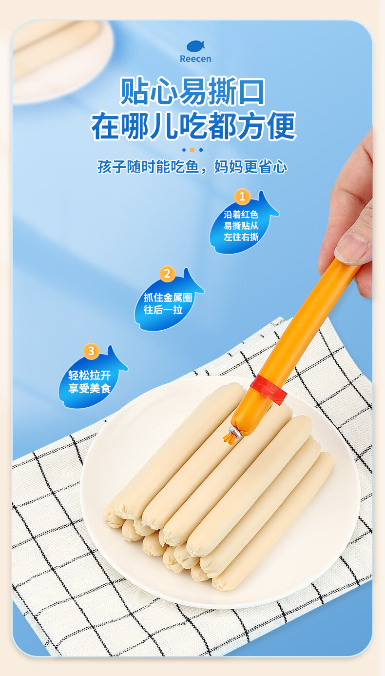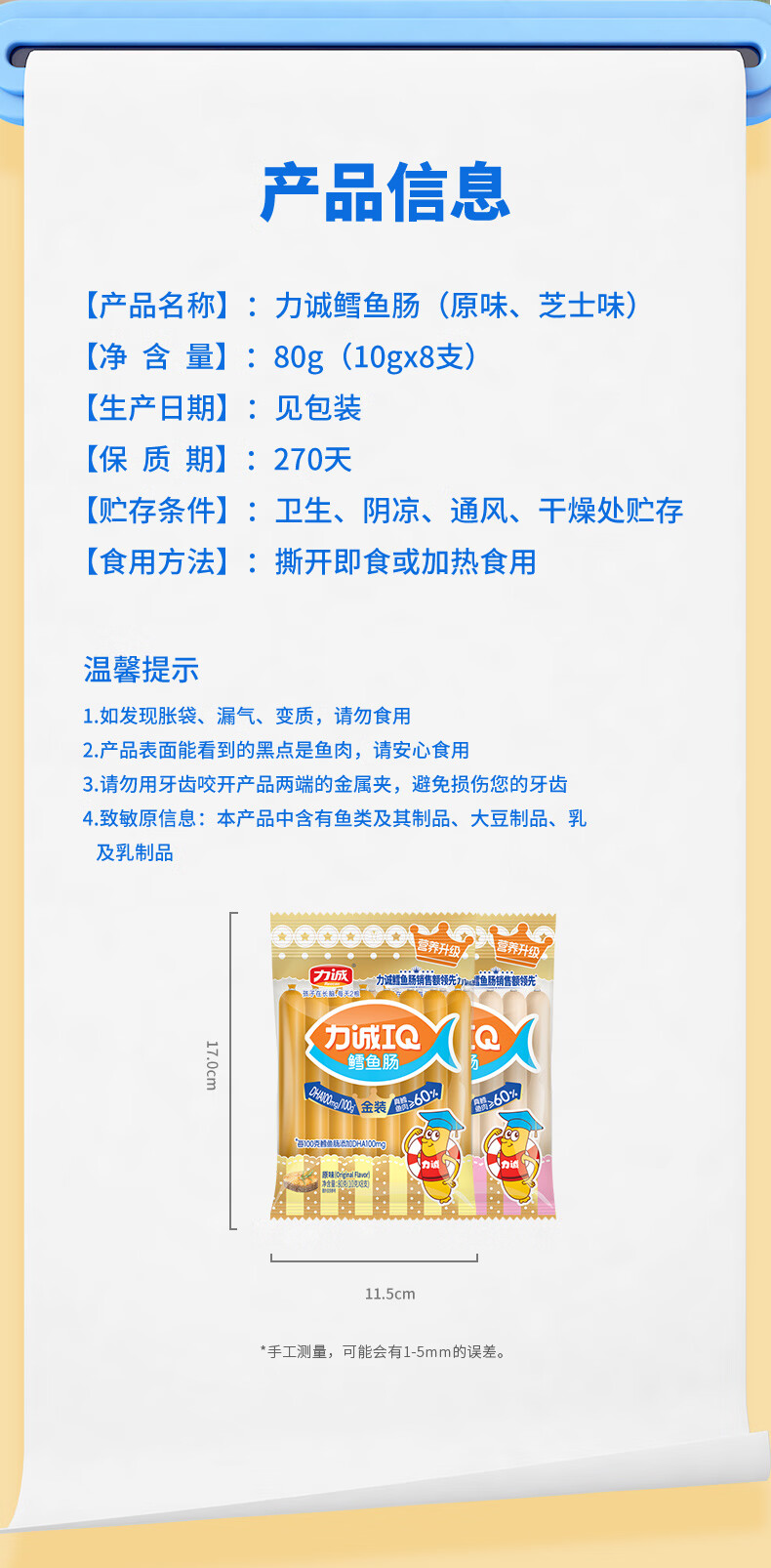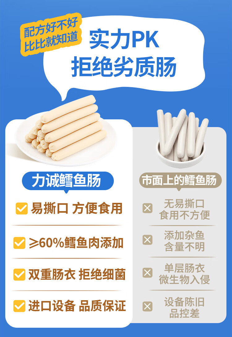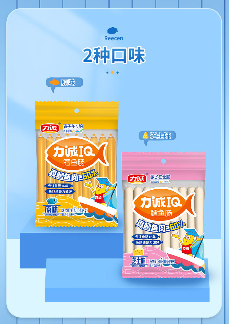 力诚 休闲零食鳕鱼肠鱼肉肠营养宝宝儿童海鲜即食海味小香肠火腿肠 【钜划算】金装鳕鱼肠原味80g*4袋