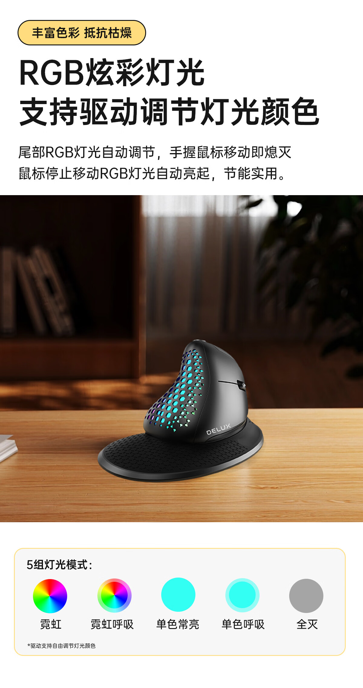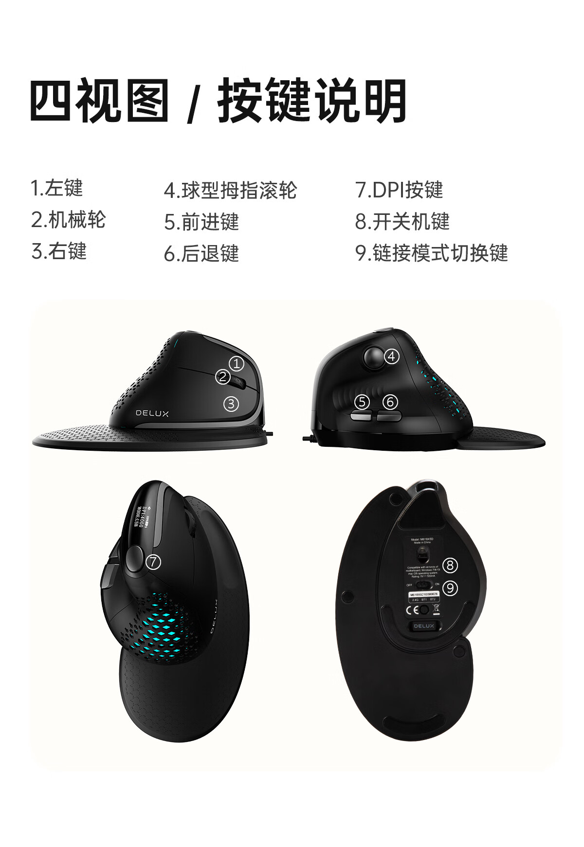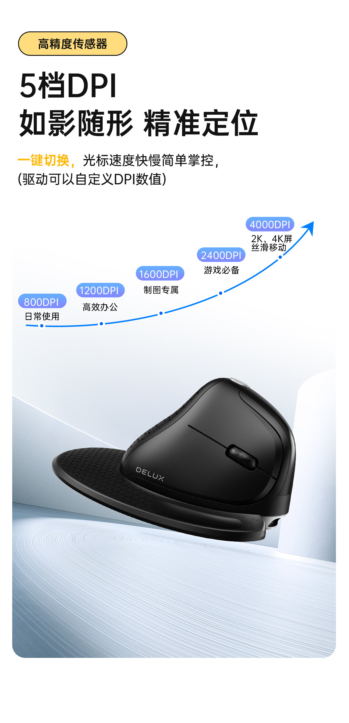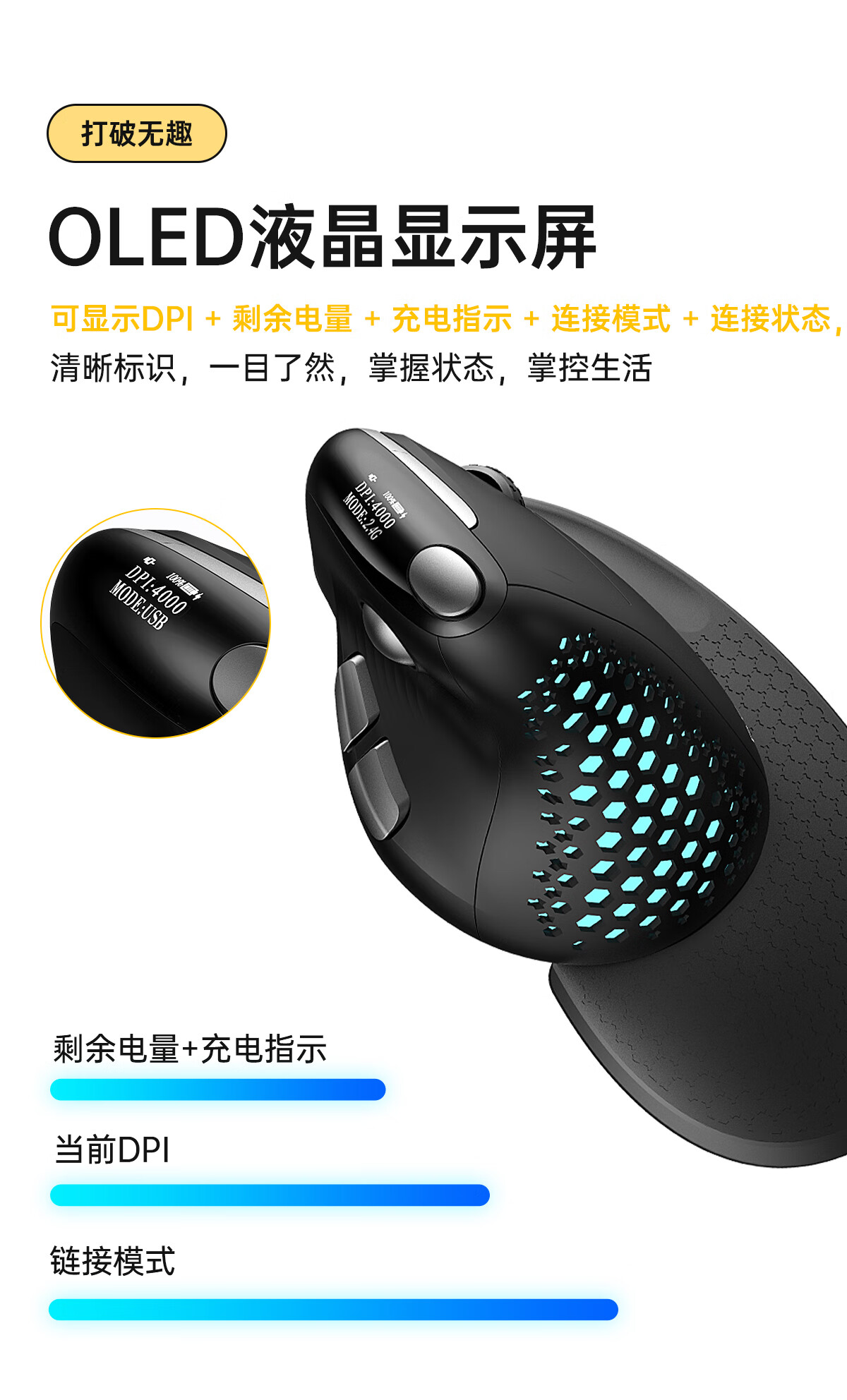 多彩(Delux) M618XSD人体工学无线鼠标立式垂直鼠标带屏显有线蓝牙双模舒适办公适用于联想惠普笔记本台式 M618XSD【无线三模·OLED屏幕】黑