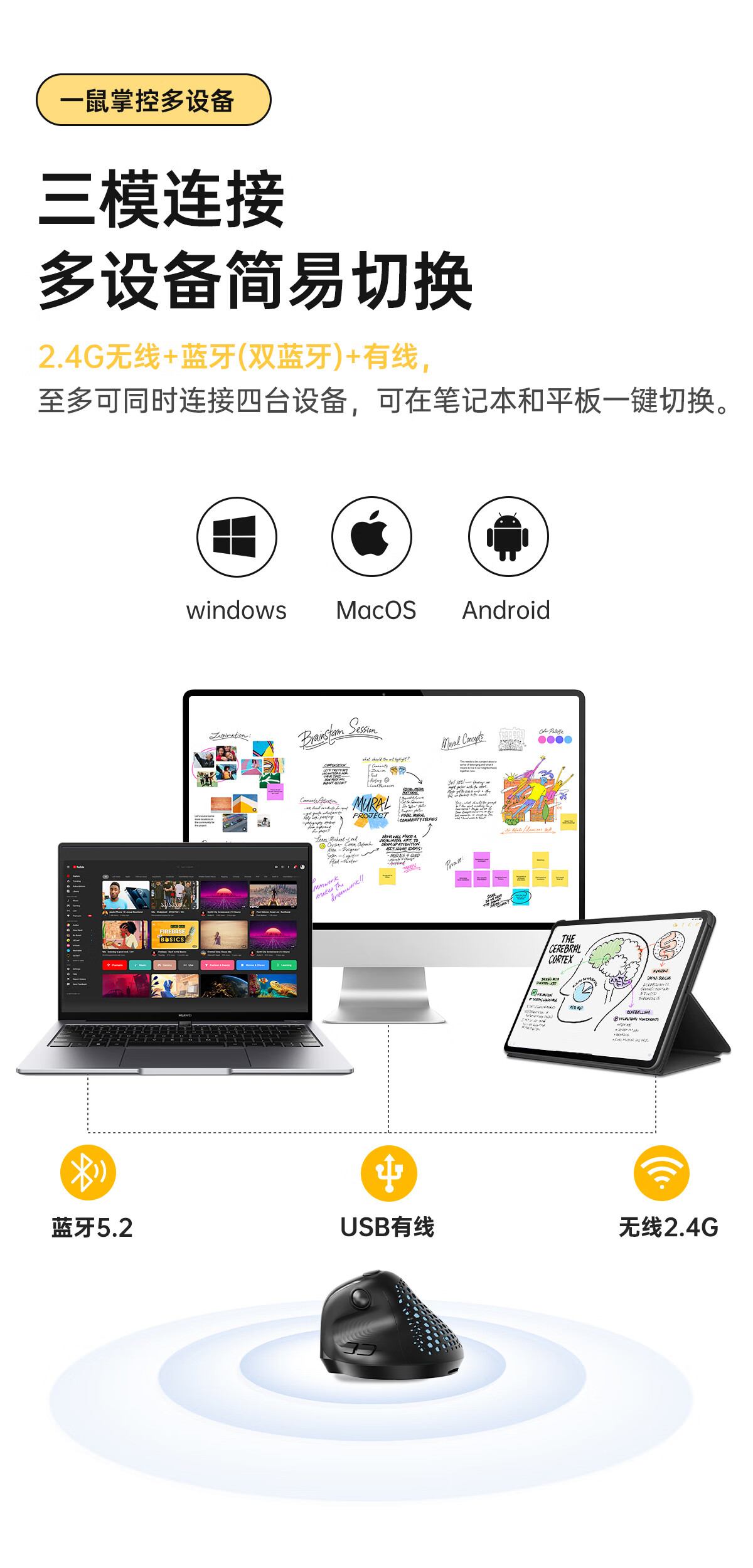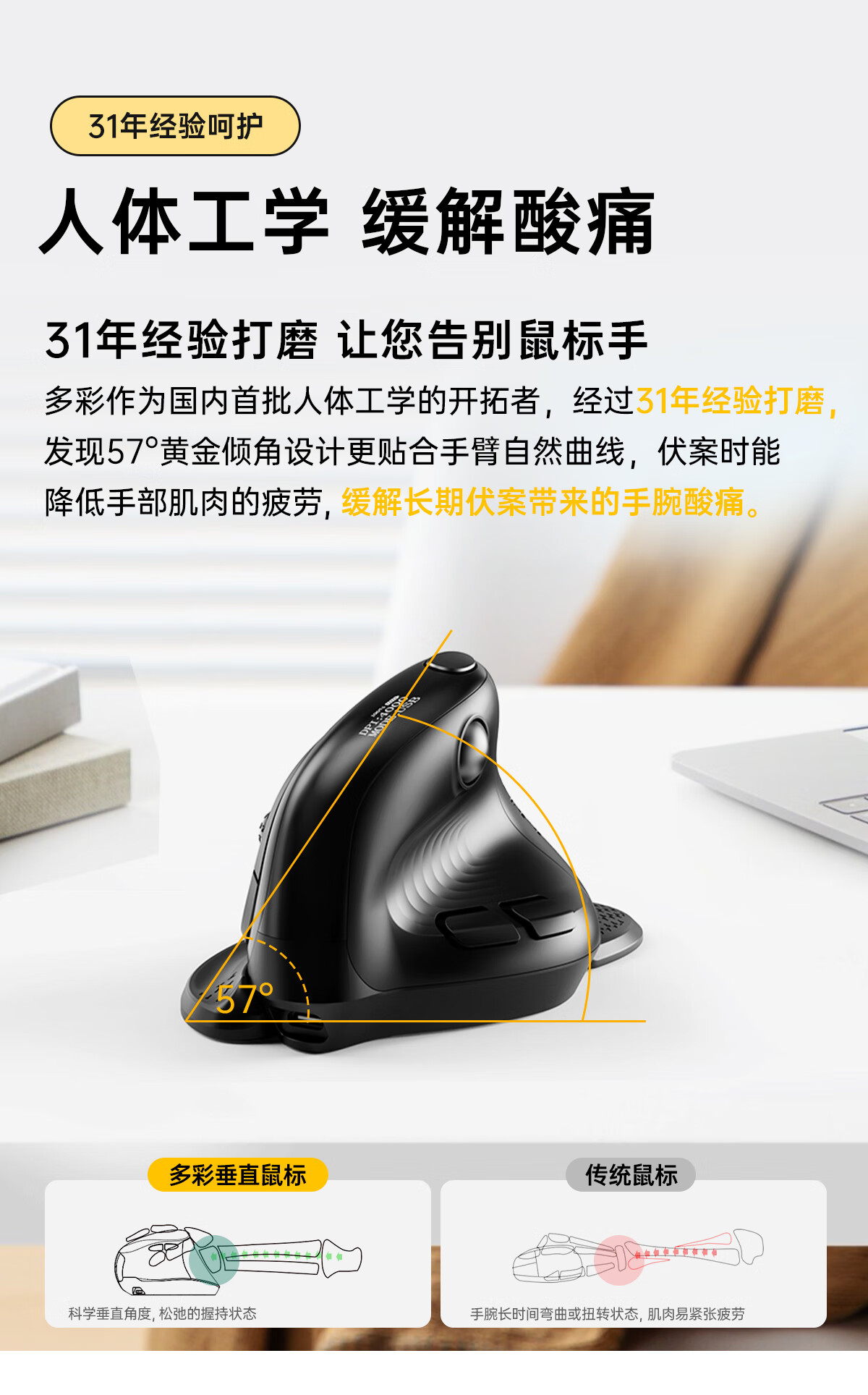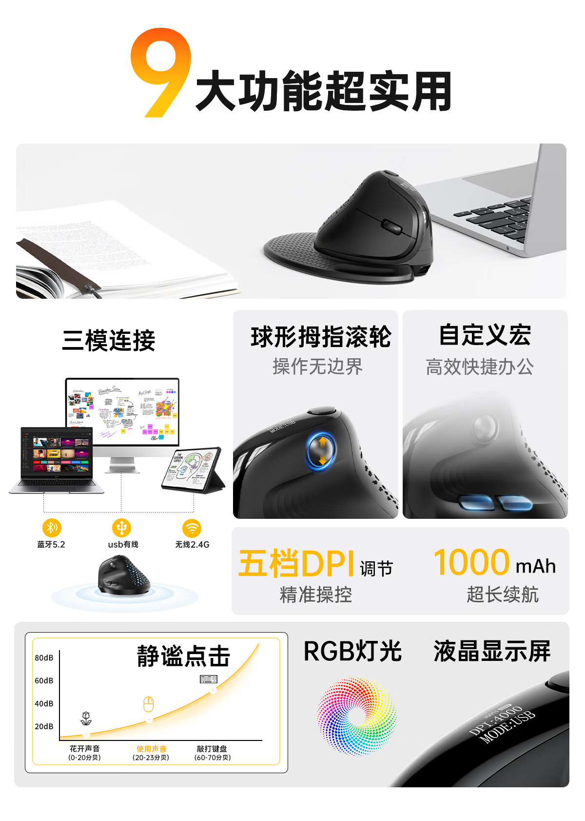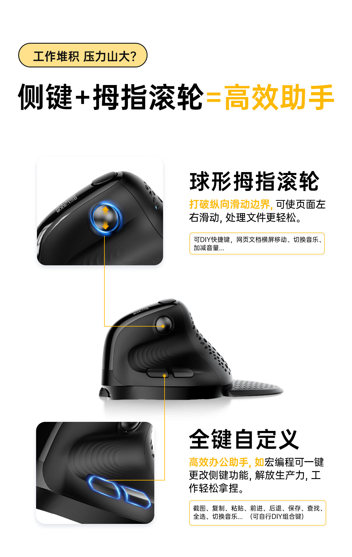 多彩(Delux) M618XSD人体工学无线鼠标立式垂直鼠标带屏显有线蓝牙双模舒适办公适用于联想惠普笔记本台式 M618XSD【无线三模·OLED屏幕】黑
