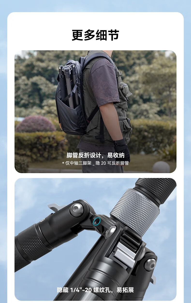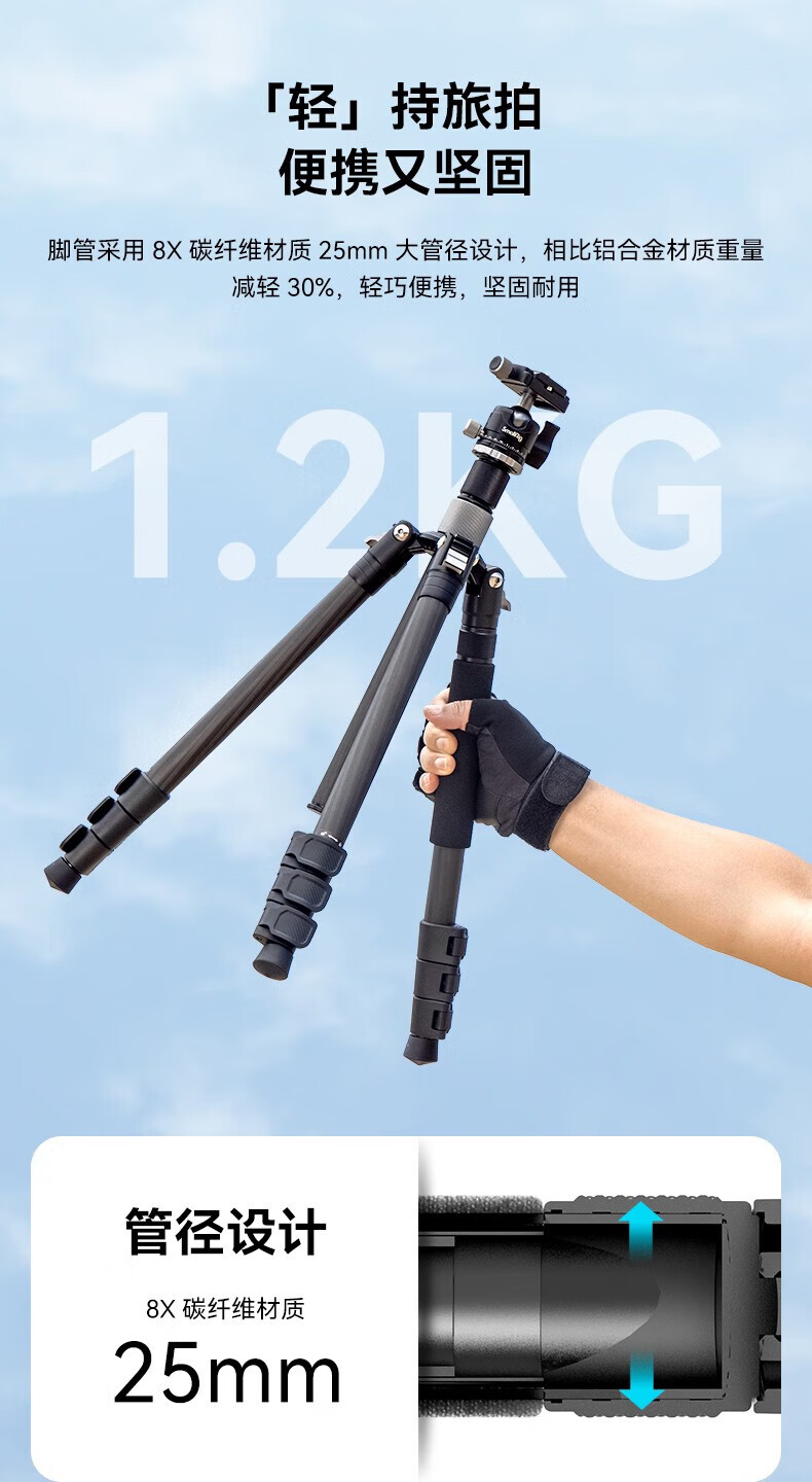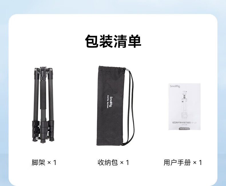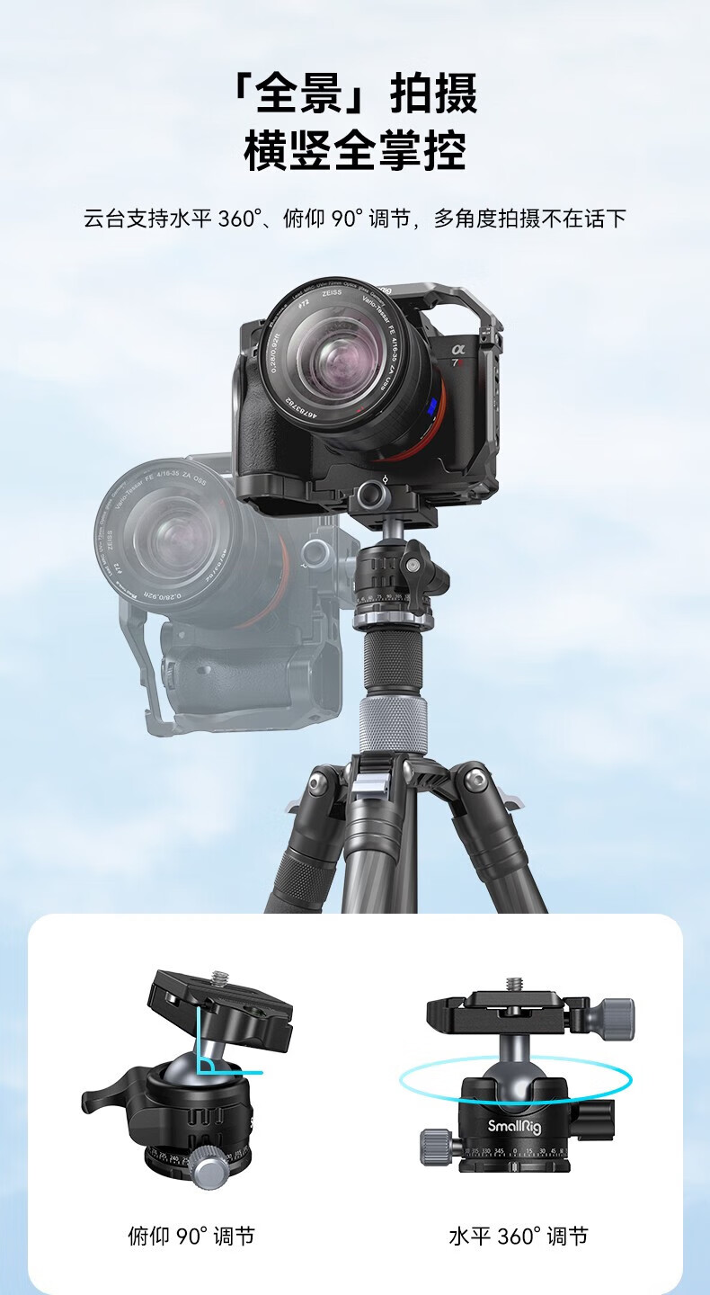 斯莫格(SmallRig)4059 AP-20碳纤维三脚架摄像机单反摄影拍照云台脚架套装旅行轻便携相机支架隐系列三角架