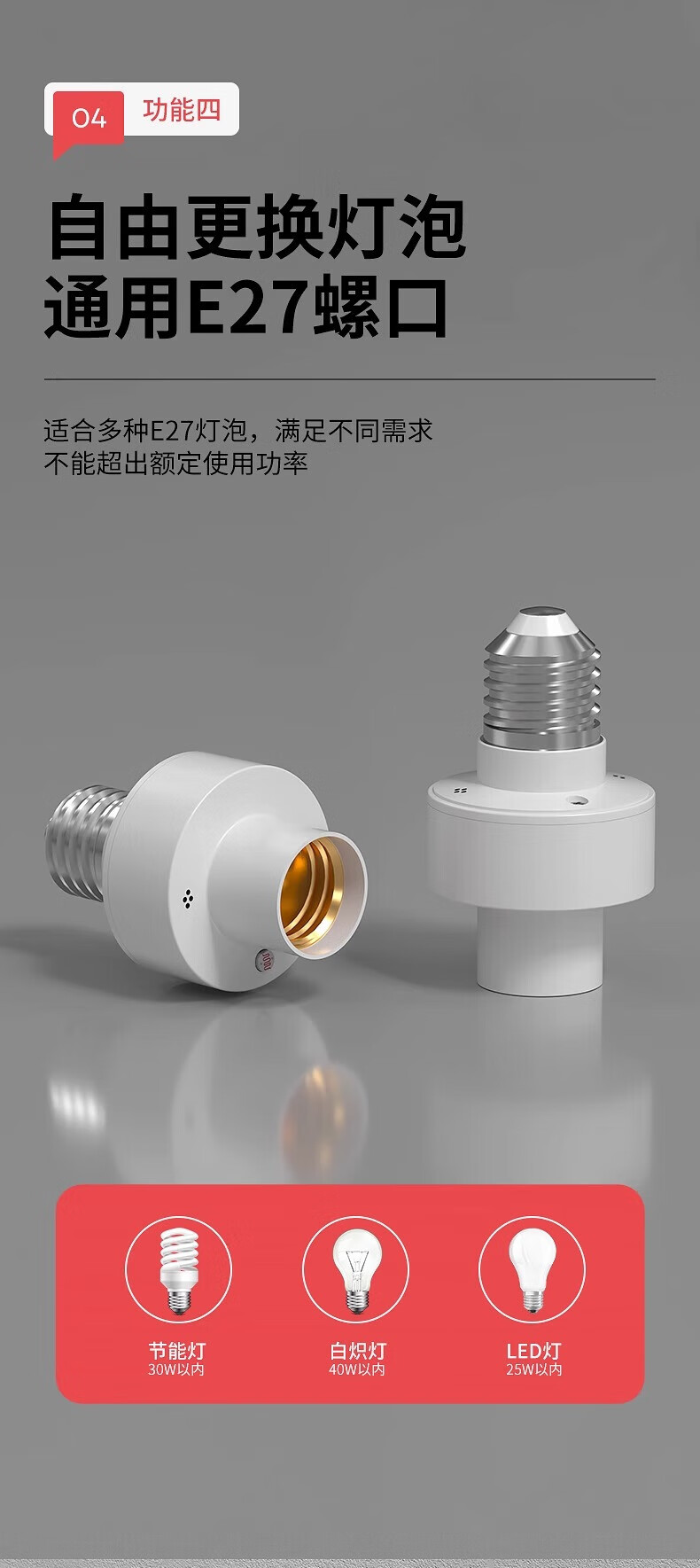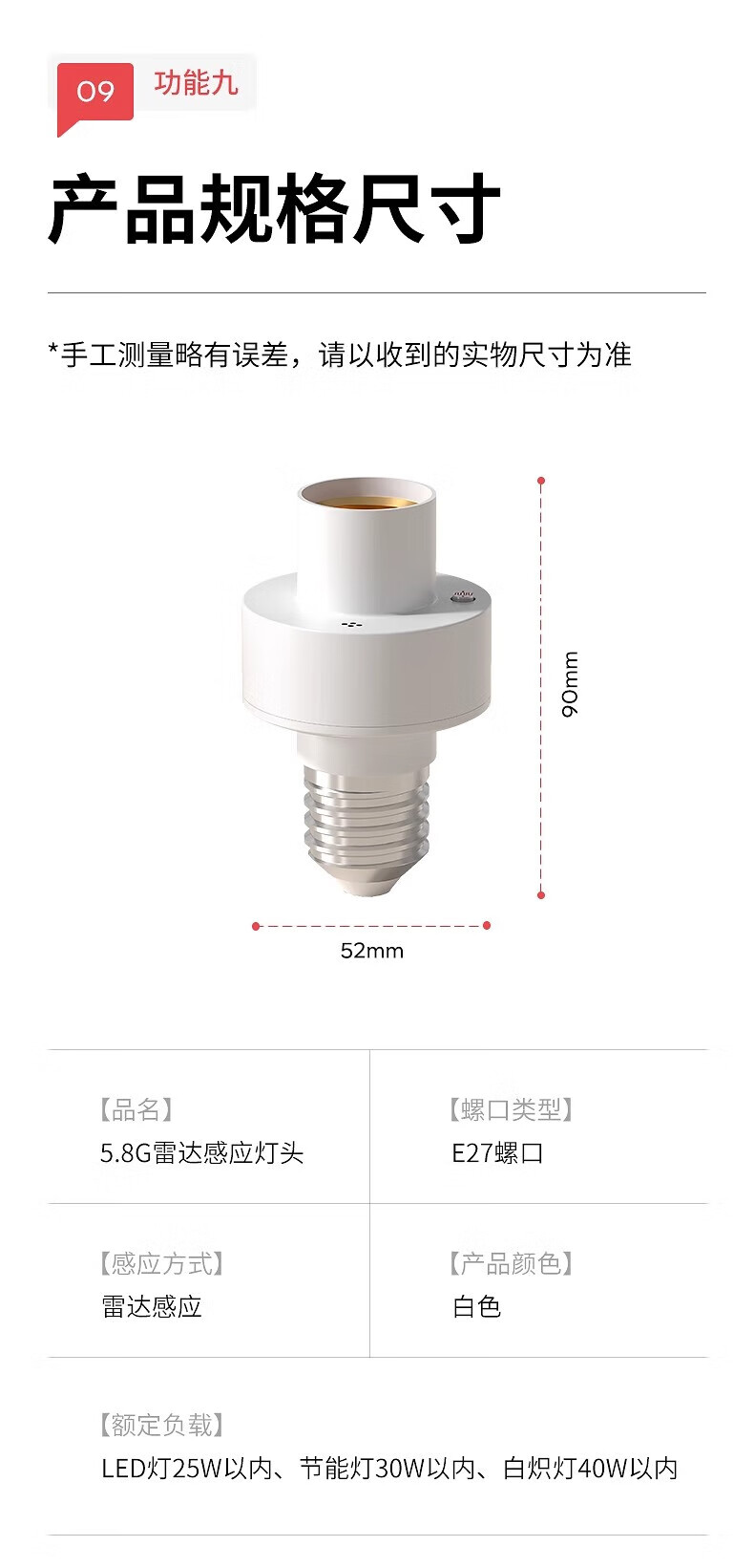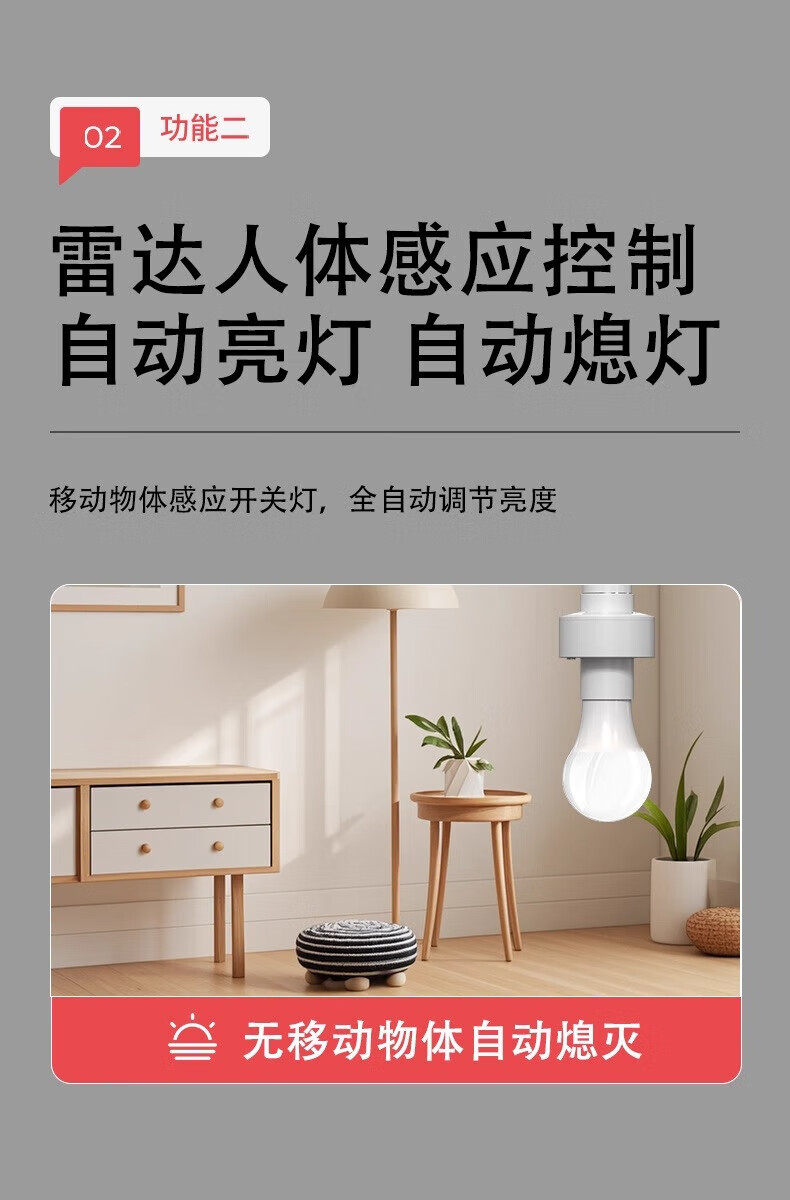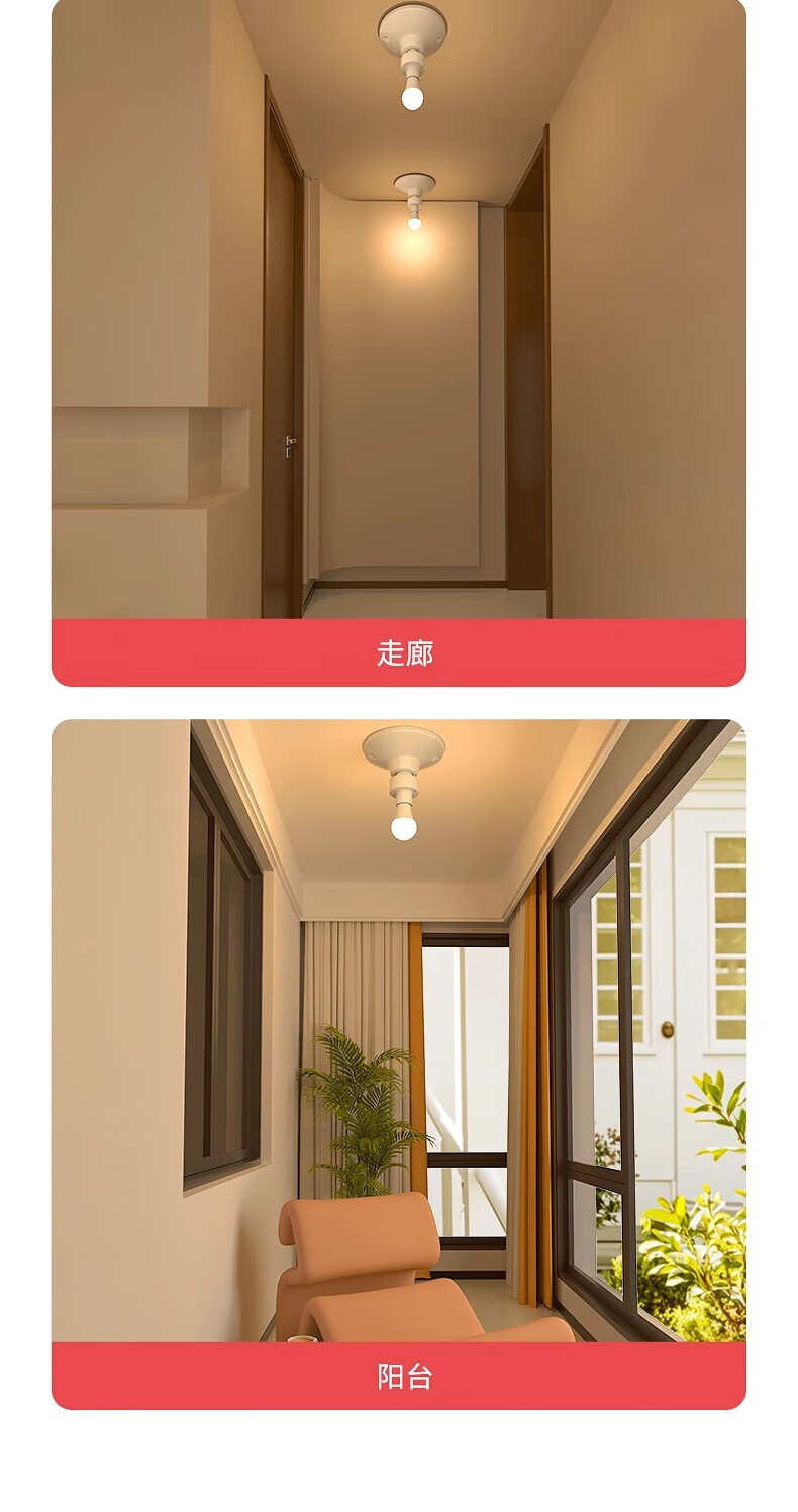 国际电工车库微波雷达感应灯头厕所人体智能感应器走廊楼道E27螺口灯座 5.8G雷达感应灯头【无灯泡】