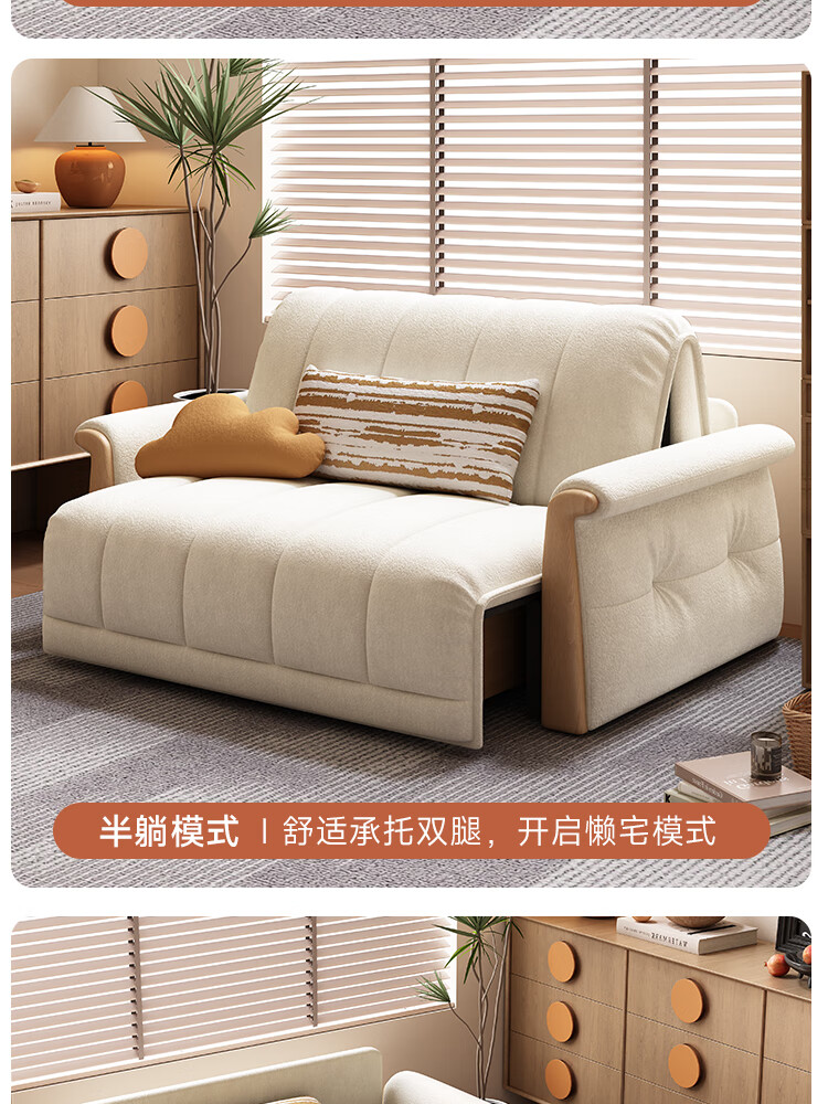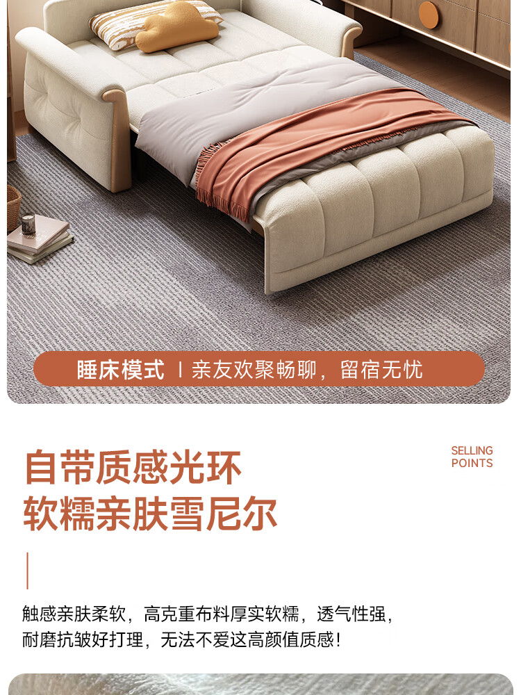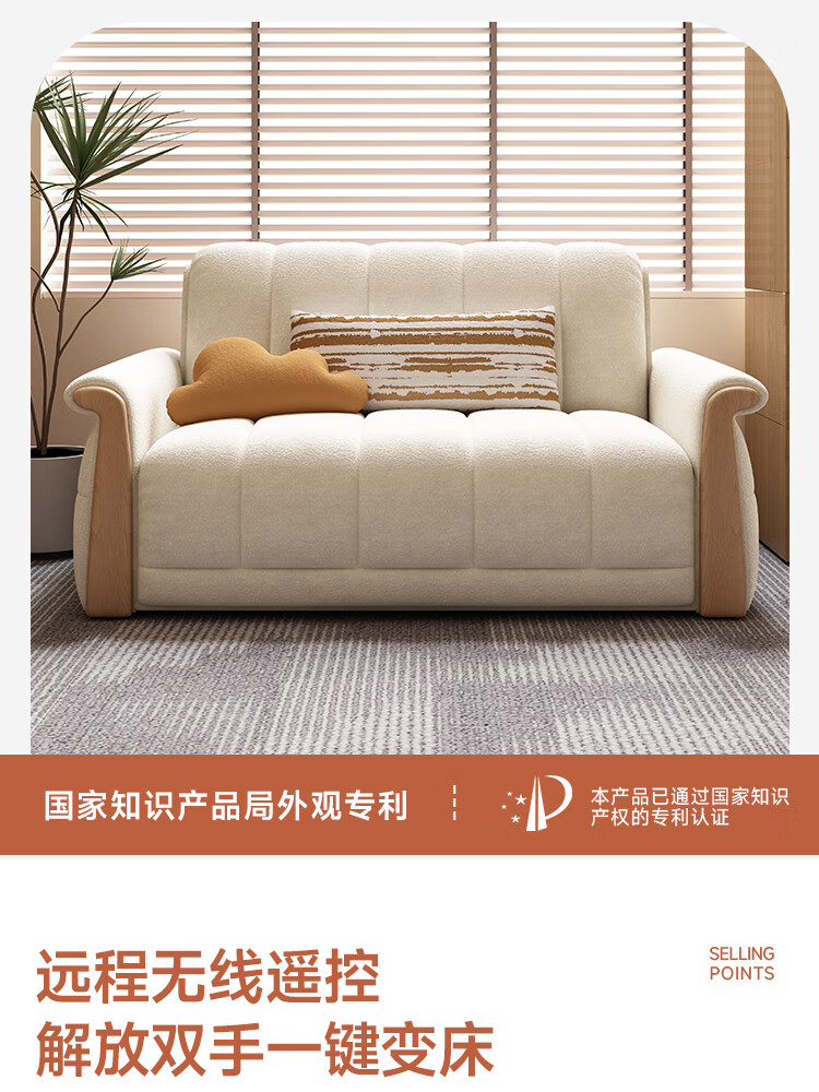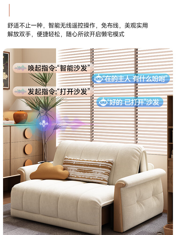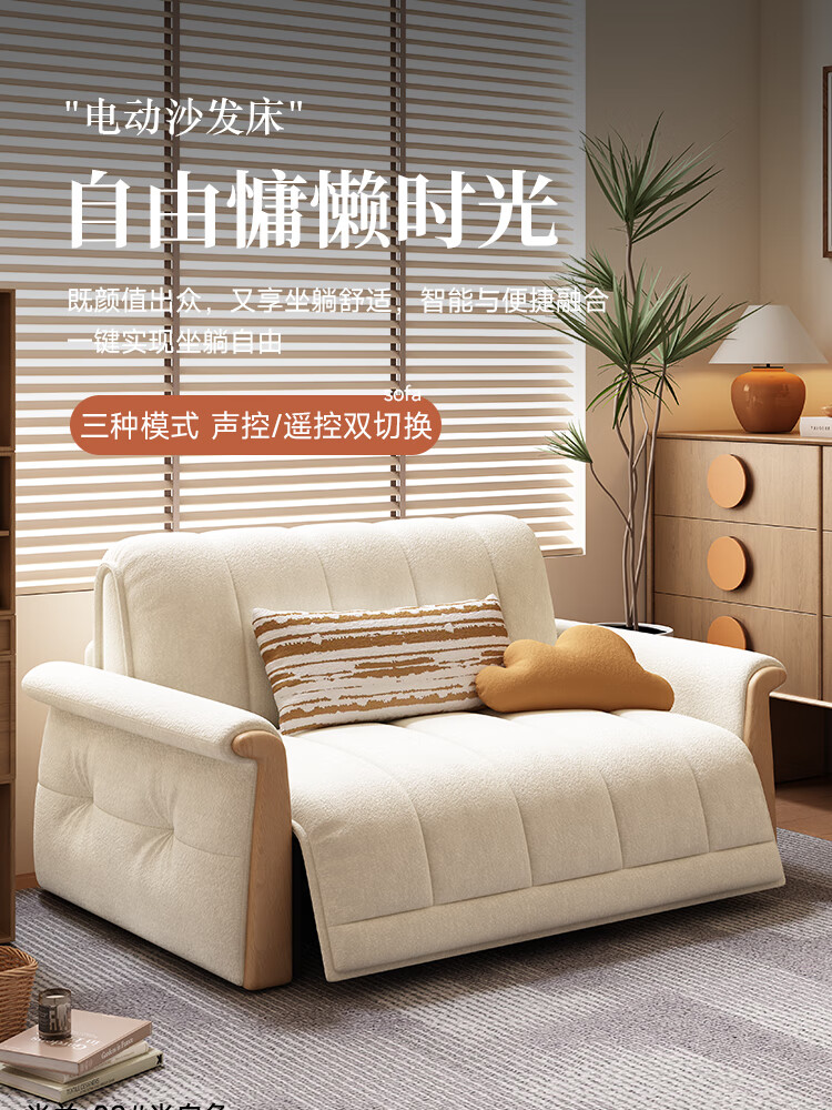 美朵朵多功能智能电动沙发床一体两用2025新款小户型单人双人雪尼尔沙发 外宽:1.15m(加厚S+级雪尼尔) 45D无粉海绵款(无储物)+语音遥控