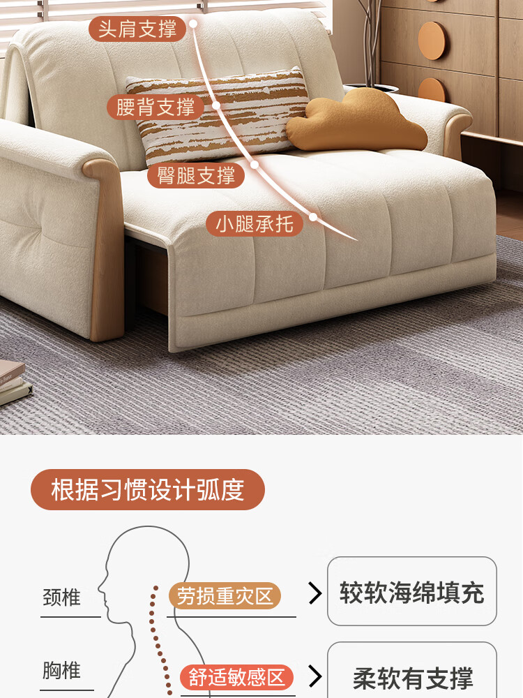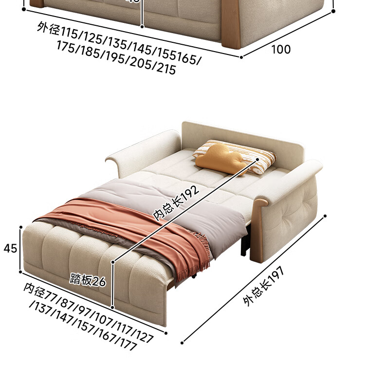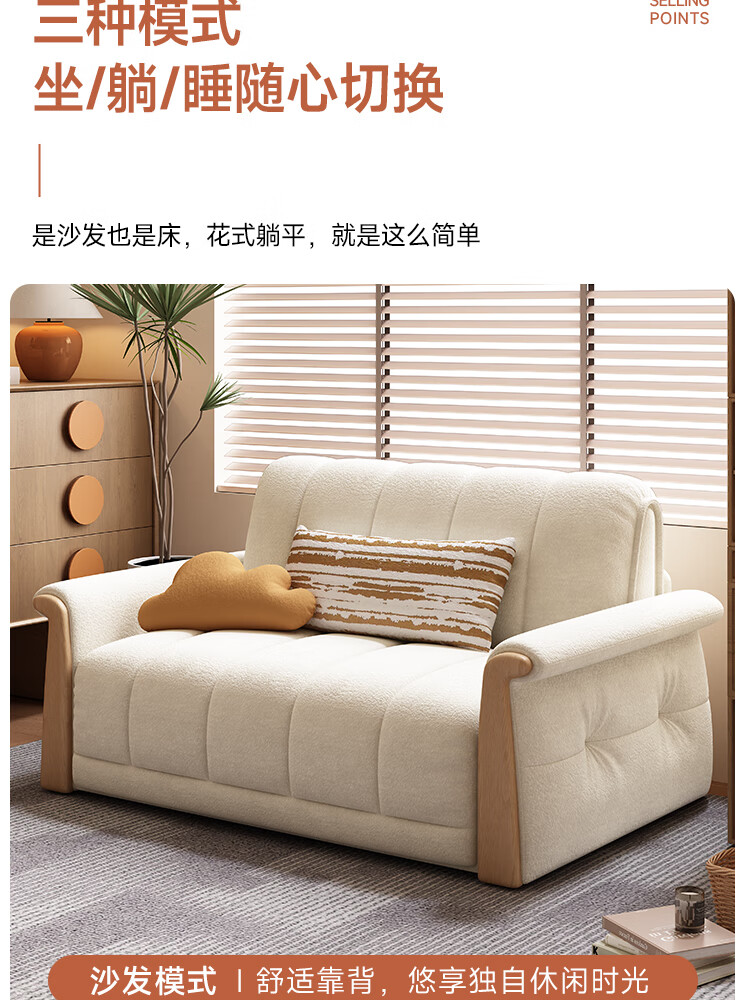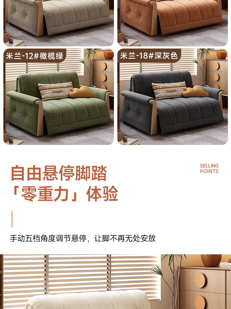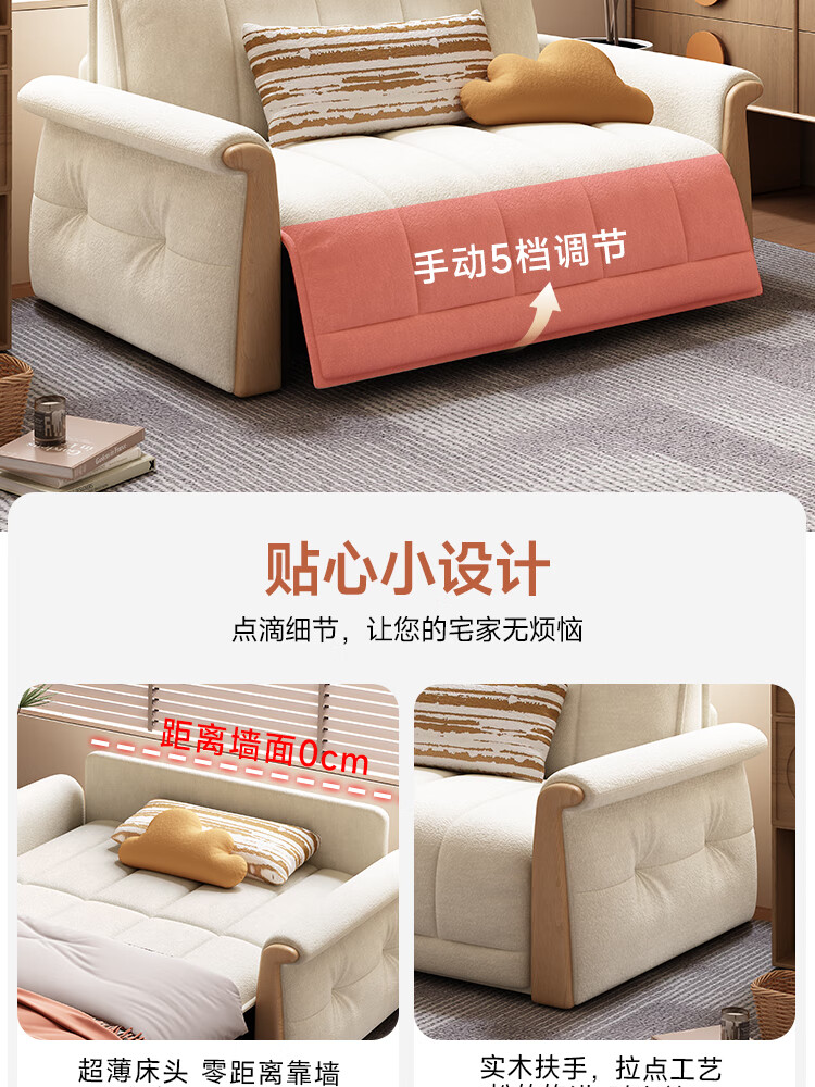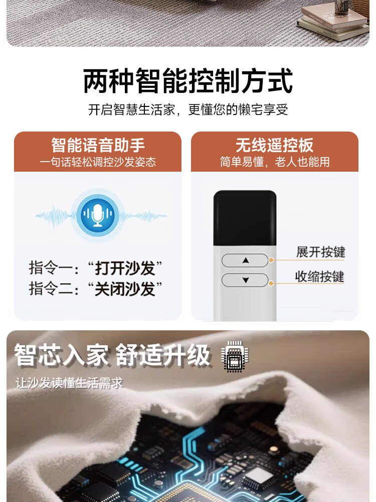 美朵朵多功能智能电动沙发床一体两用2025新款小户型单人双人雪尼尔沙发 外宽:1.15m(加厚S+级雪尼尔) 45D无粉海绵款(无储物)+语音遥控